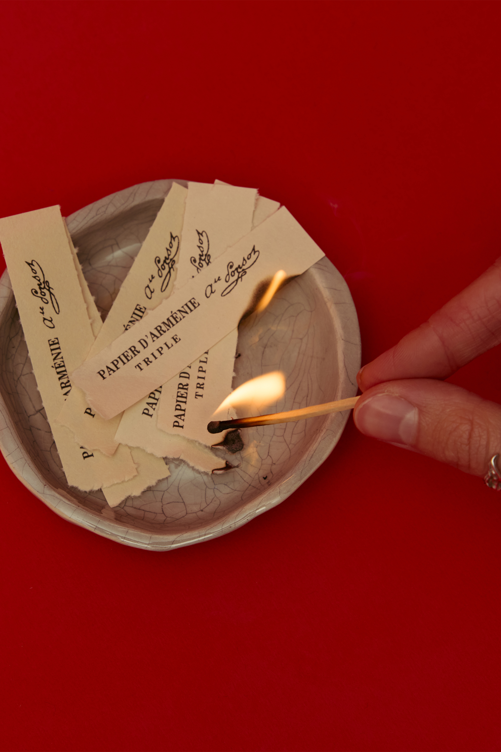 Аромапапір Papier d'Armenie створює затишну атмосферу завдяки тонкому аромату, що очищує та освіжає повітря. Виготовлений із натуральних компонентів, він ідеально підходить для релаксу чи медитації. Як користуватися: запаліть край листка, задмухайте, щоб він тлів, і спостерігайте, як м’який аромат наповнює простір.