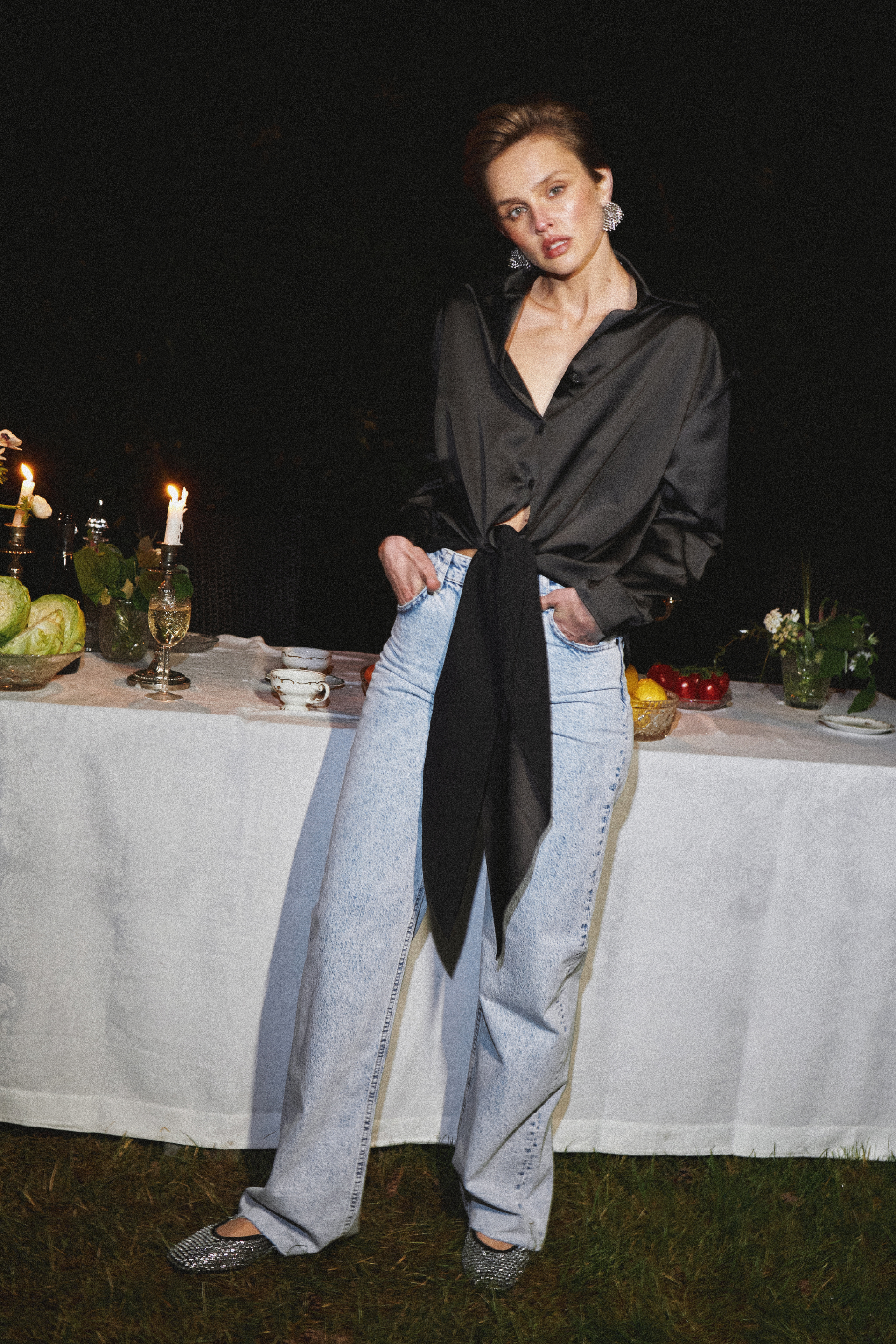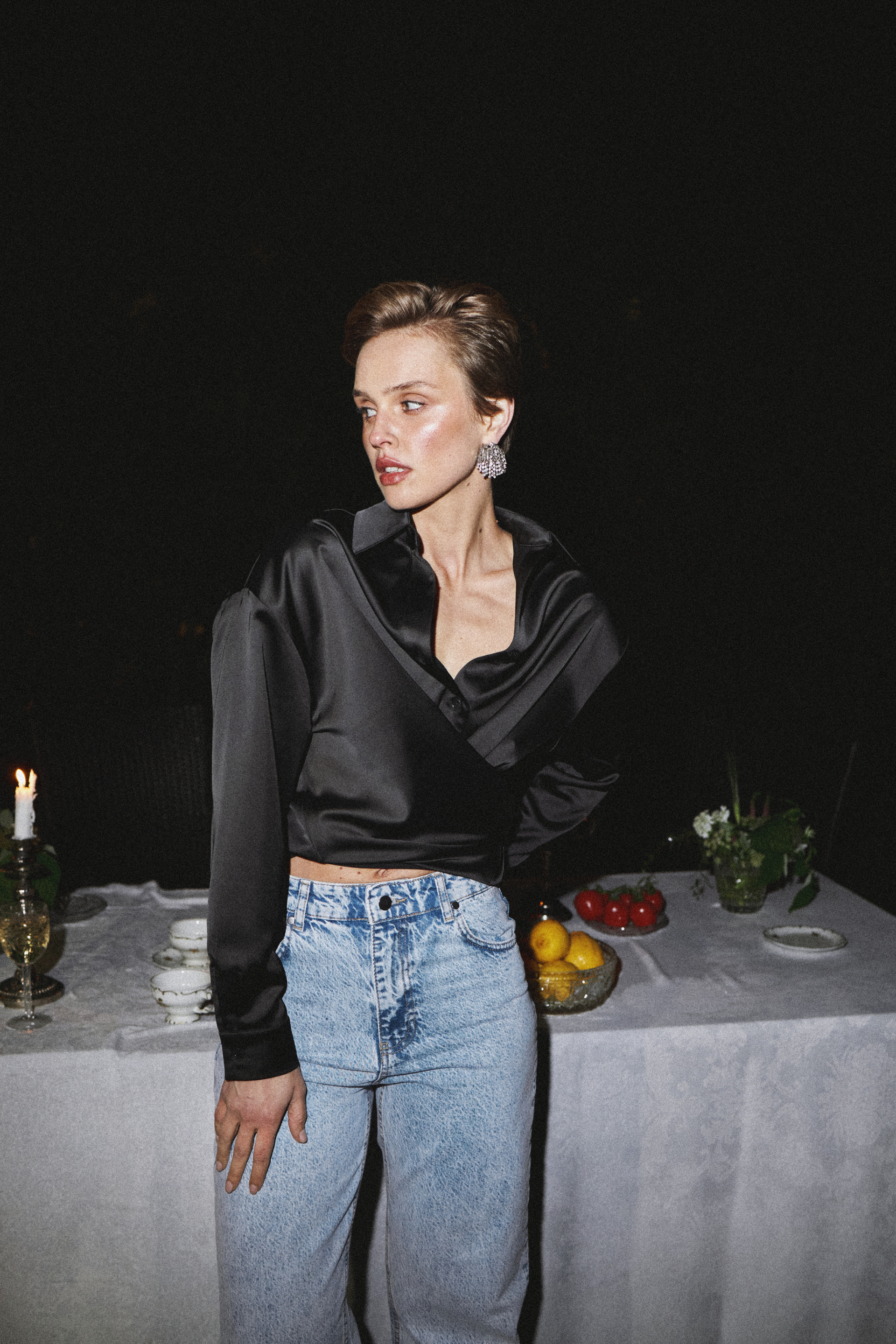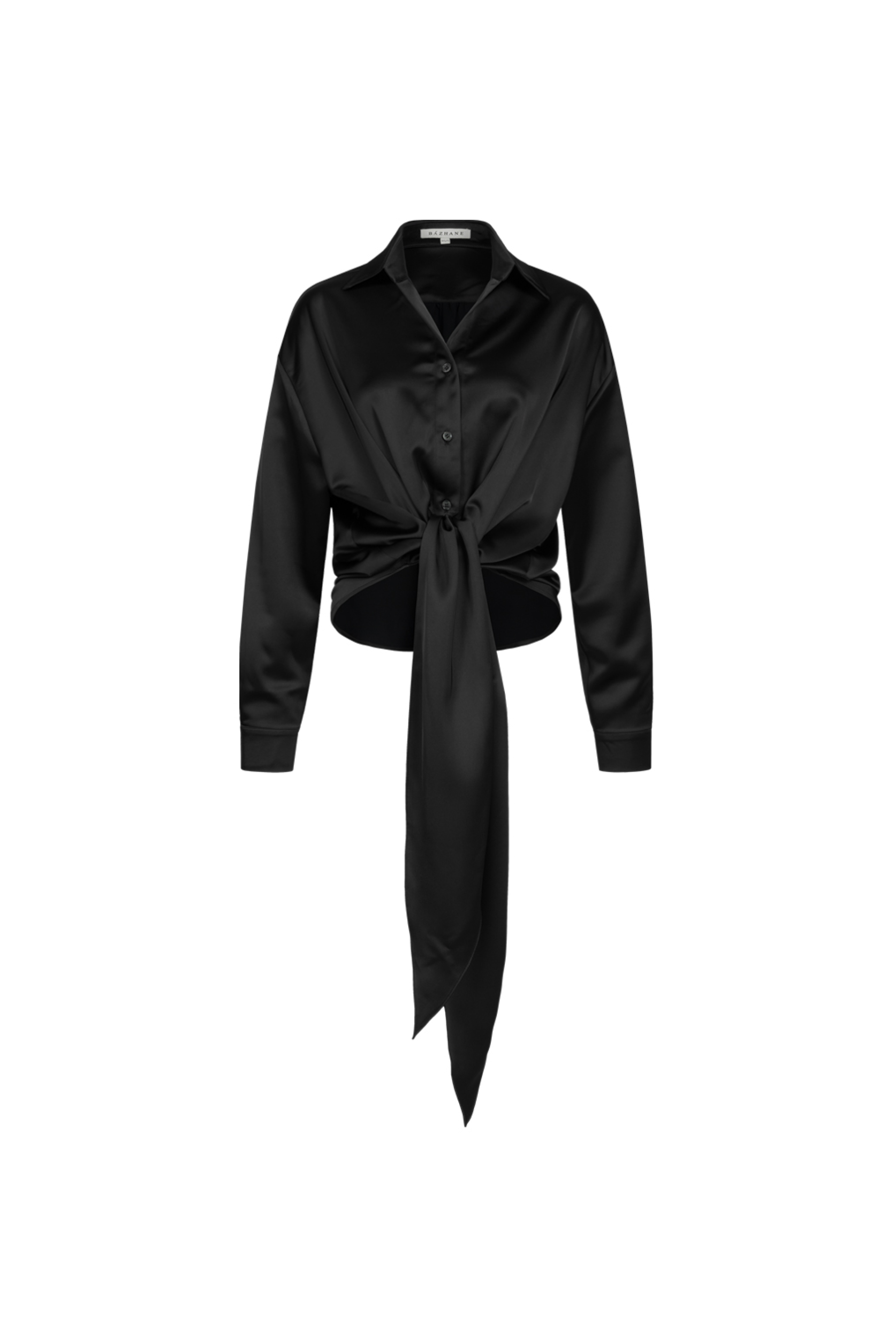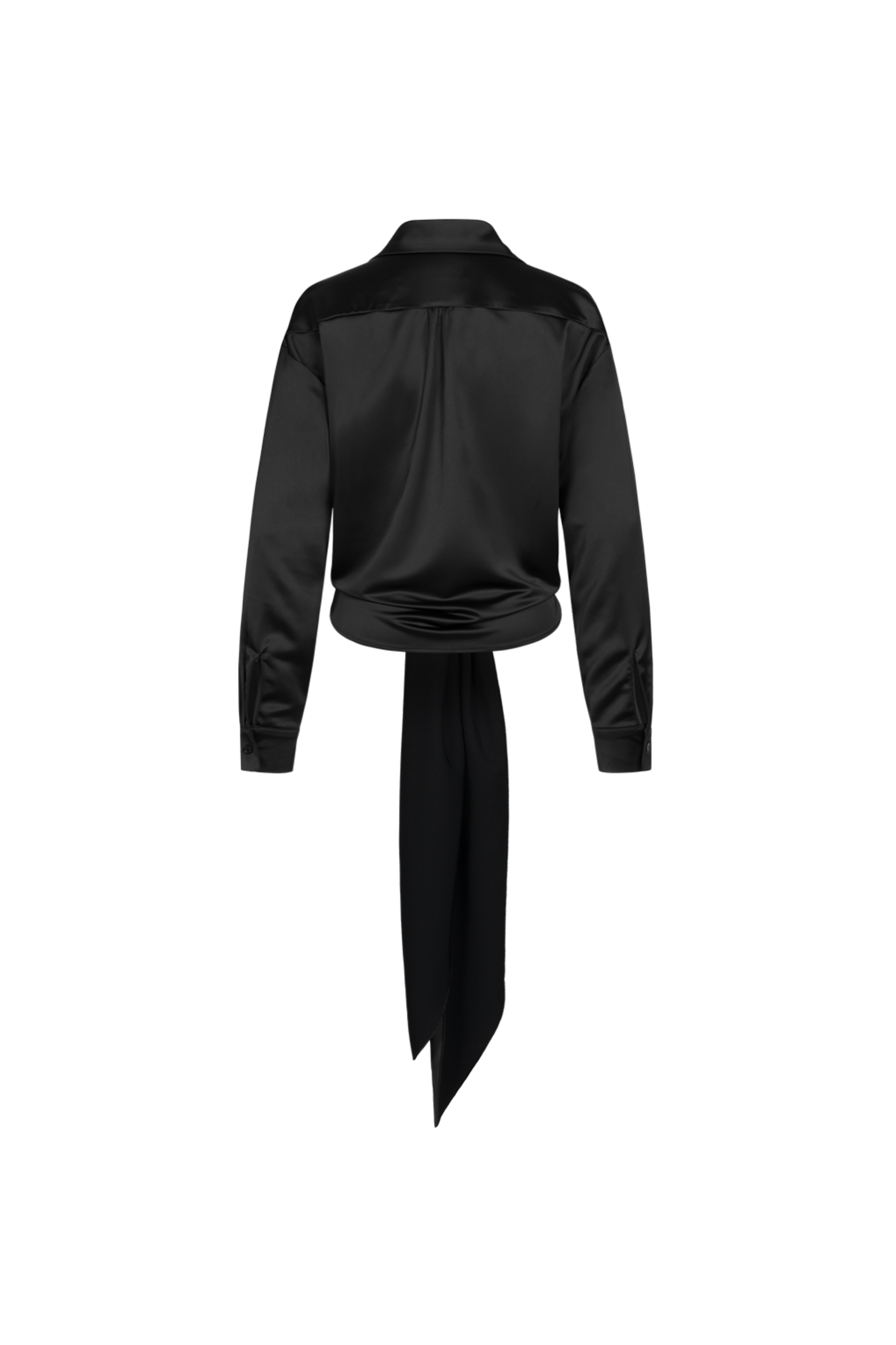 Блуза на зав'язку з довгими кінцями. Виготовлена з віскози та еластану, що додає приємної текстури та комфортної посадки. Цей елегантний і жіночний варіант чудово підходить для ділових зустрічей або вечірніх виходів. Завдяки зав'язці, блуза додає образу легкості та стилю, а її універсальний вигляд дозволяє поєднувати з брюками, спідницями або жакетами для створення завершеного образу.