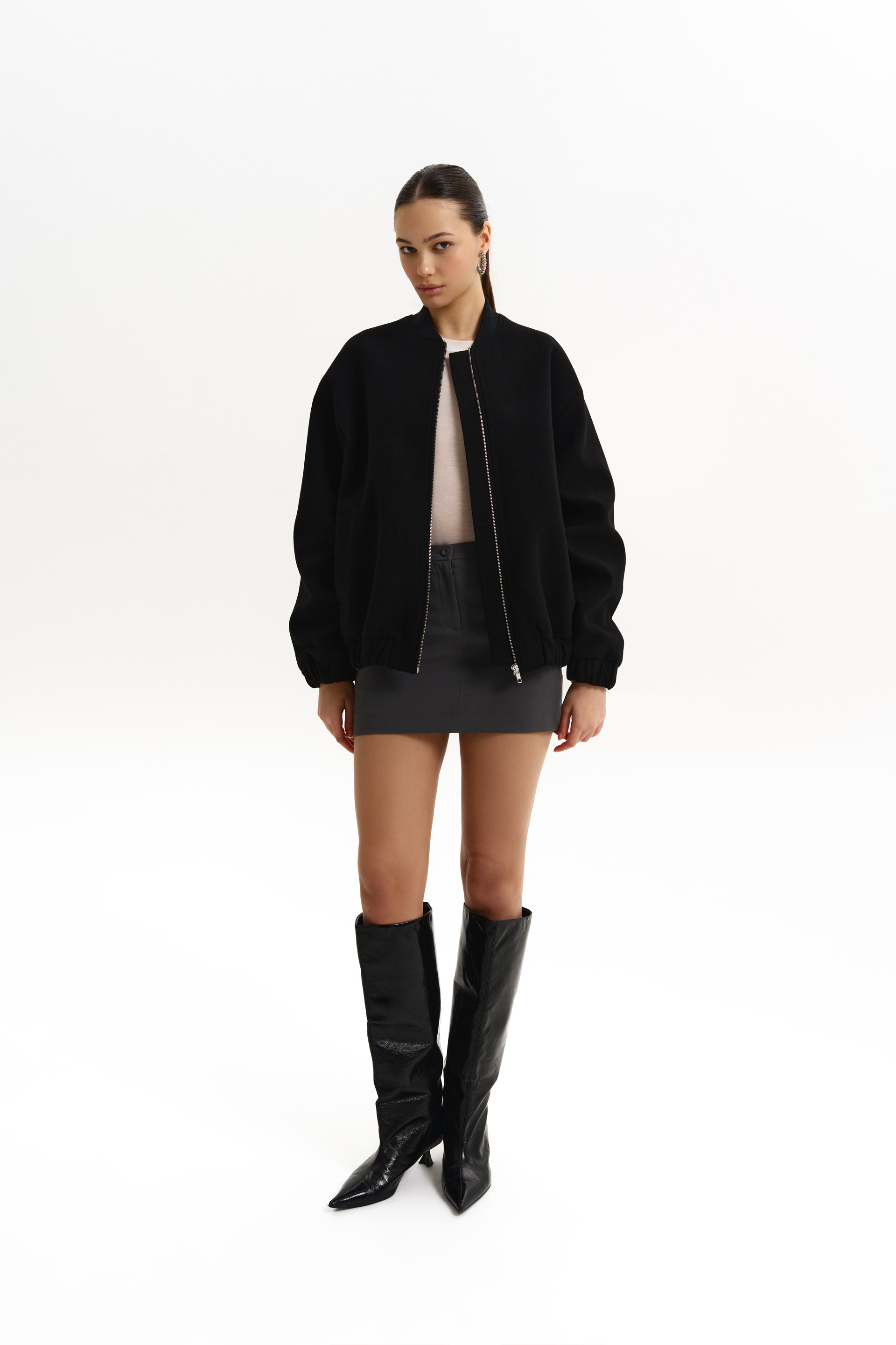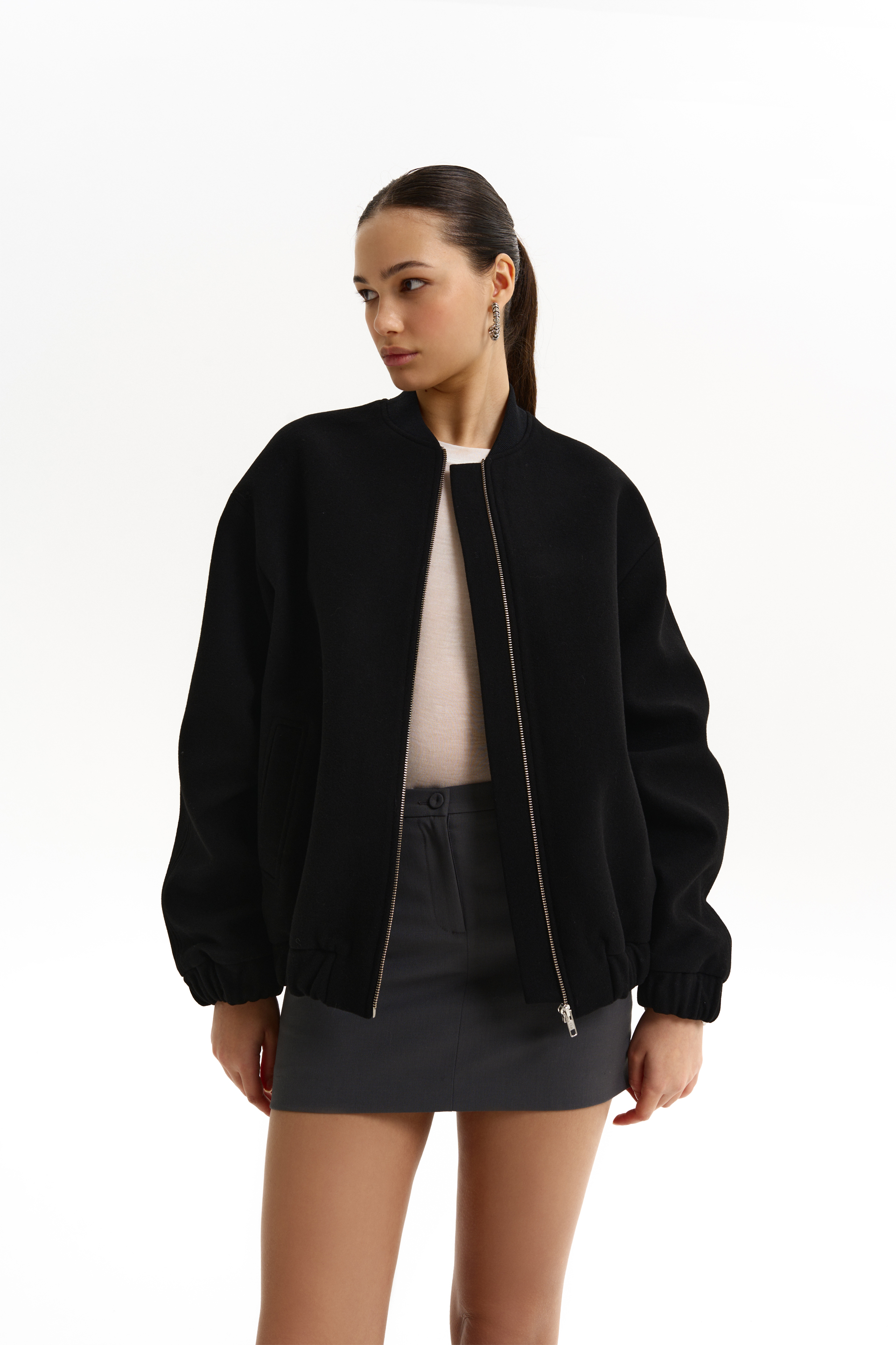 Бомбер з пальтової цупкої тканини, чорний 100% virginwool 8527-1-5 M/L(р)