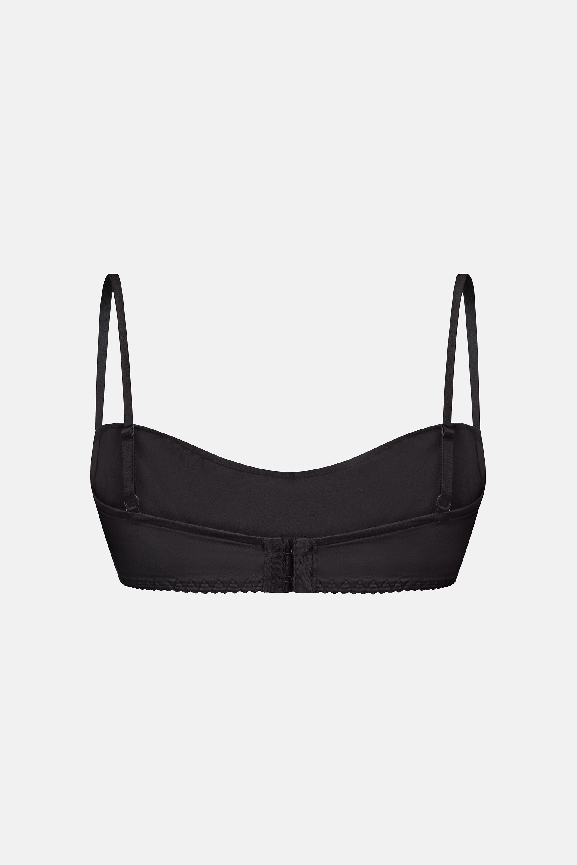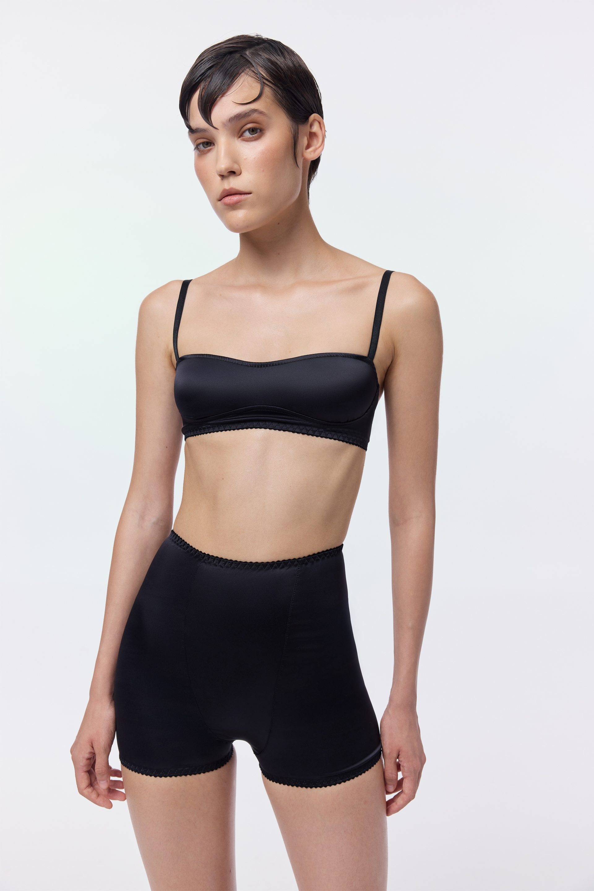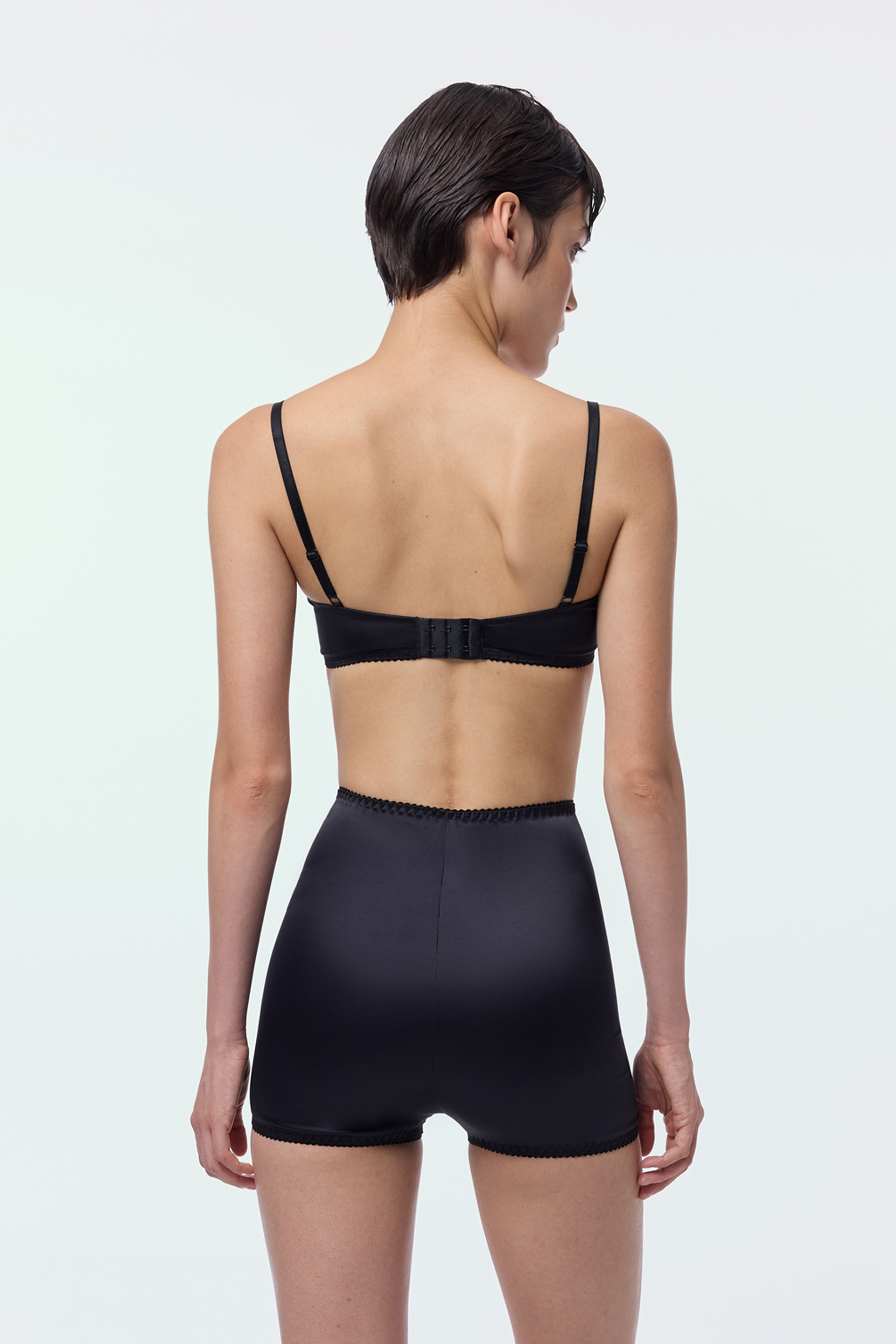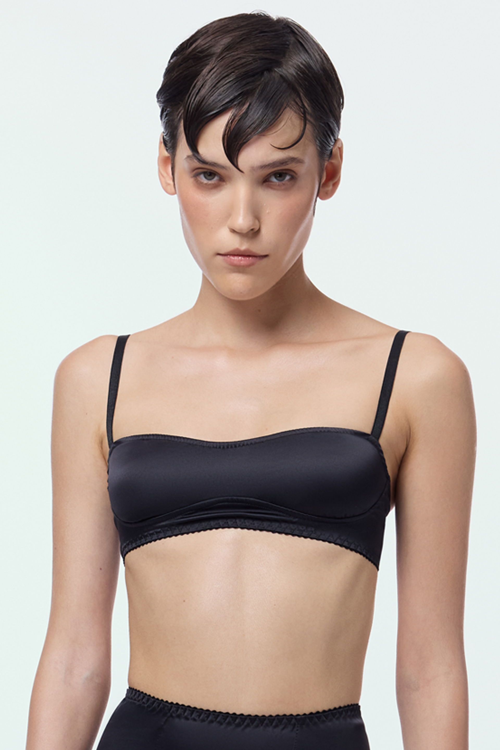 Base bralette — мінімалістичний бралетт із м’якої віскози з додаванням еластану, який забезпечує комфортну посадку. Тонкі бретелі та делікатна обробка підкреслюють природну форму, а сатиновий блиск тканини додає ніжності та вишуканості.