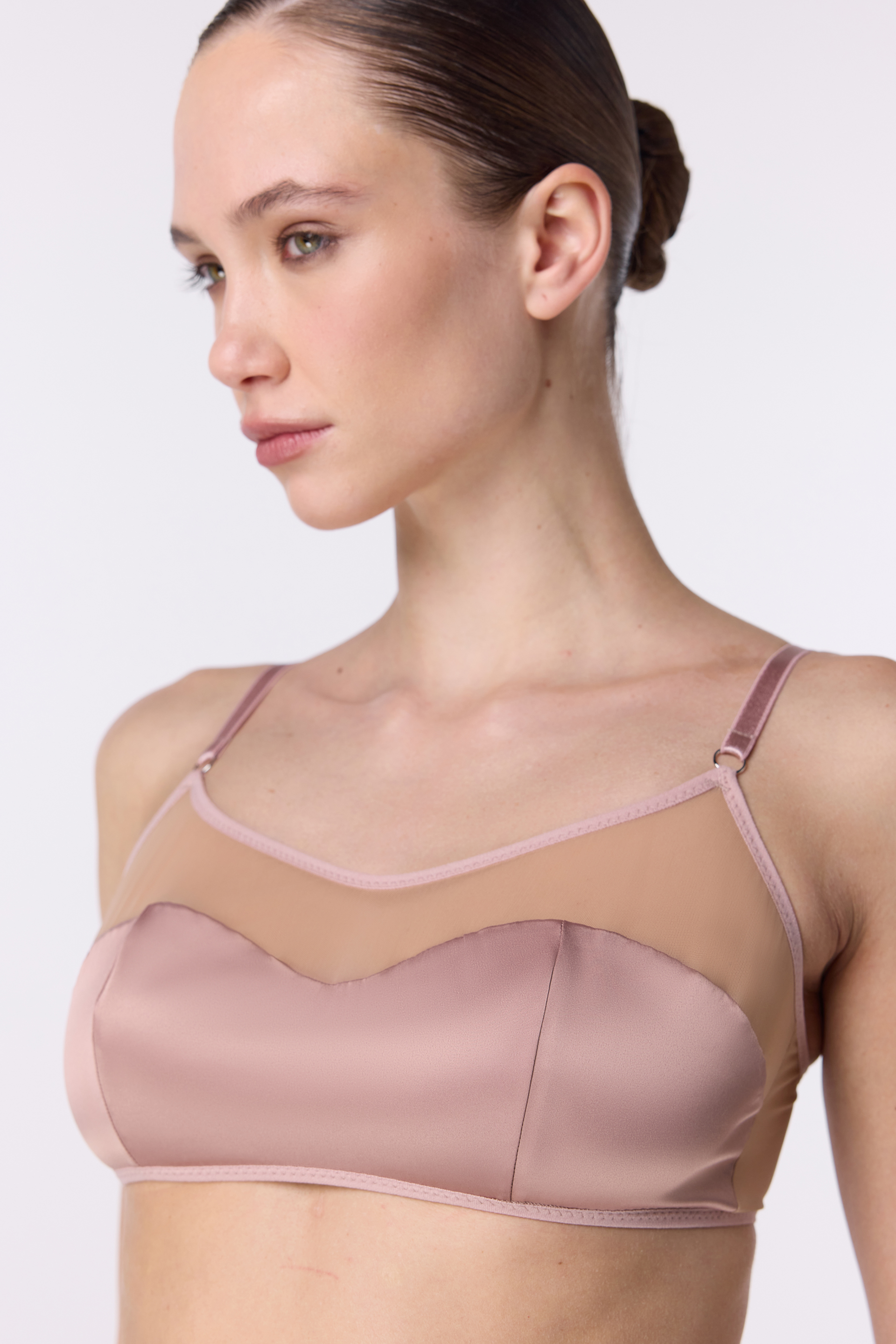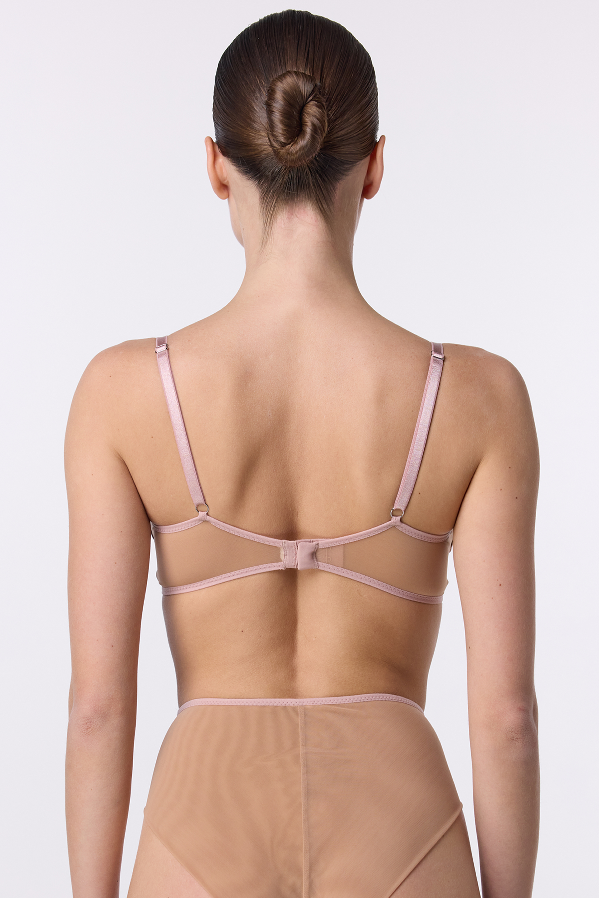 Бра Gloaming — м’якість, що підтримує. Безкісточковий бра створений з італійської сітки та стрейч-сатину, що адаптується до форми тіла. Стриманий силует без каркаса дарує відчуття легкості та комфорту, а регульовані бретелі й делікатна підтримка забезпечують ідеальну посадку.
