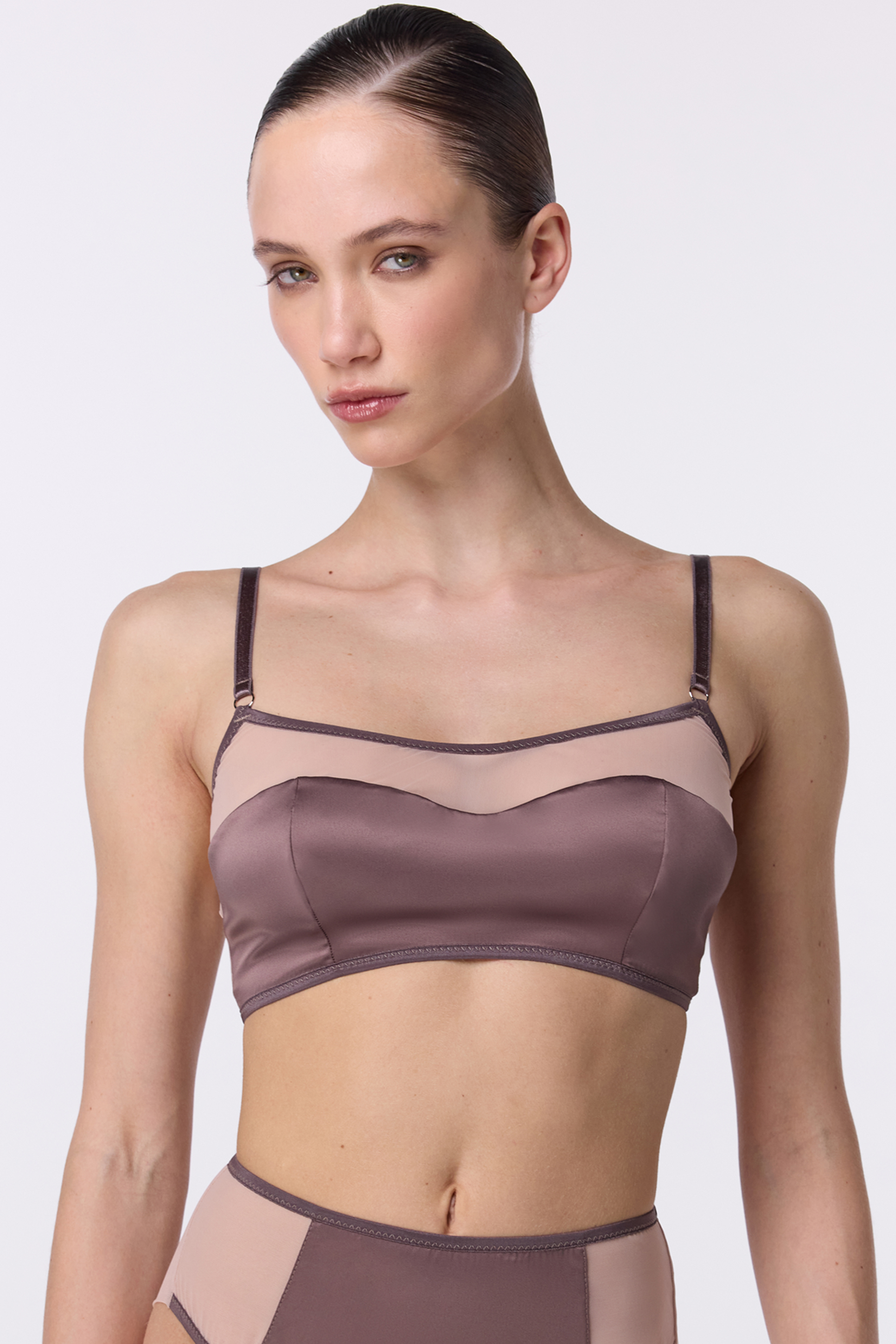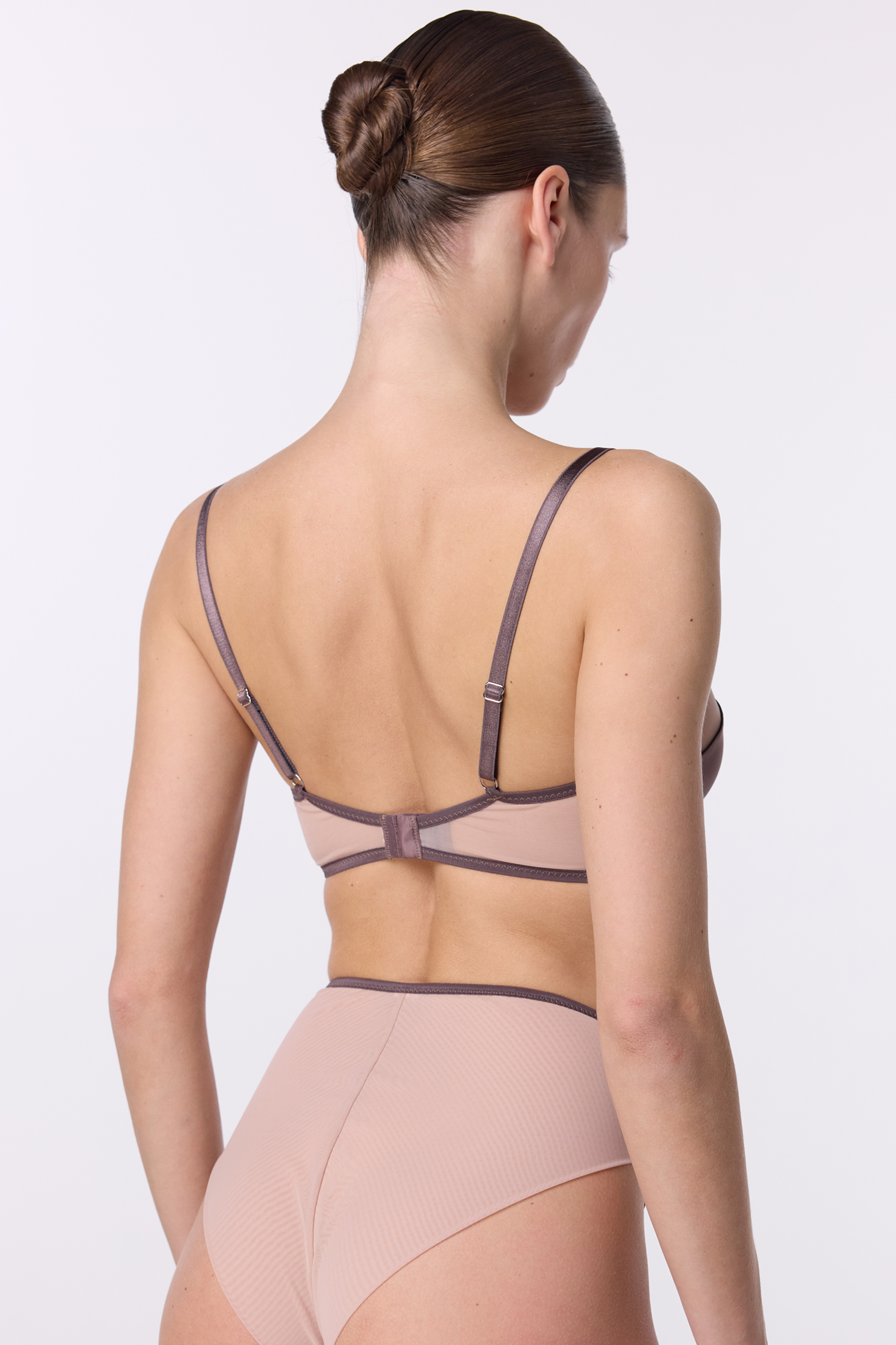 Бра Gloaming — м’якість, що підтримує. Безкісточковий бра створений з італійської сітки та стрейч-сатину, що адаптується до форми тіла. Стриманий силует без каркаса дарує відчуття легкості та комфорту, а регульовані бретелі й делікатна підтримка забезпечують ідеальну посадку.