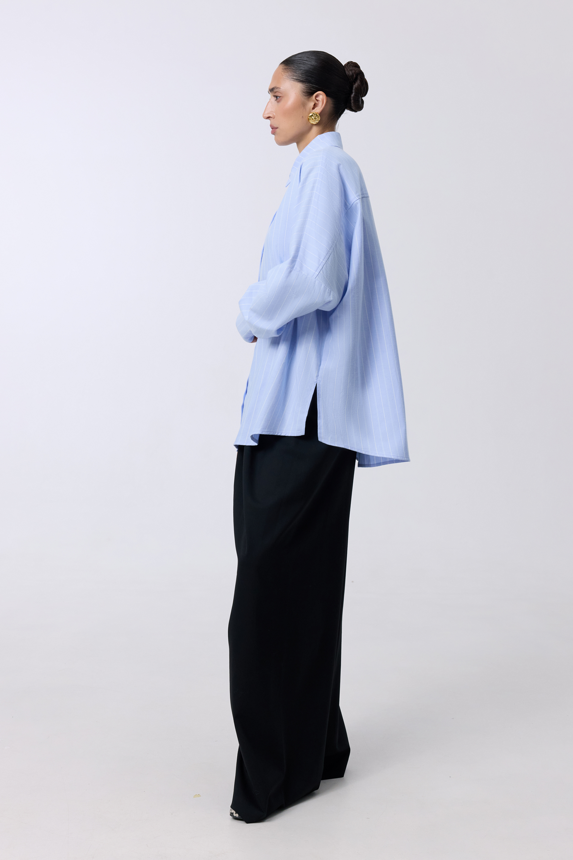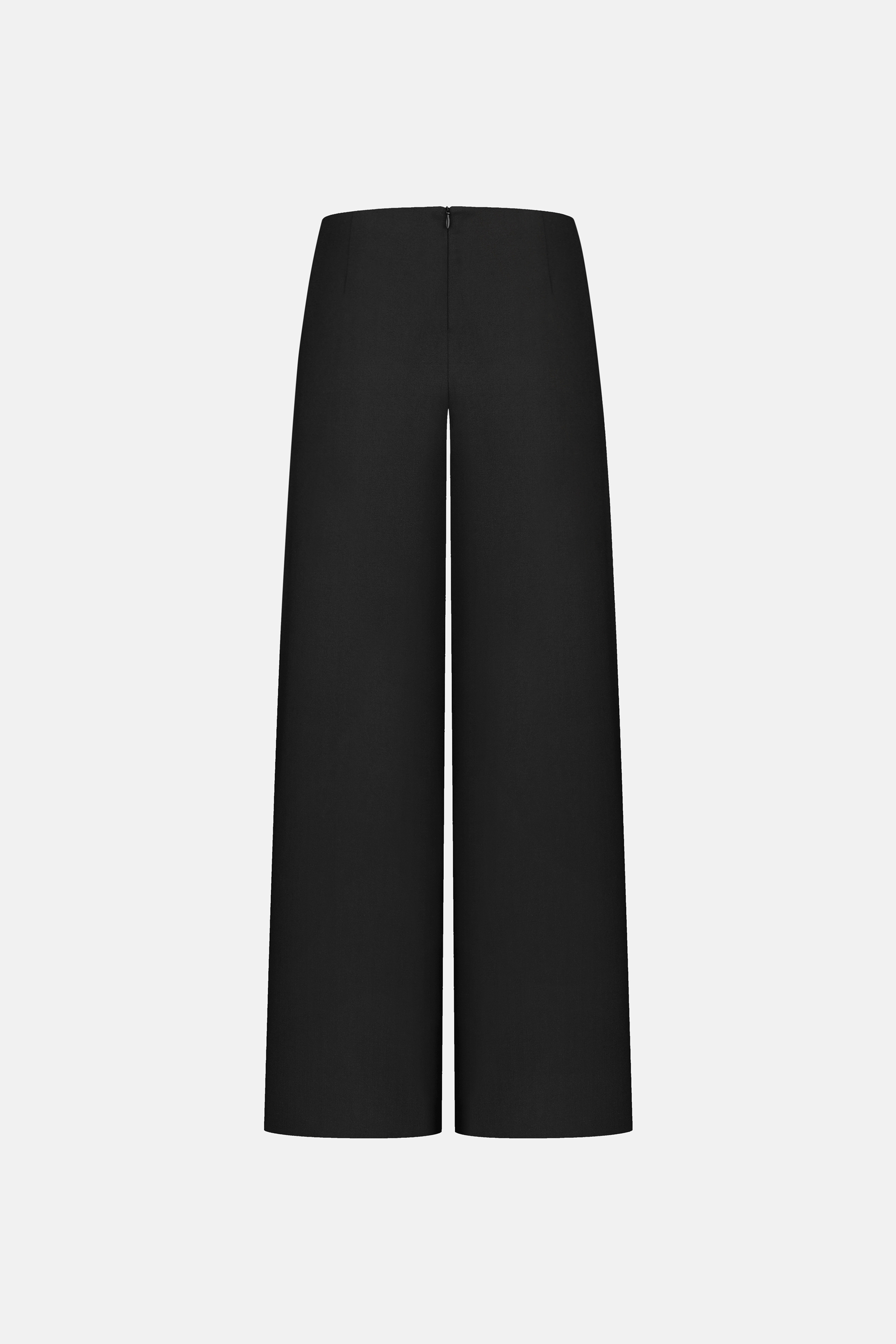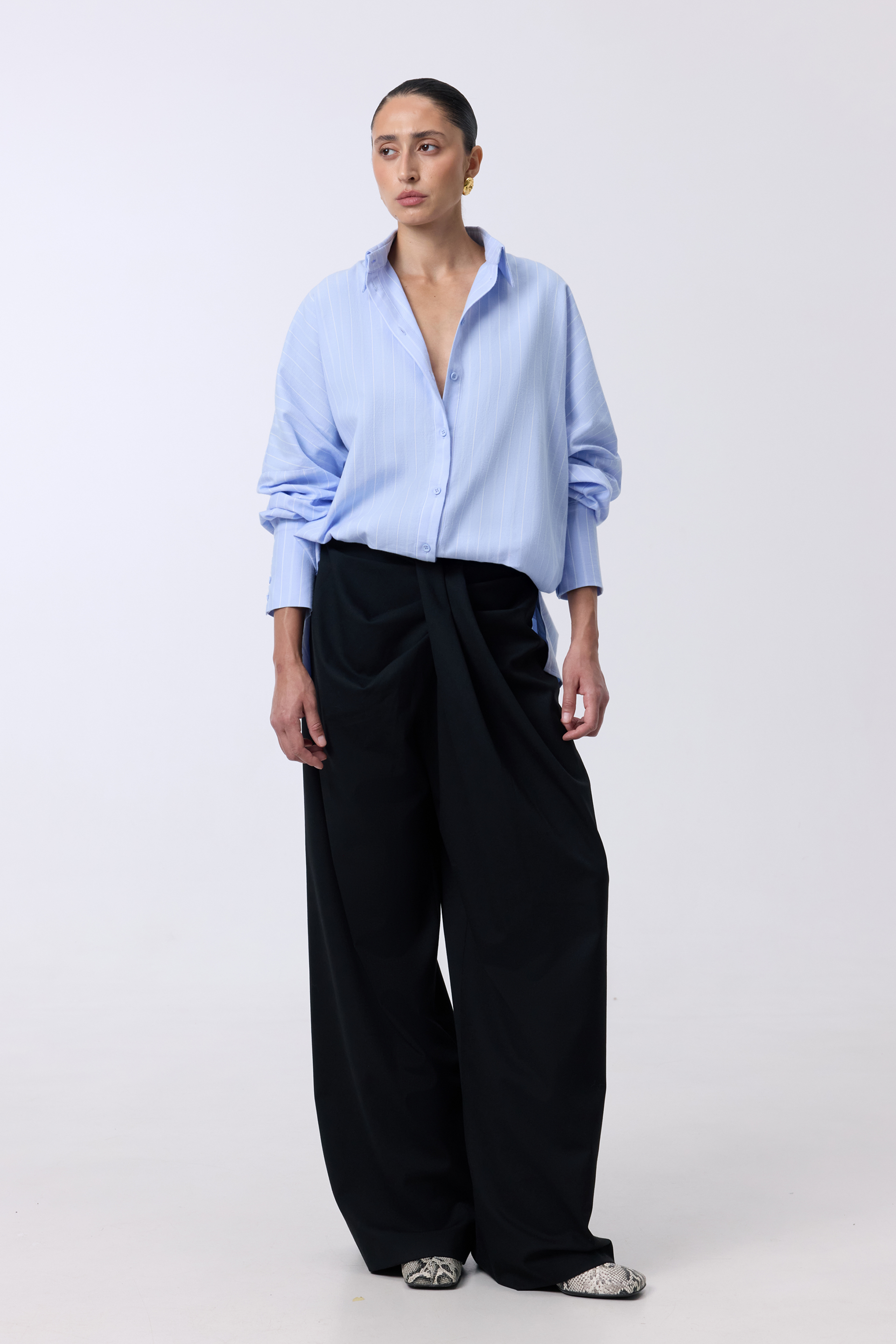 Брюки Cascade pants — поєднання скульптурної форми та легкої динаміки. Глибоке драпірування створює ефект каскаду, що ніби рухається разом із кроком. Широкий силует додає свободи, а тканина virginwool зберігає чіткість ліній і вишуканість у будь-якому поєднанні — від мінімалістичного топа до класичного жакета.