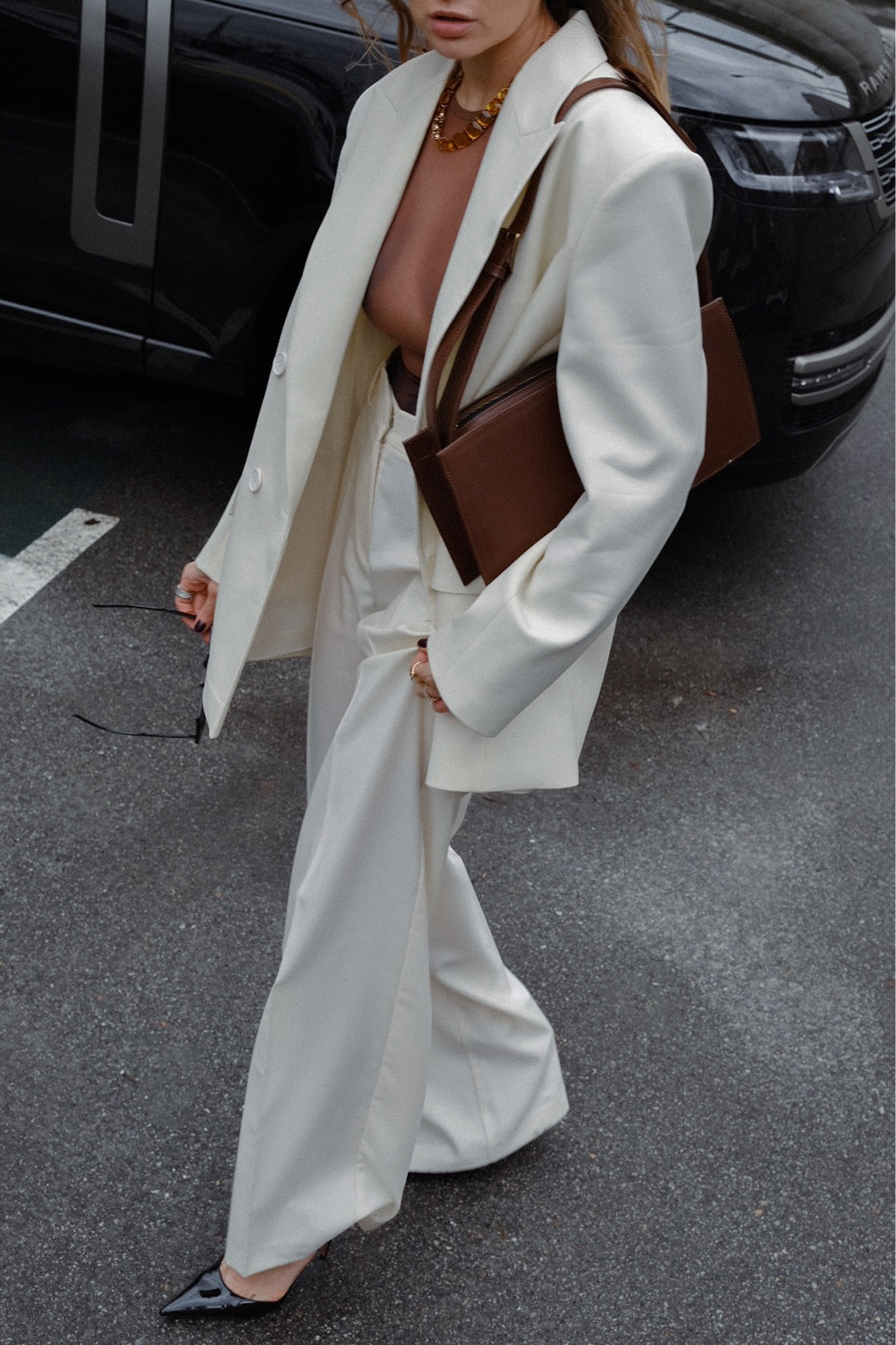 Брюки на середній посадці зі стрілками — базовий ритм у м’якому виконанні. Завдяки міксу віскози, бавовни та еластану вони поєднують комфорт, гнучкість і стриману елегантність. Підходять як для щоденного носіння, так і для більш формальних подій. Гармонійно поєднуються з жакетом, сорочкою або витонченим топом.