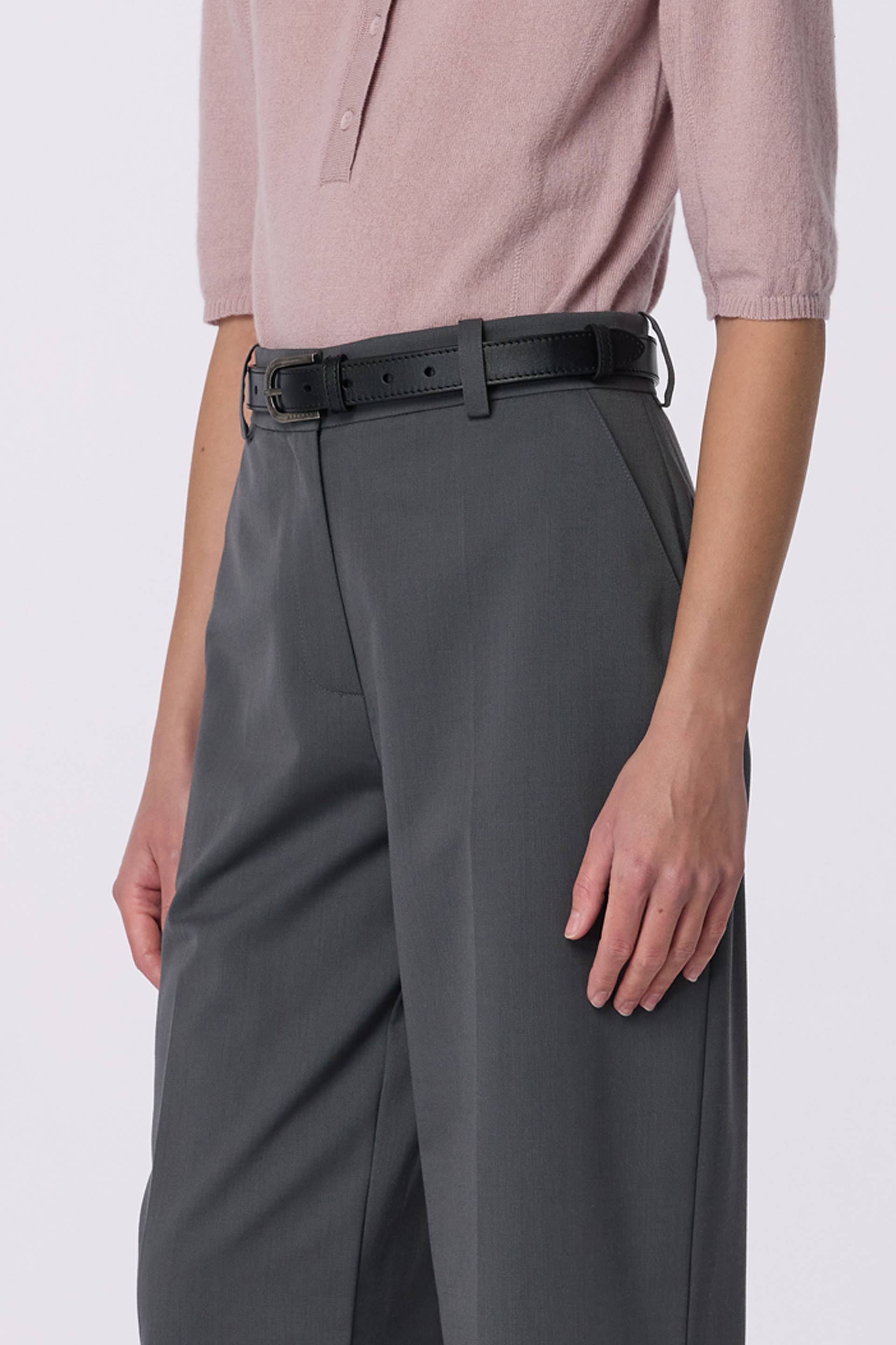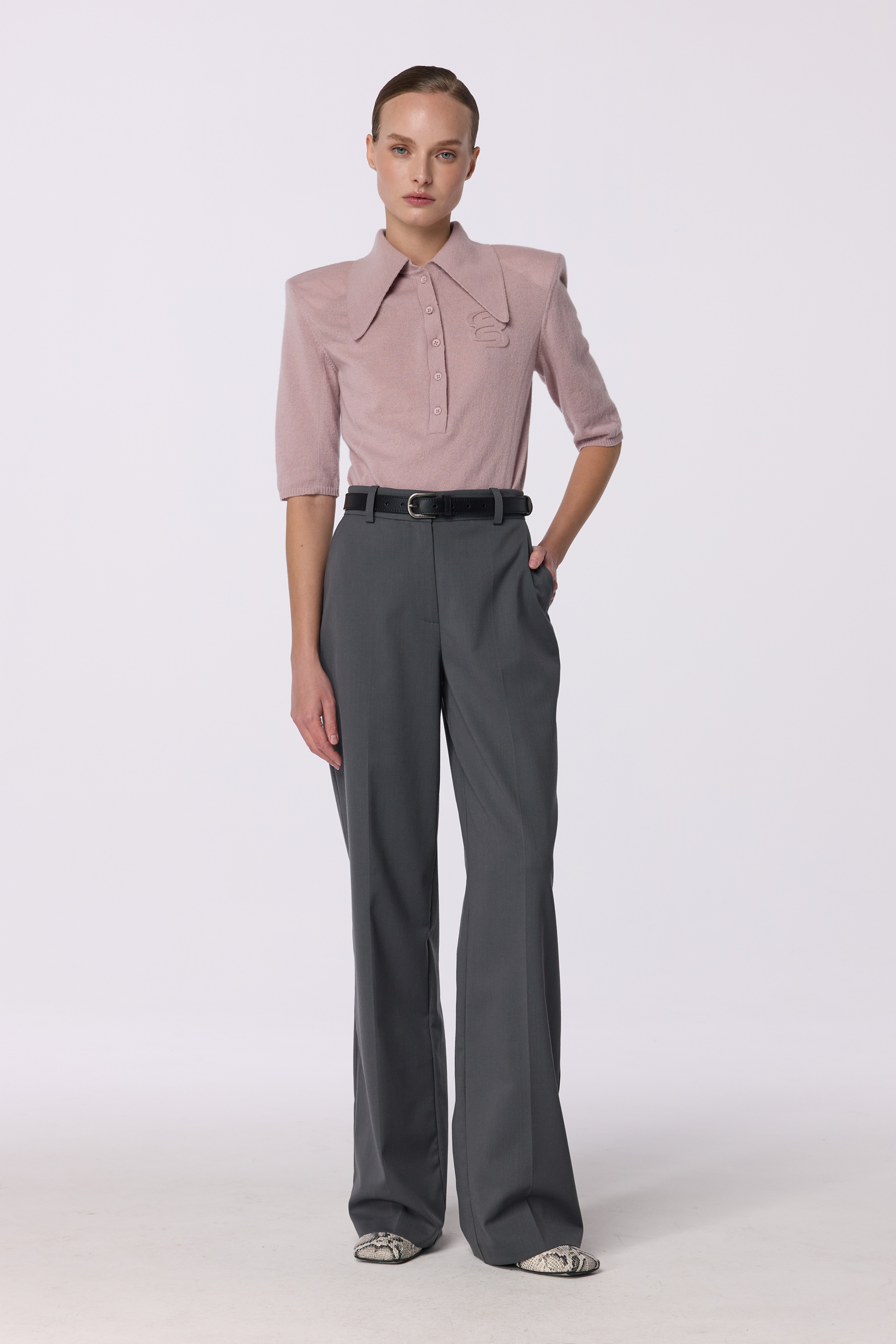 Брюки зі стрілками на середній посадці — графічна чіткість у поєднанні з тактильним комфортом. Виготовлені з virginwool, вони зберігають тепло і тримають форму, залишаючись універсальними для ділових образів або вечірніх виходів. Добре поєднуються з лонгслівом, кардиганом або лаконічним топом.