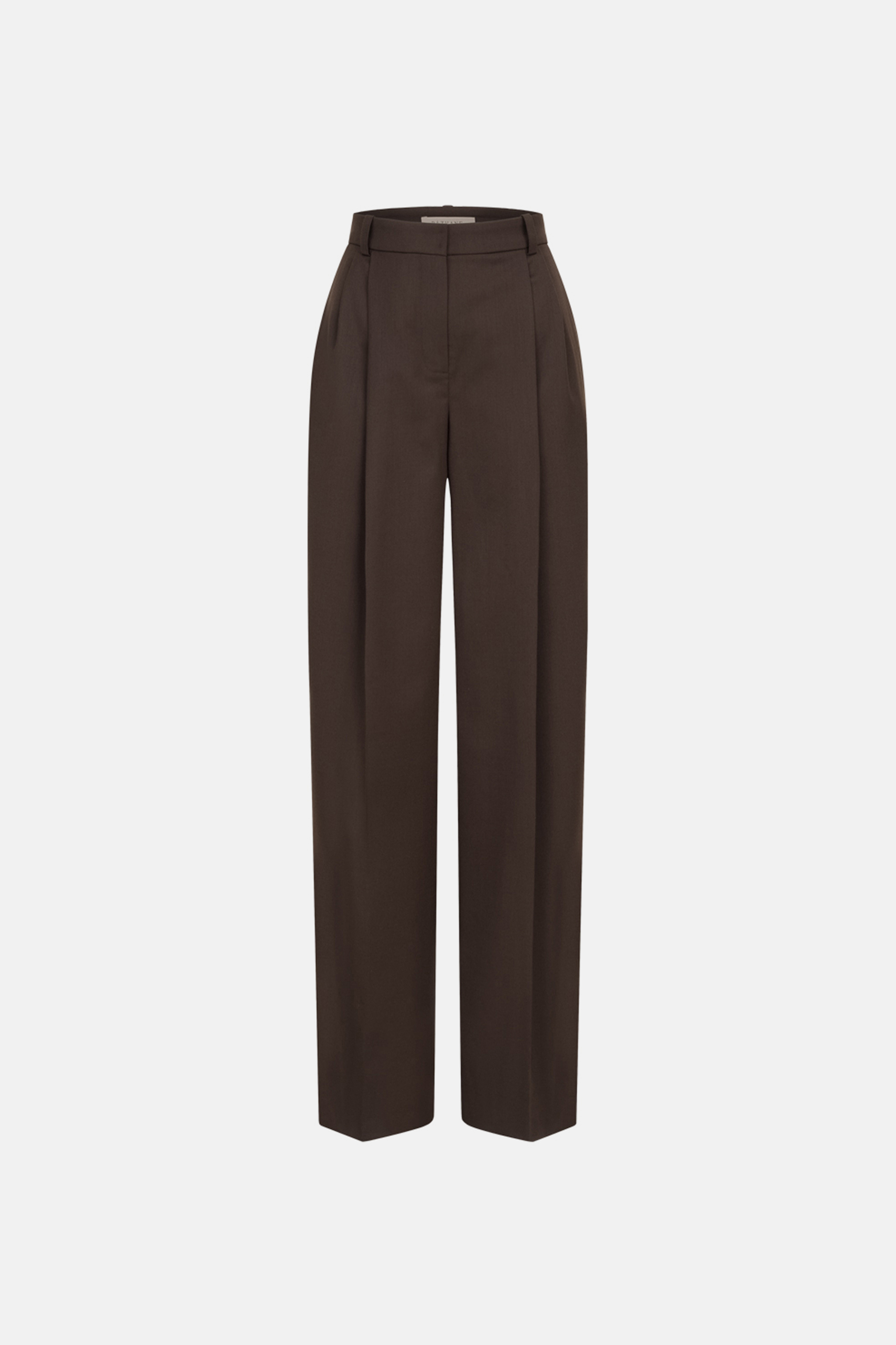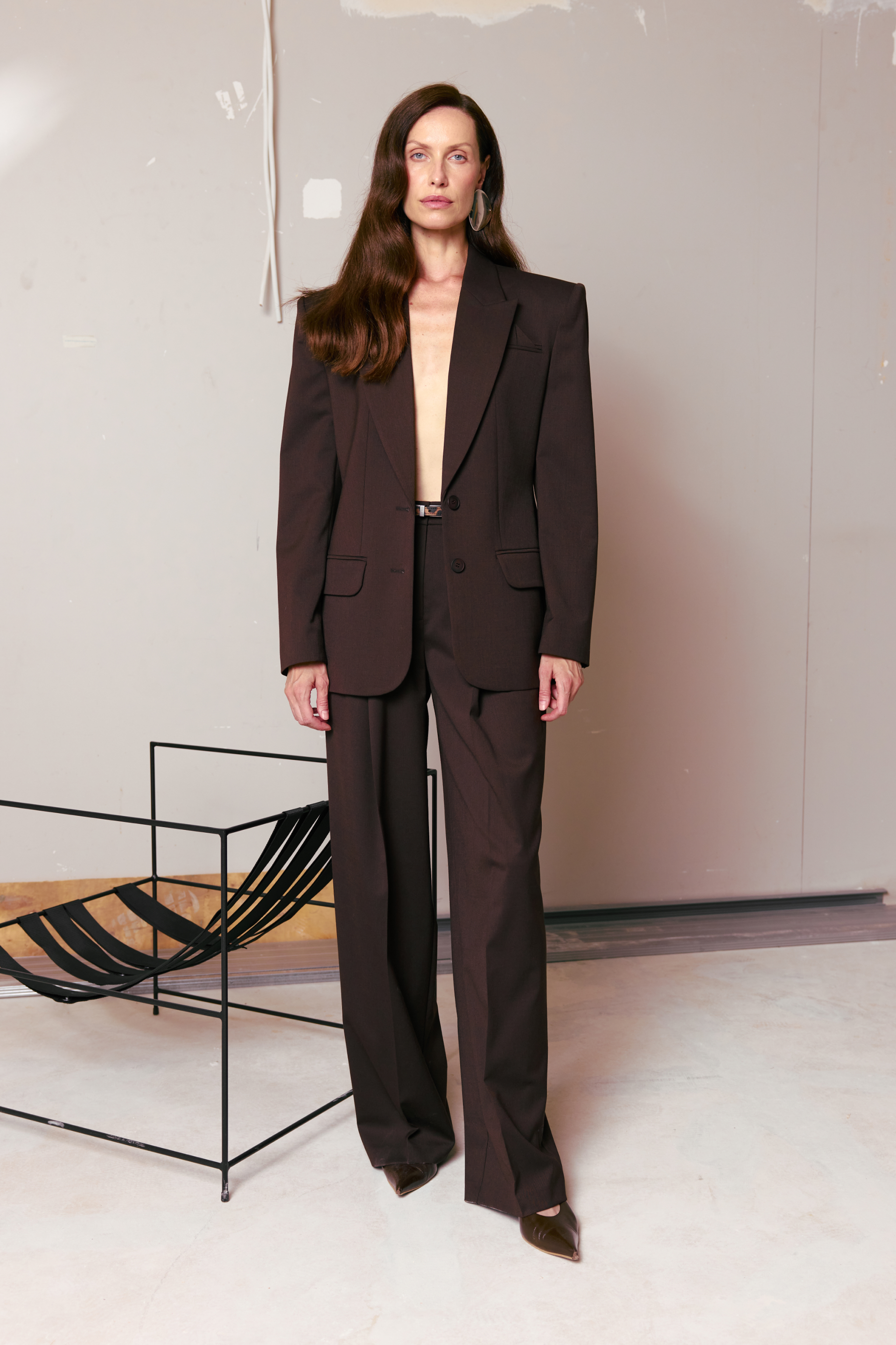 Брюки релакс на середній посадці прямого крою формують стриманий і витончений силует. Виконані з virginwool, вони дарують тепло та елегантний вигляд у прохолодну пору року. Ідеальний вибір для створення образів, у яких комфорт поєднується зі стилем. Лаконічний дизайн і м’яка лінія крою дозволяють легко комбінувати брюки з жакетами, лонгслівами або мінімалістичними аксесуарами, формуючи завершений і збалансований образ.