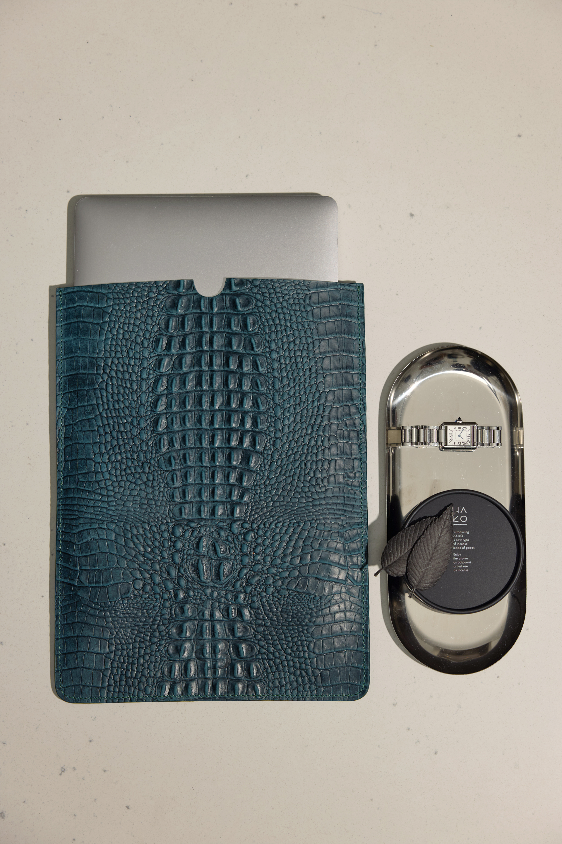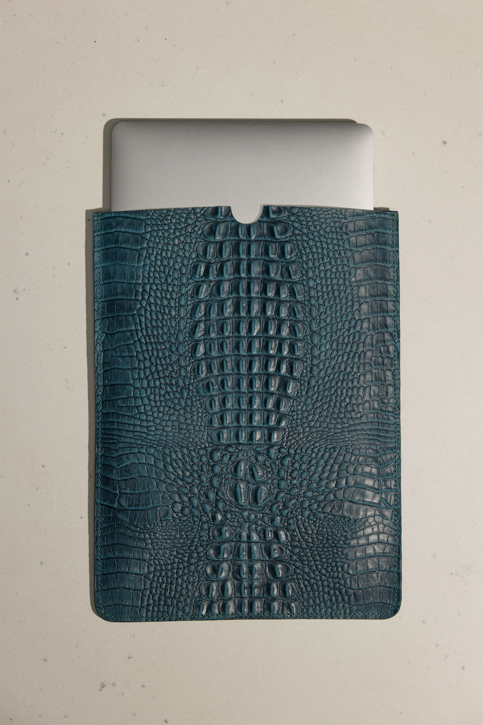Чохол для MacBook Bazhane — елегантний аксесуар із натуральної шкіри з тисненням під крокодила у насиченому зеленому відтінку. Поєднує в собі вишукану естетику та надійний захист пристрою. Завдяки продуманій формі та високоякісній обробці шкіри, чохол збе