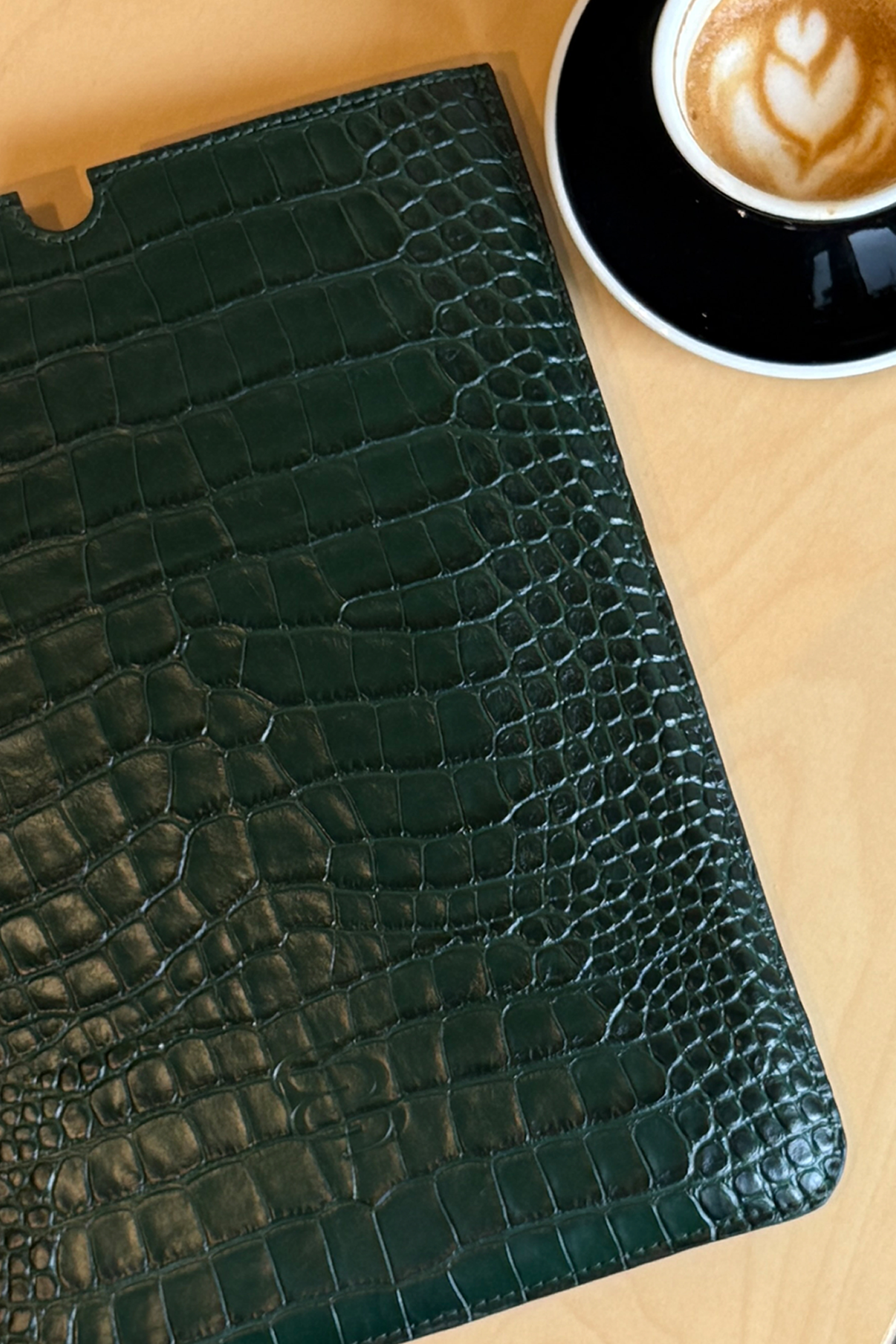 Чохол для MacBook Bazhane — елегантний аксесуар із натуральної шкіри з тисненням під крокодила у насиченому зеленому відтінку. Поєднує в собі вишукану естетику та надійний захист пристрою. Завдяки продуманій формі та високоякісній обробці шкіри, чохол зберігає бездоганний вигляд і підкреслює індивідуальний стиль власника. Чохол рекомендуємо до моделей MacBook Air.