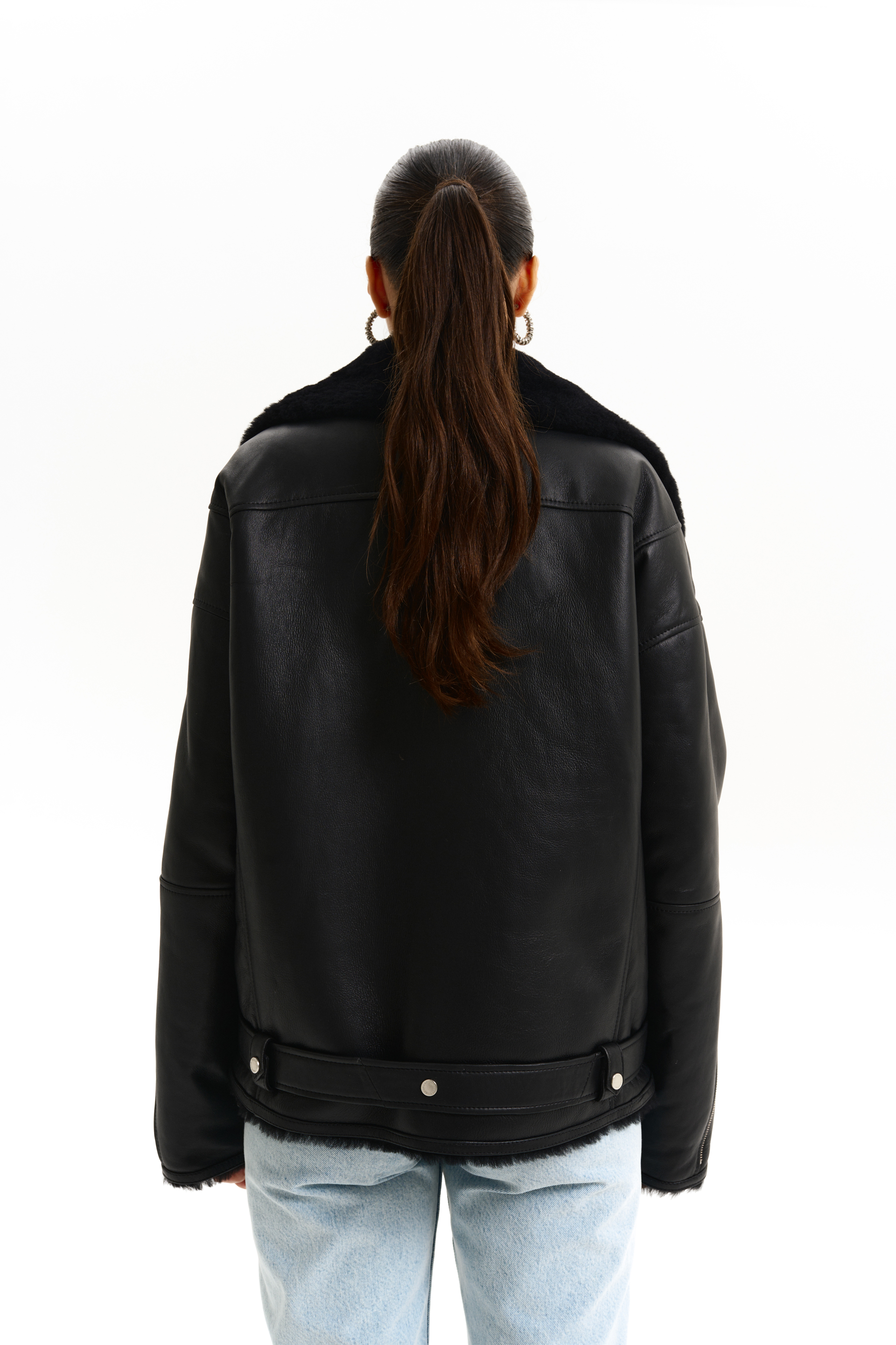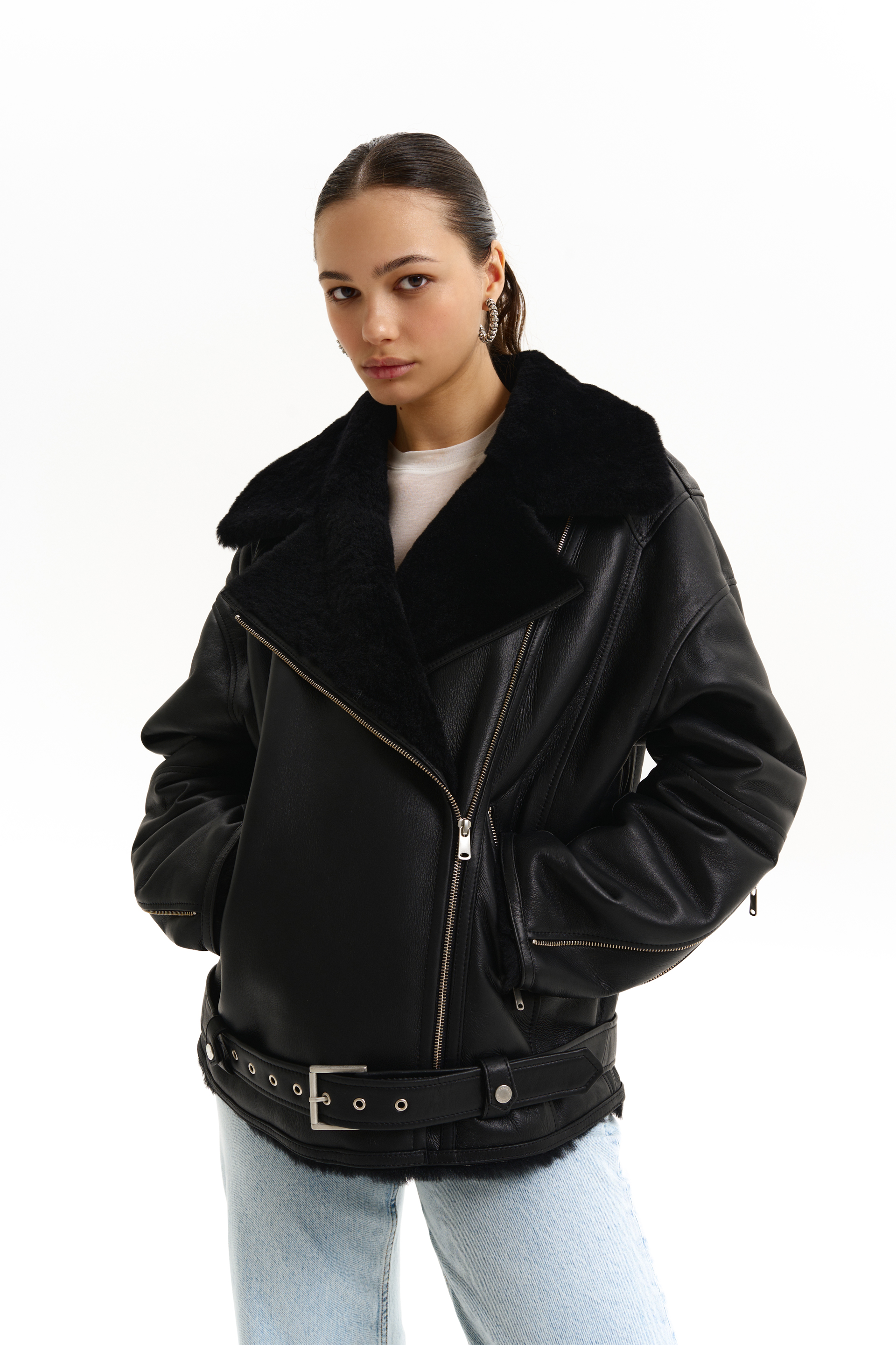 Дублянка оверсайз з ременем і чорним хутром. Виготовлена з натуральної шкіри, що забезпечує тепло та комфорт. Ідеальний вибір для стильних зимових образів. Гармонійно поєднується з брюками, спідницею або сукнею для ефектного та розкішного вигляду.