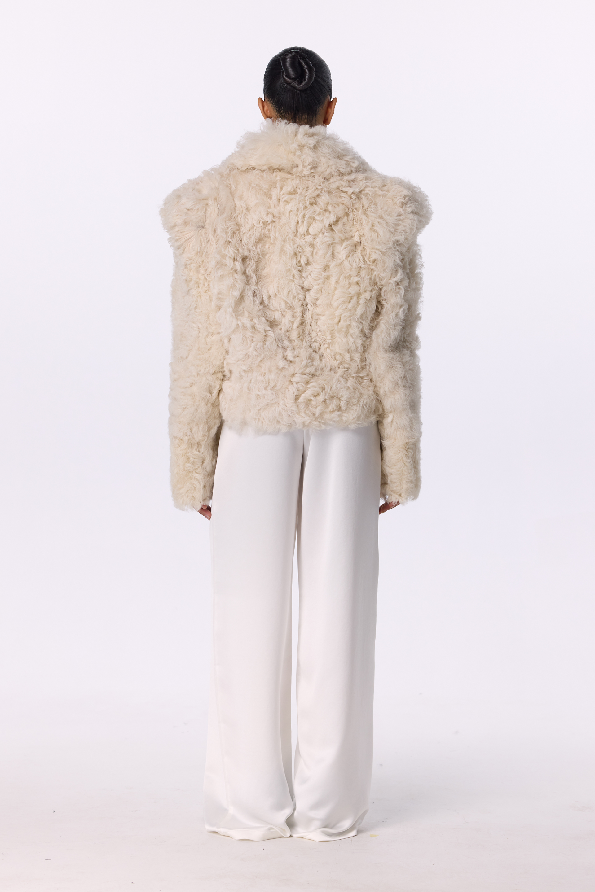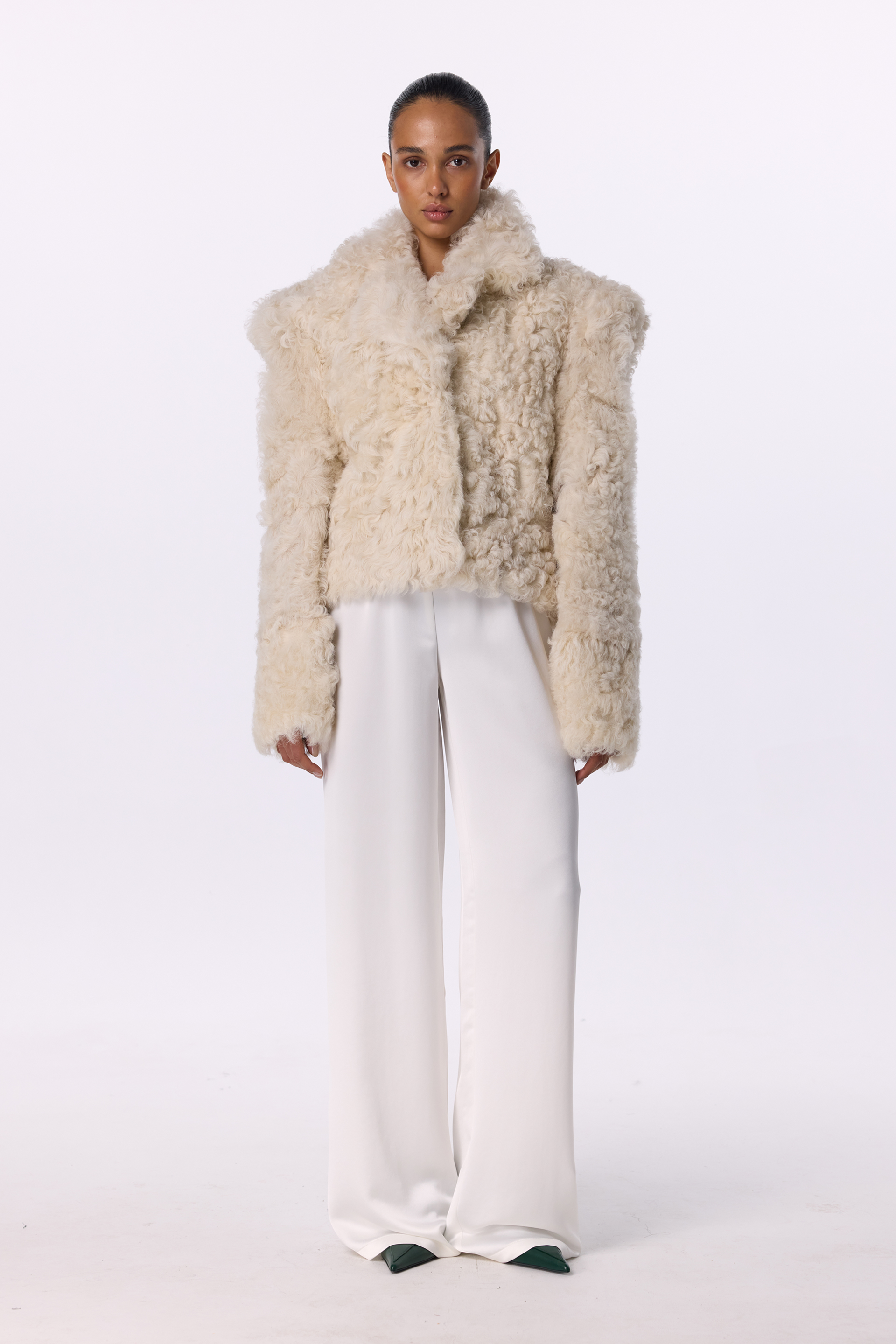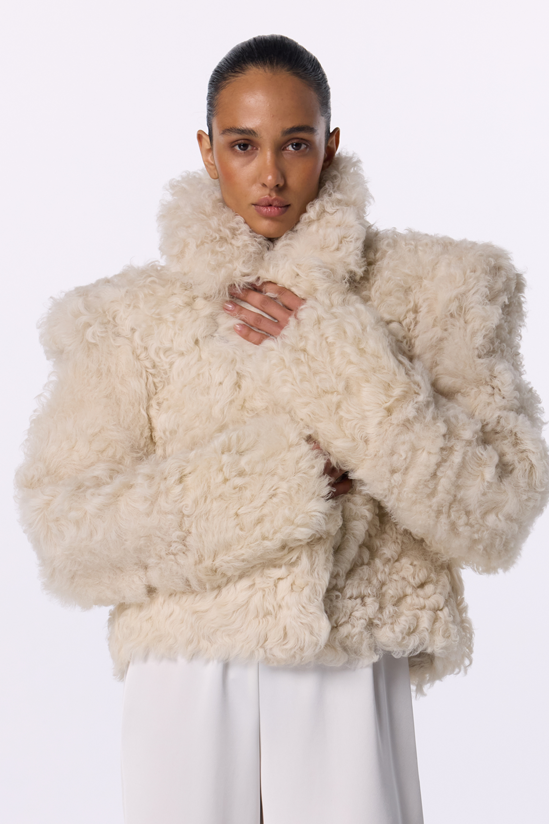 Дублянка-шуба Hush — втілення сучасної елегантності та тепла. Модель виконана з натурального італійського хутра овчини з довгим завитим ворсом, що нагадує шерсть альпаки. Широкий відкладний комір і акцентні плечі створюють виразний силует, поєднуючи сміливість і витонченість. Оверсайз-крій і м’яка фактура забезпечують комфорт і невимушений стиль у холодну пору року. Підходить для температур до –20°C.