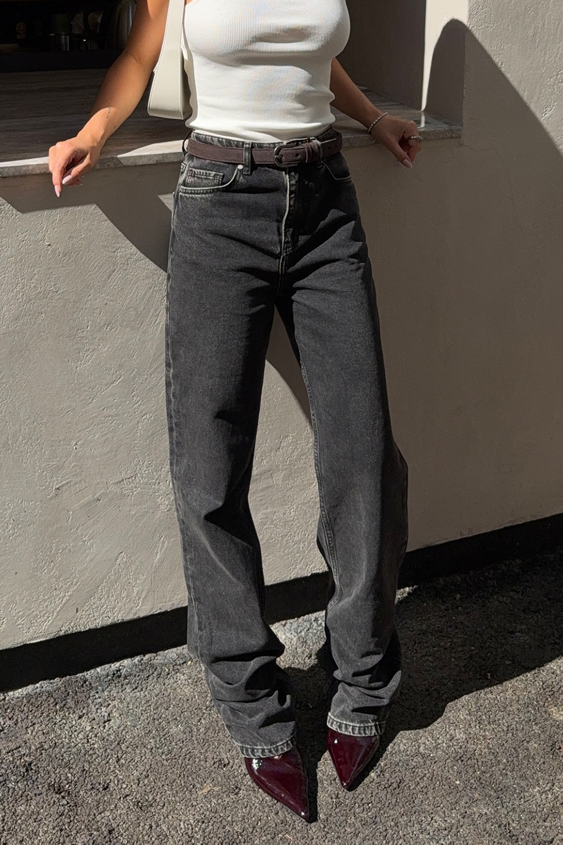 Джинси прямого крою з високою посадкою. Виготовлені з бавовни, що забезпечує комфортну посадку та довговічність. Ідеально підходять для створення базових образів на кожен день — від офісного до повсякденного стилю. Добре поєднуються з об'ємними светрами, сорочками або шкіряними куртками, створюючи стильний та універсальний лук.