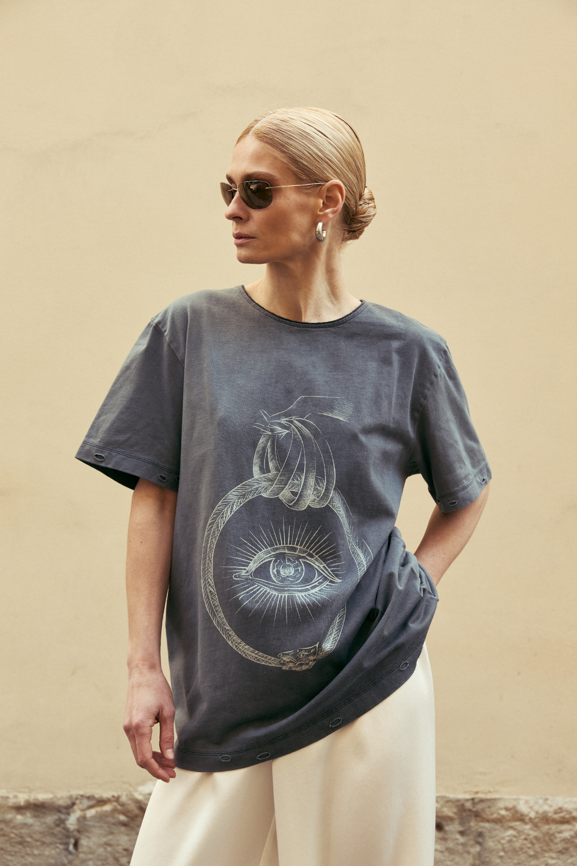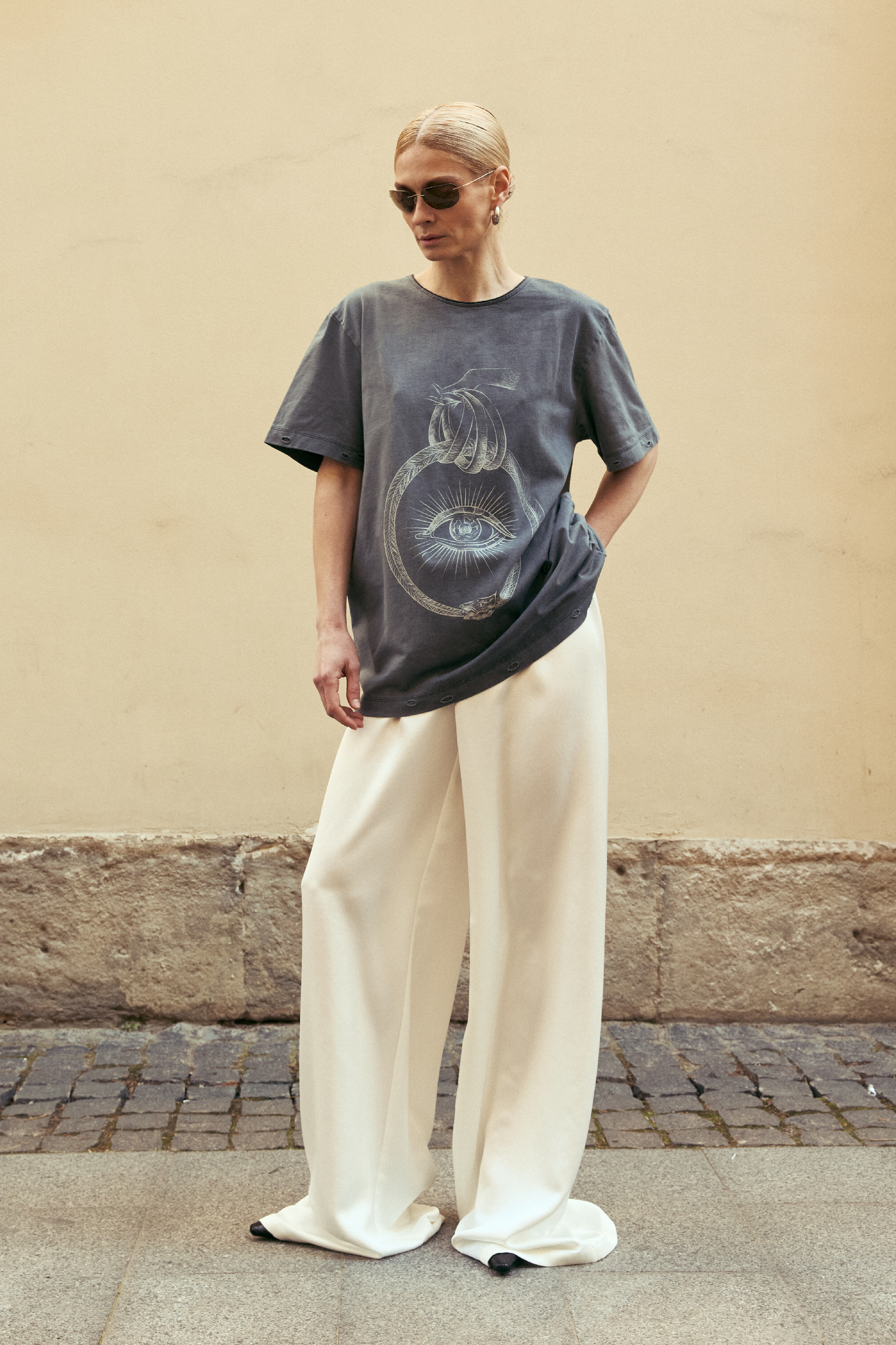 Модель на фото , одягнена у розмір: M, її параметри: Зріст 169 см, груди 93 см, талія 68 см, стегна 89 см.