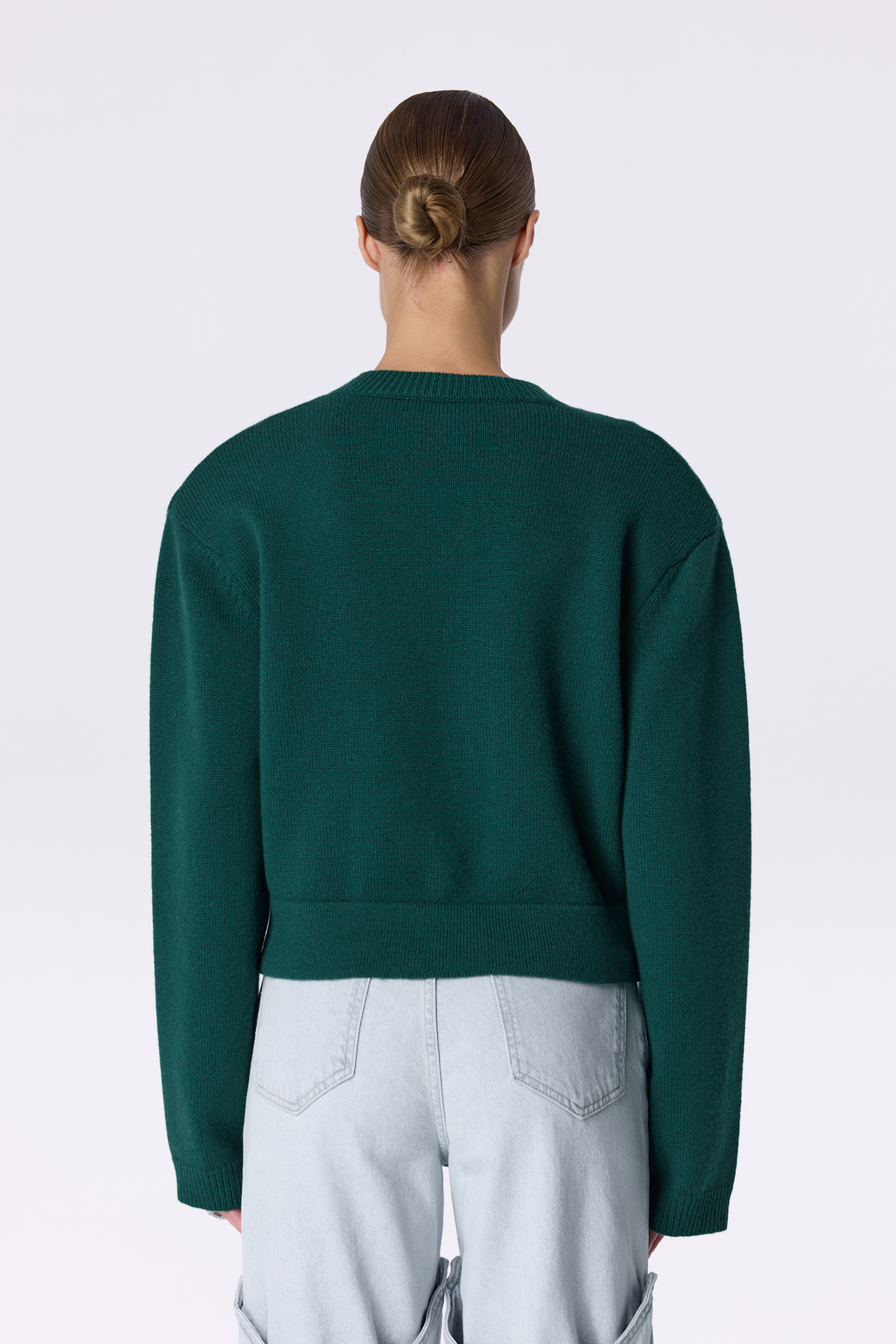 Кардиган Pumped — стильна інтерпретація класичного трикотажу з сучасним характером. Виготовлений із м’якої італійської пряжі з високим вмістом вовни та кашеміру, він забезпечує тепло й комфорт у прохолодну погоду. Приталений вкорочений силует із виразними плечима створює динамічний образ, а зйомні підплічники роблять модель практичною та універсальною для різних стилів.