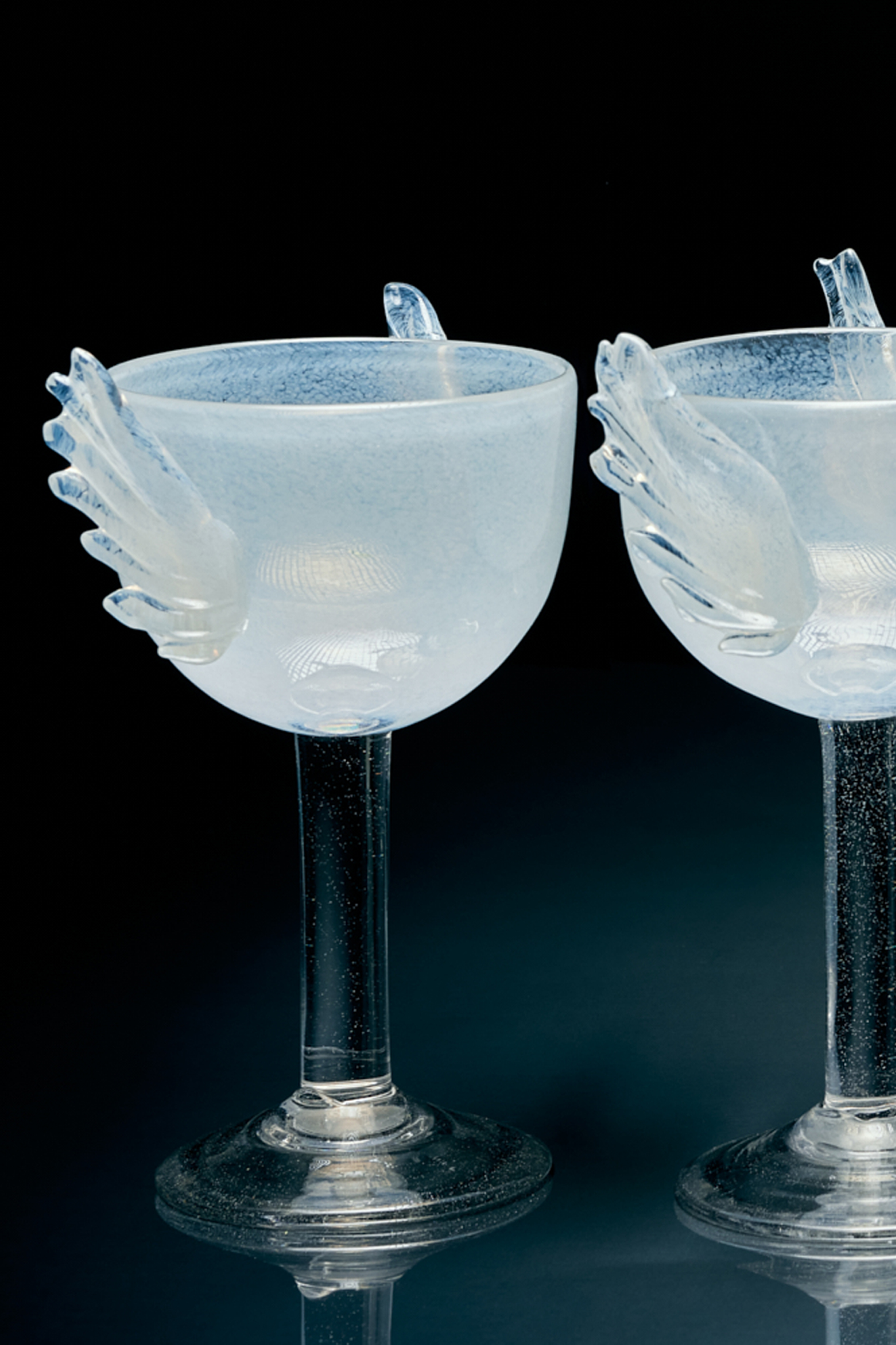 Келих прозорий Nadiia виготовлений вручну традиційними львівськими склодувами, що робить кожен виріб унікальним. Натхненні образами богині Ніки — символу перемоги, та декоративними херувимами козацького бароко, він поєднує у собі витонченість і силу. Прозоре скло з делікатними крильцями додає композиції легкості та гармонійно доповнює інші предмети колекції. Завдяки індивідуальному виготовленню можливі незначні відмінності, що підкреслюють автентичність кожного виробу. Для збереження якості рекомендується ручна мийка та уникнення різких перепадів температур.