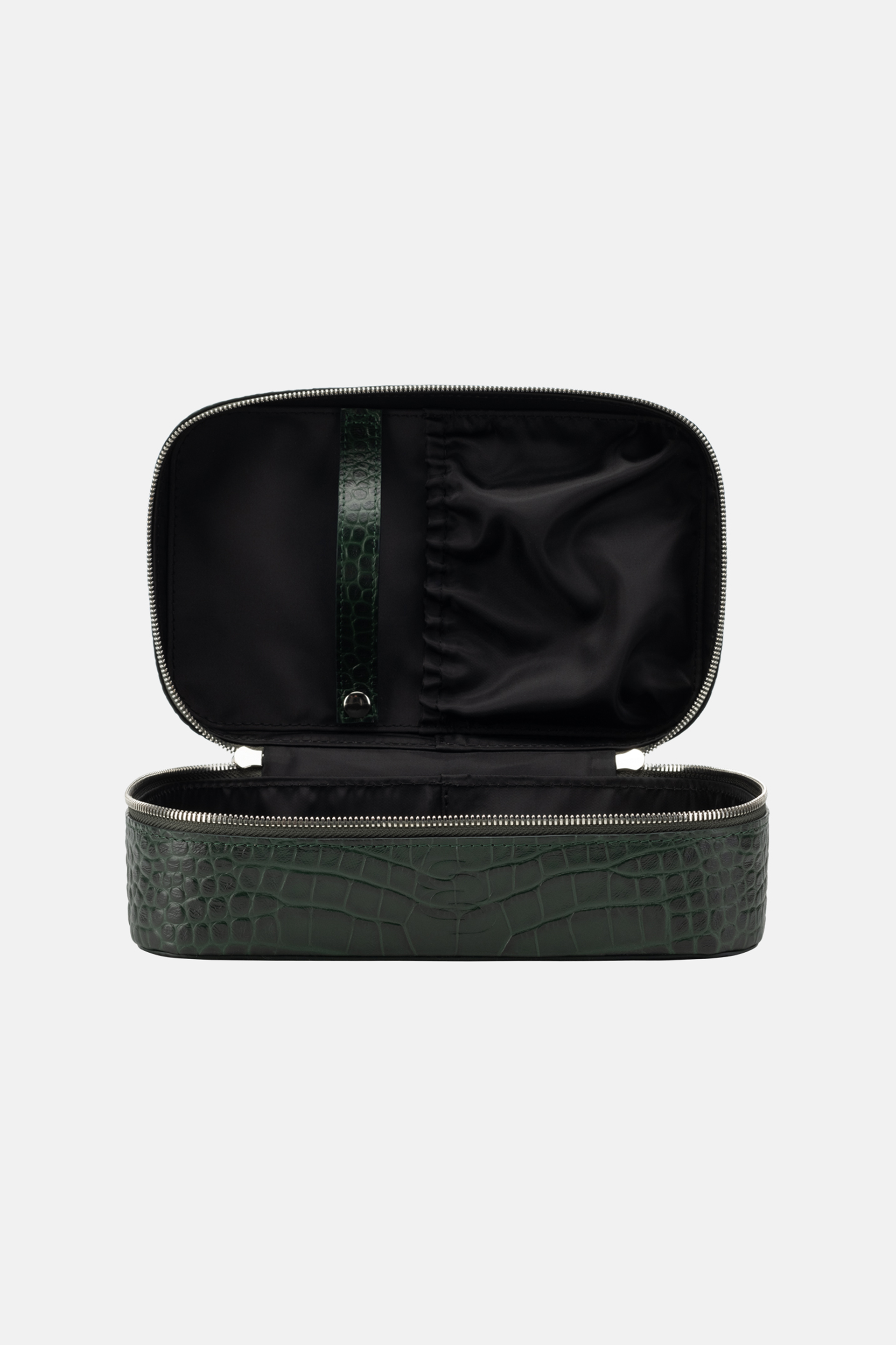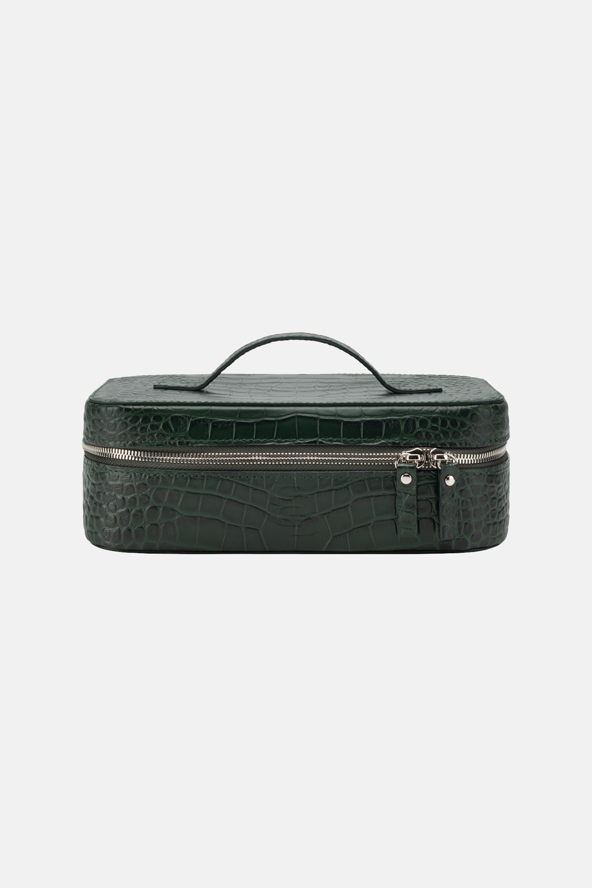Косметичка Bazhane — елегантний аксесуар, що поєднує виразну фактуру та функціональність. Виконана з натуральної шкіри з тисненням під крокодила, модель має структуровану форму, що зручно зберігає вміст і зберігає охайний вигляд. Металева блискавка з подвійним бігунком забезпечує легкий доступ, а компактна ручка додає зручності у використанні. Ідеальний варіант для організації косметики як у подорожах, так і в повсякденному житті.