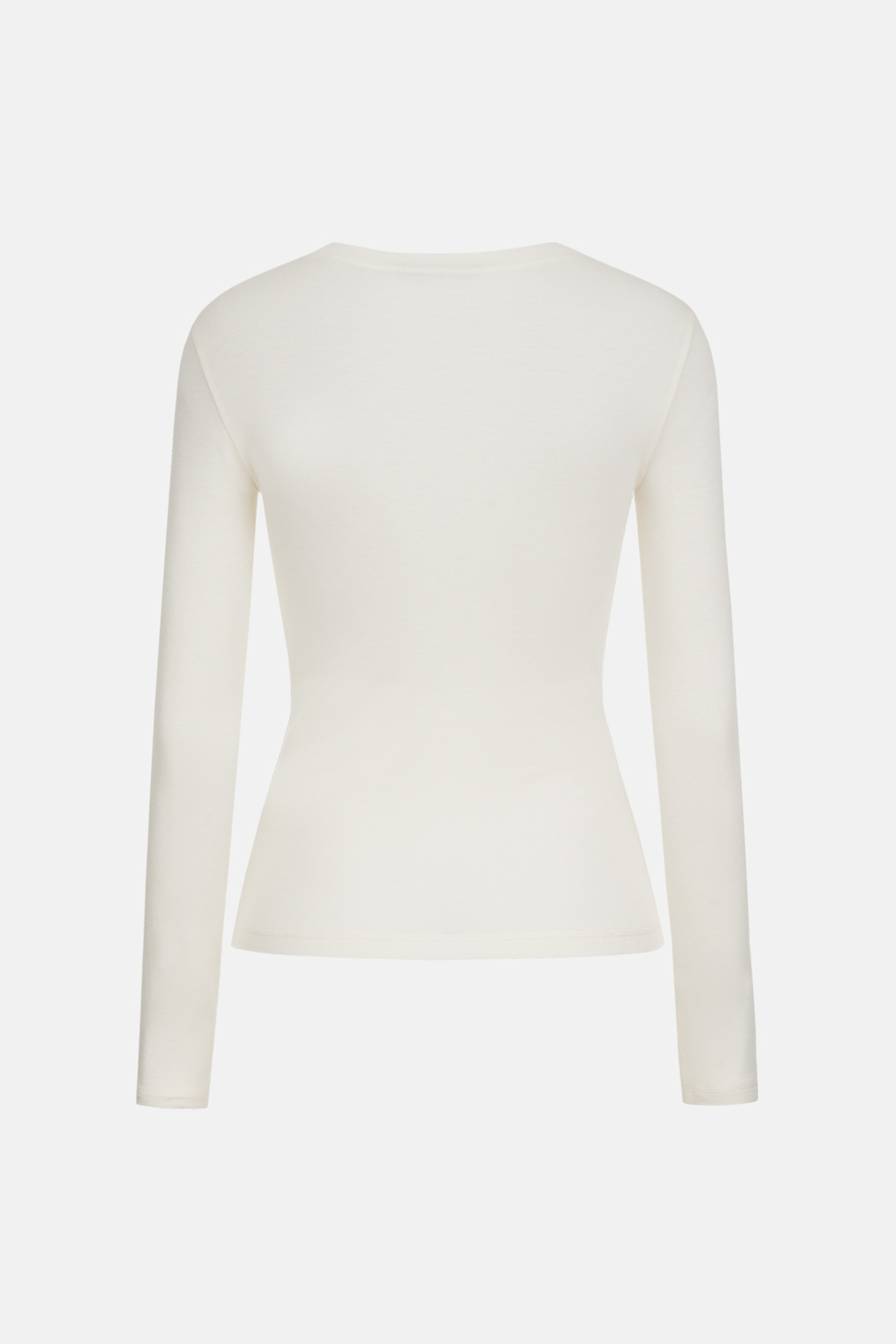 Приталений лонгслів із напівпрозорої текстури — тонка лінія між делікатністю й силою. Виготовлений із міксу віскози, вовни та еластану, він підкреслює фігуру, залишаючи простір для гри світла й фактур. Легкий, майже невідчутний на тілі, лонгслів створений для елегантних образів — як буденних, так і особливих.