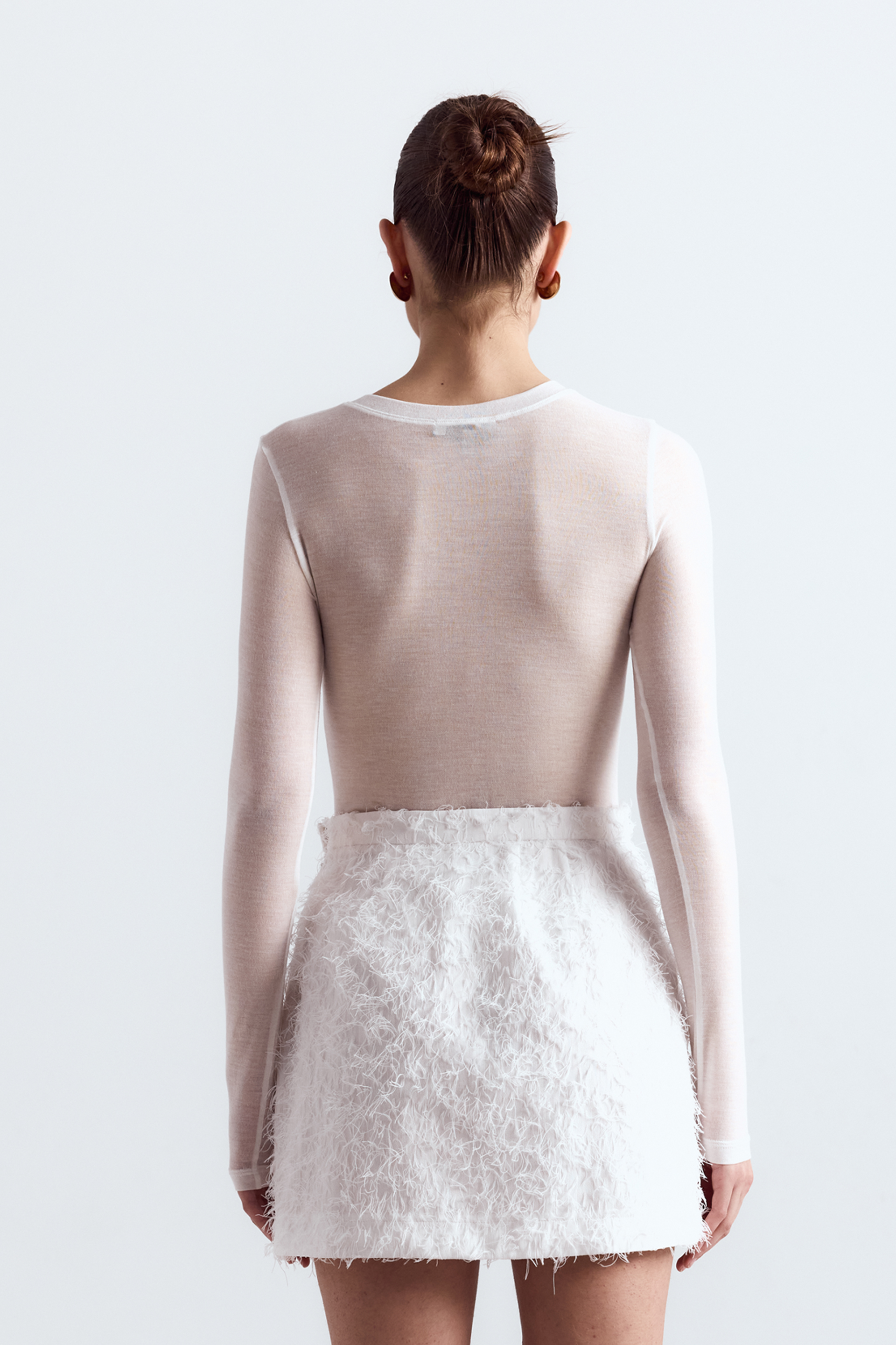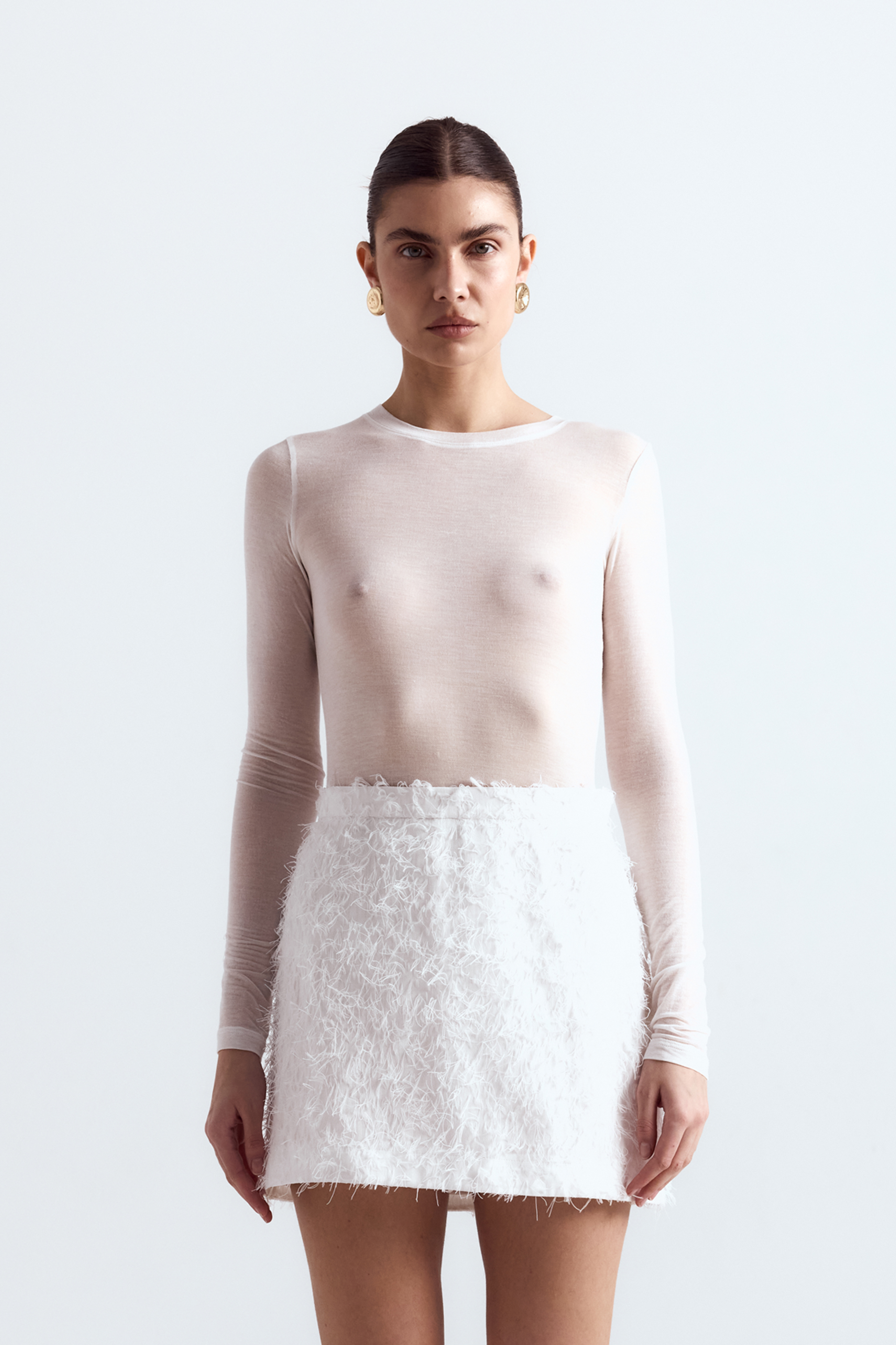 Напівпрозорий лонгслів із приталеним силуетом — елегантна база для образів із м’яким акцентом. Модель делікатно облягає тіло, створюючи витончену лінію й відчуття легкості. Виготовлений із модалу з додаванням еластану — для м’якого дотику та зручної посадки.