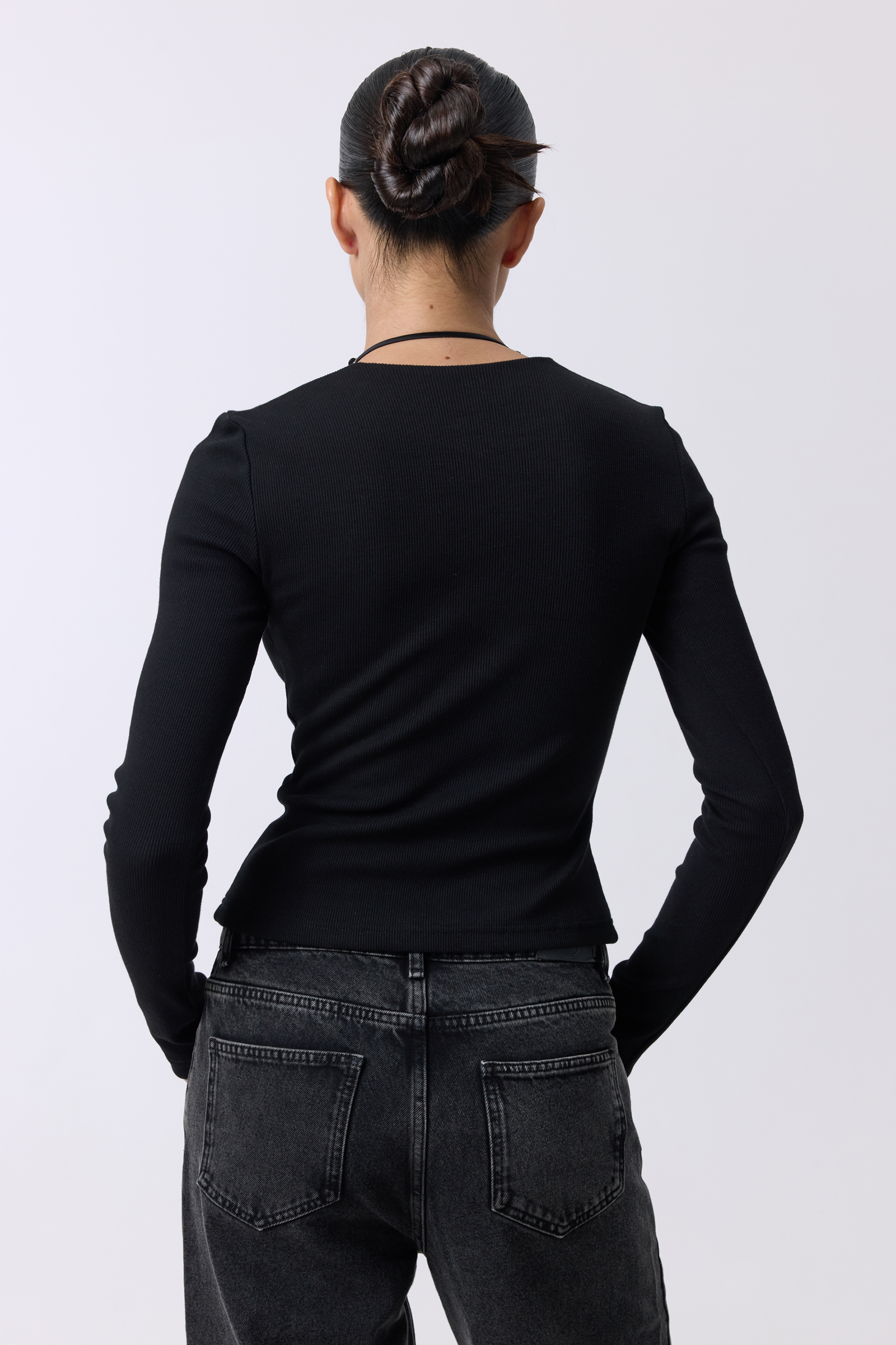 Лонгслів Tulip — модель із виразним акцентом на зоні декольте. Вбудований ліф із вирізом створює графічний силует і додає образу контрастної структури. Завдяки поєднанню двох тканин — міксу бавовни з еластаном та міксу віскози з еластаном — лонгслів поєднує еластичність, комфорт і сучасну форму.