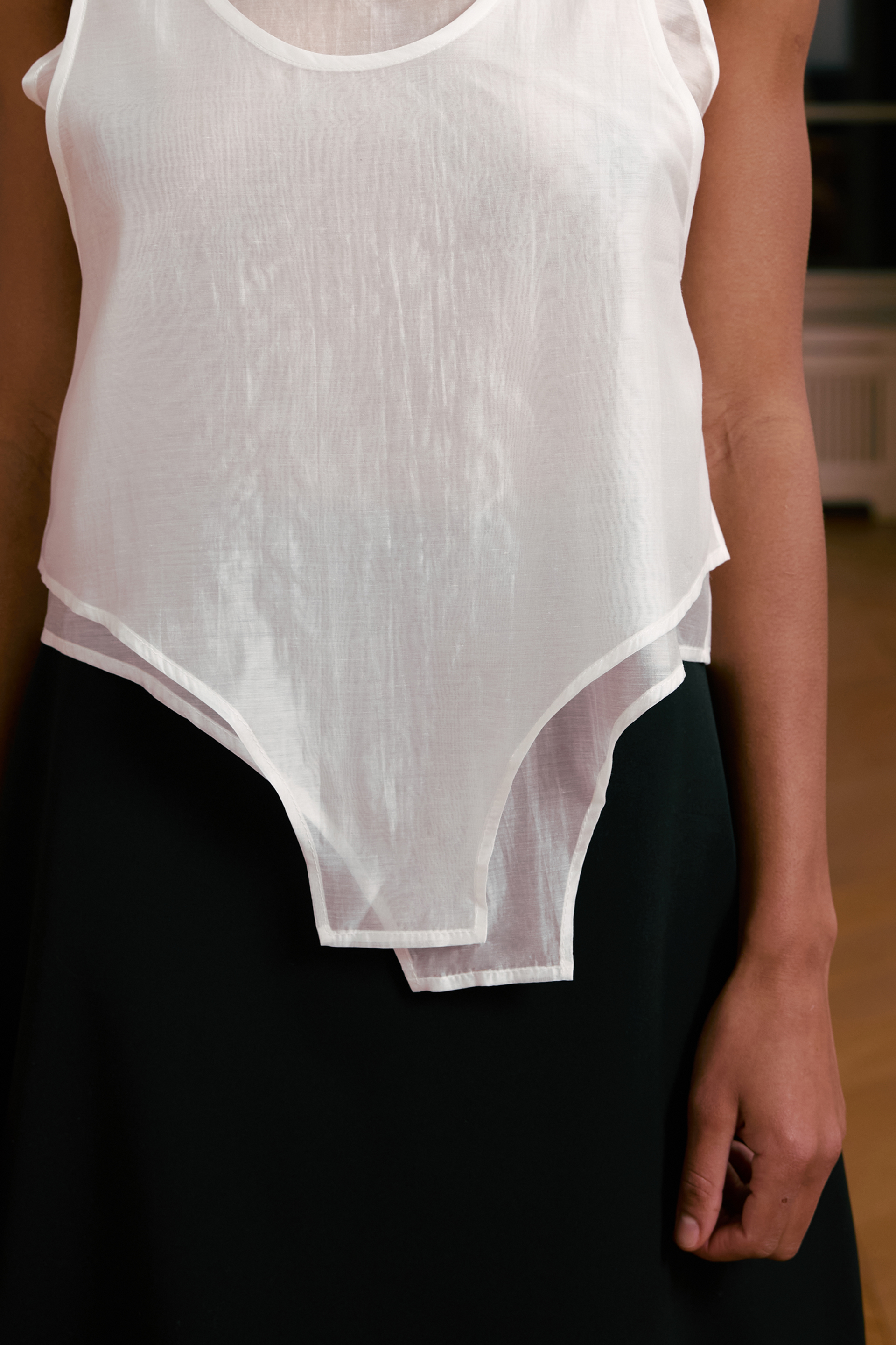 Майка Ballet — це подвійна напівпрозора модель з імітацією розстібаного боді. Виконана з тенселу, вона має легку та м'яку текстуру, що дарує комфорт і елегантність. Стильний дизайн в поєднанні з сучасною конструкцією робить цю майку ідеальним вибором для створення витонченого, але сміливого образу.