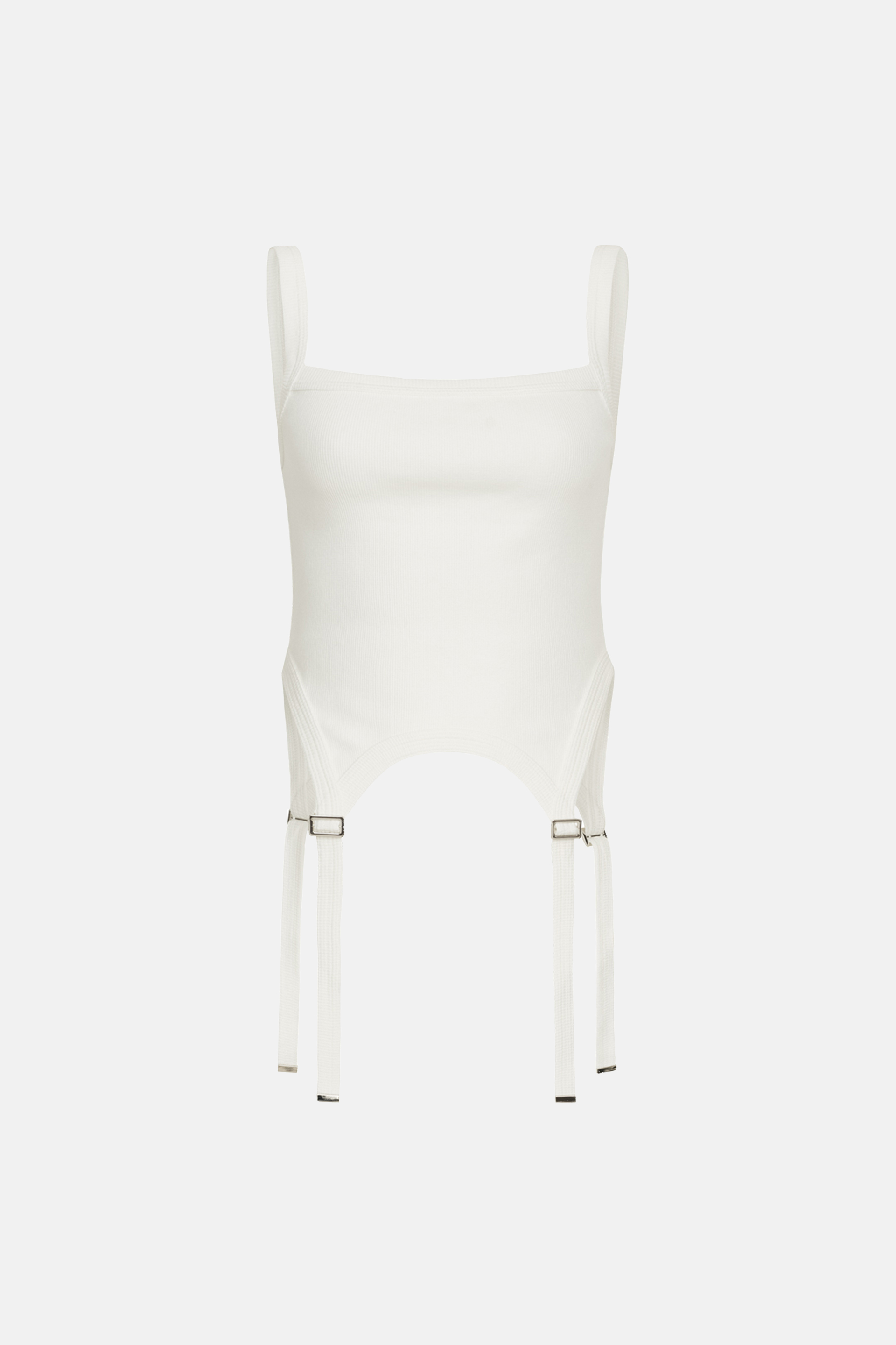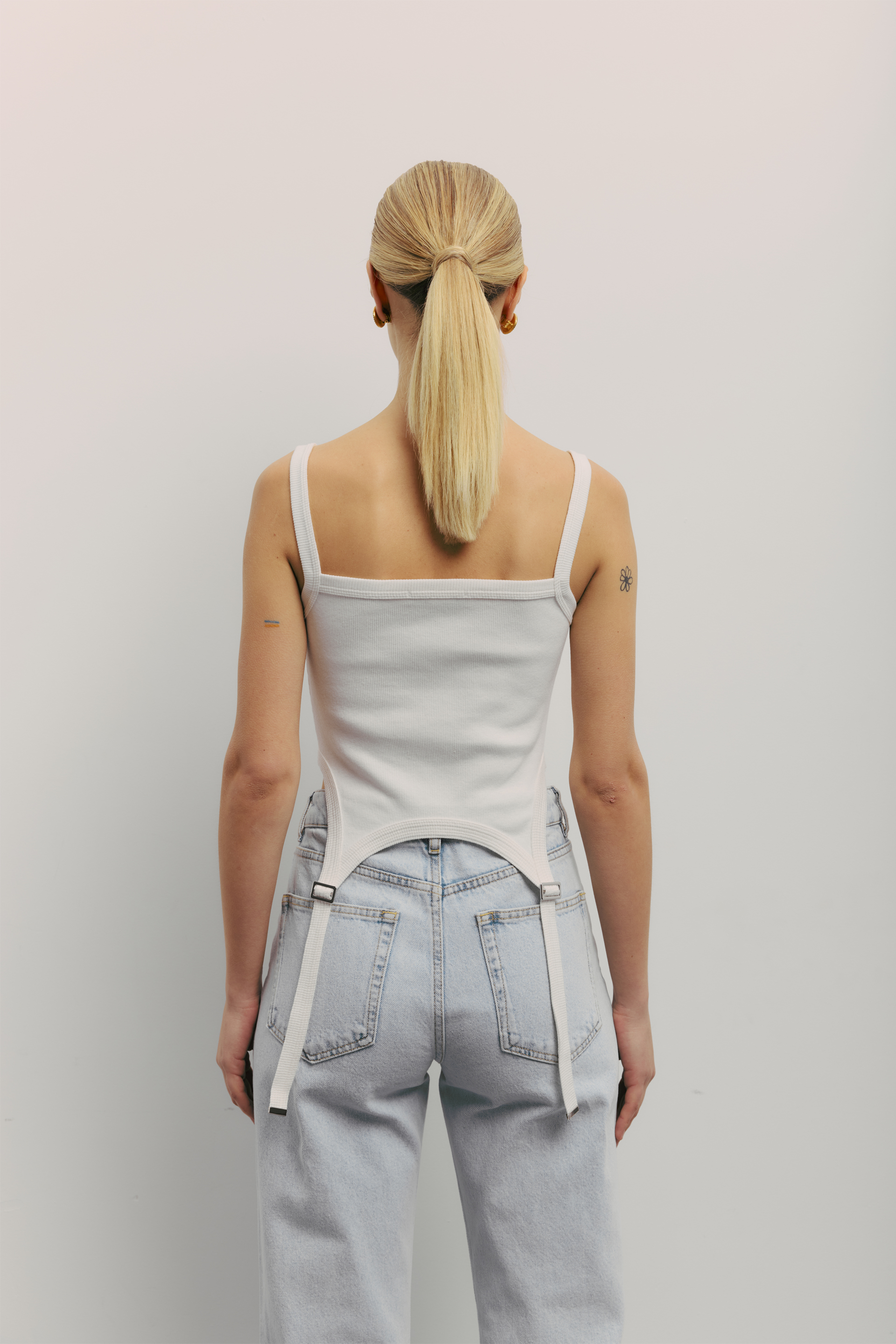 Майка з гартерами — це стильна модель, яка поєднує комфорт та елегантність. Виконана з міксу бавовни та еластану, майка має м'яку текстуру та ідеально сідає по фігурі. Додаткові гартери додають оригінальності та сміливості образу, роблячи її ідеальним вибором для створення акцентного стилю на будь-яку подію.