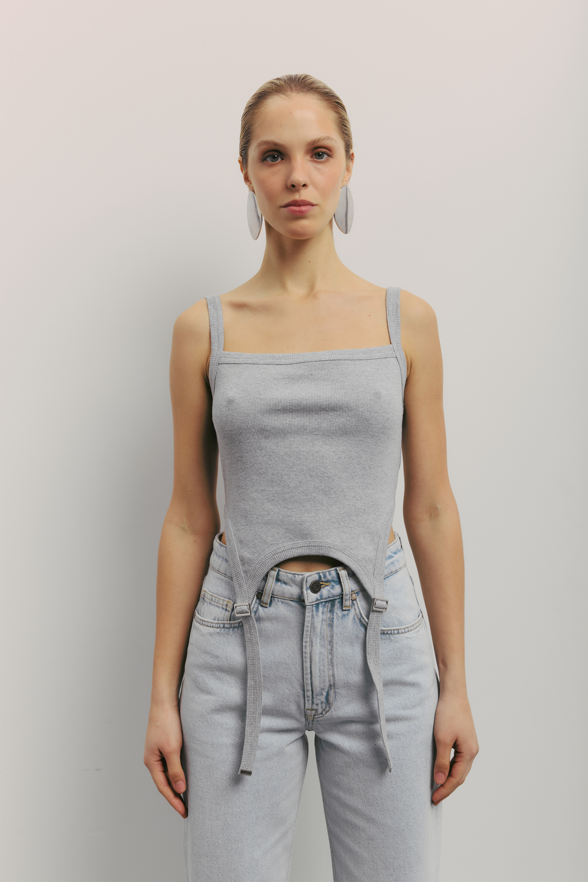 Майка з гартерами — це стильна модель, яка поєднує комфорт та елегантність. Виконана з міксу бавовни та еластану, майка має м'яку текстуру та ідеально сідає по фігурі. Додаткові гартери додають оригінальності та сміливості образу, роблячи її ідеальним вибором для створення акцентного стилю на будь-яку подію.