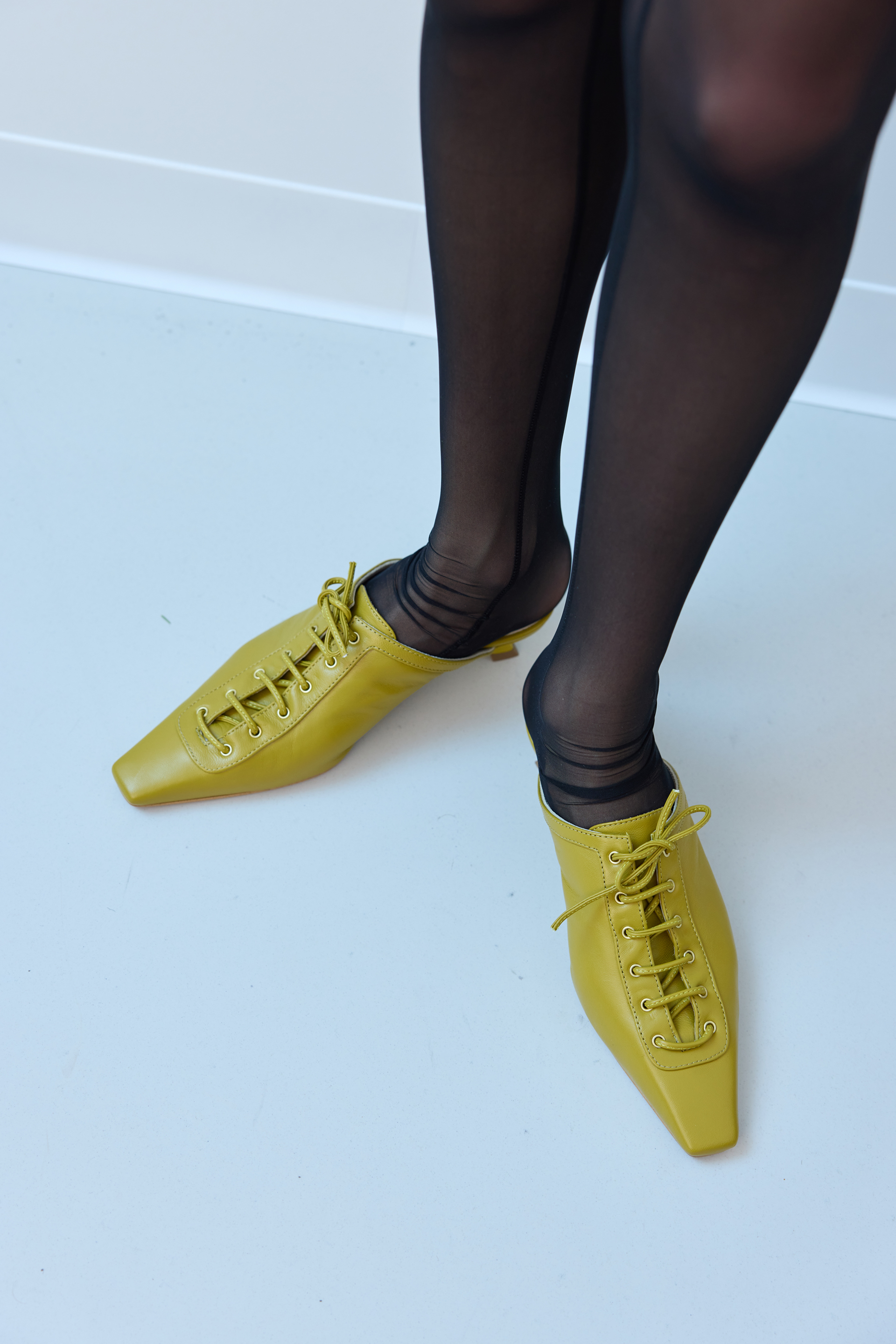 Мюлі Siren – це зухвала гра класики та сучасності. Витончений силует із загостреним носком поєднується з мініатюрним каблуком kitten heel, створюючи ефектну рівновагу між елегантністю та зручністю. Шнурівка додає образу нотку вінтажного шарму, а м'яка натуральна шкіра огортає стопу, забезпечуючи комфорт на кожному кроці. Ця пара – ідеальний вибір для тих, хто цінує нетривіальні деталі й хоче зробити акцент на взутті, навіть у найлаконічнішому образі.