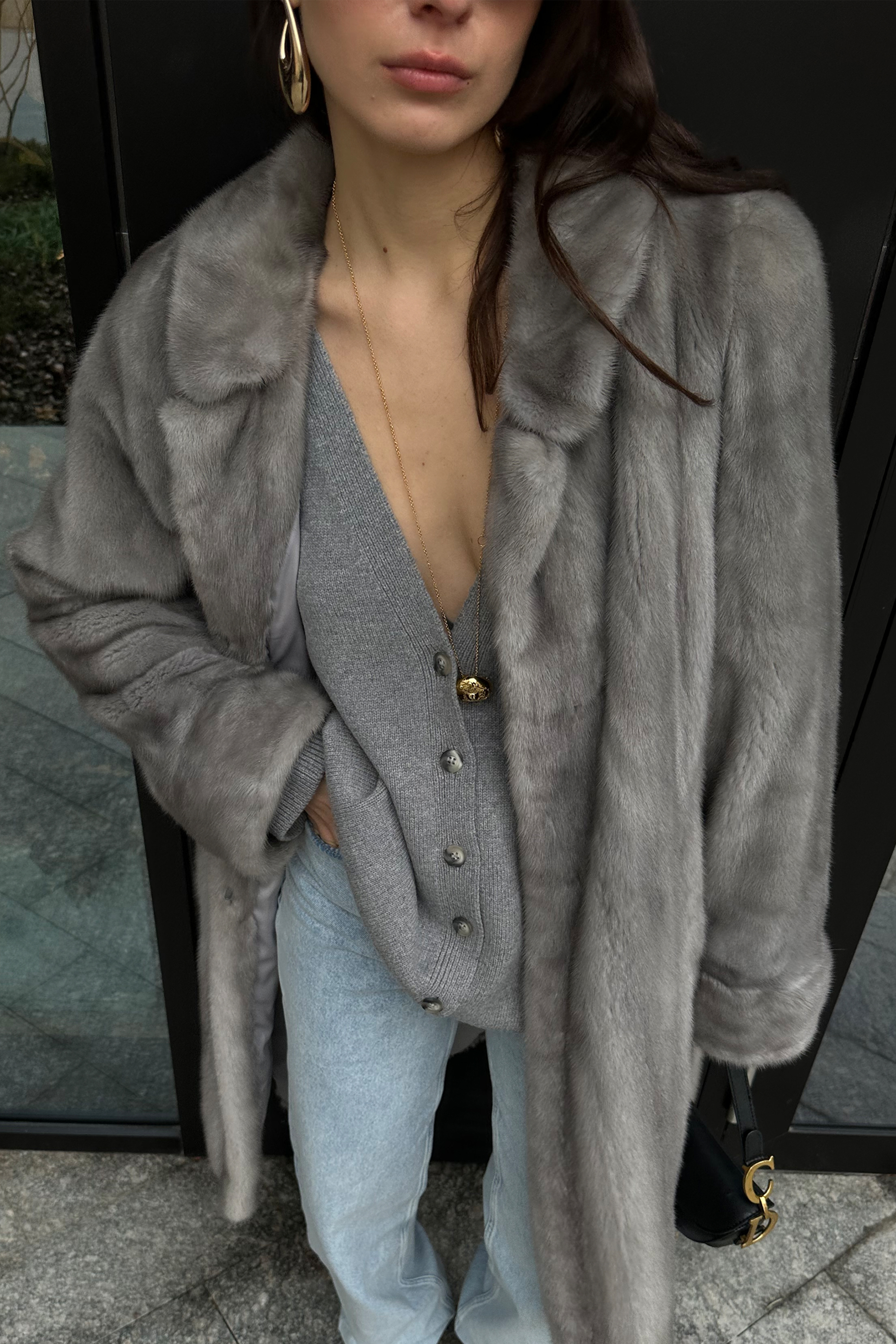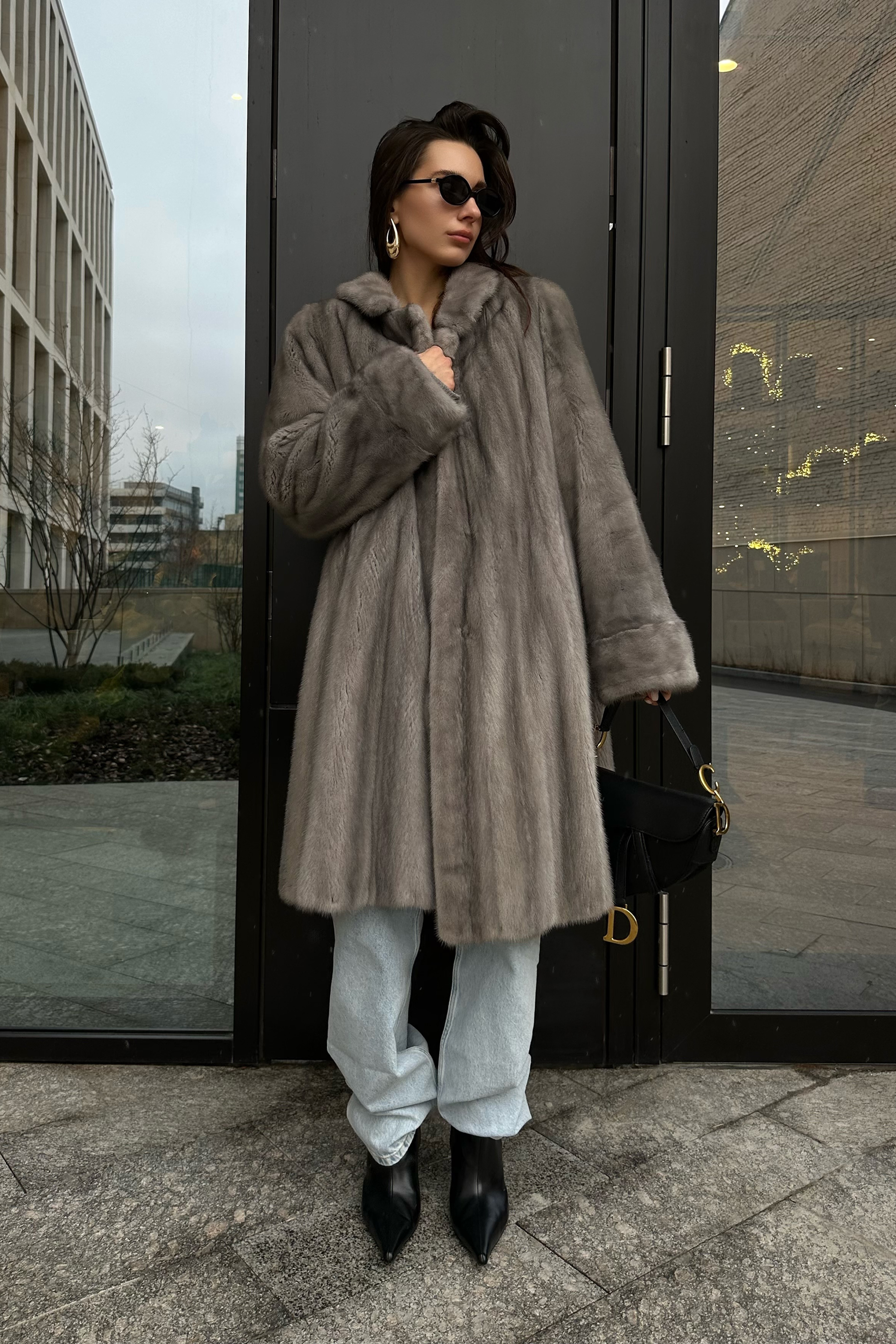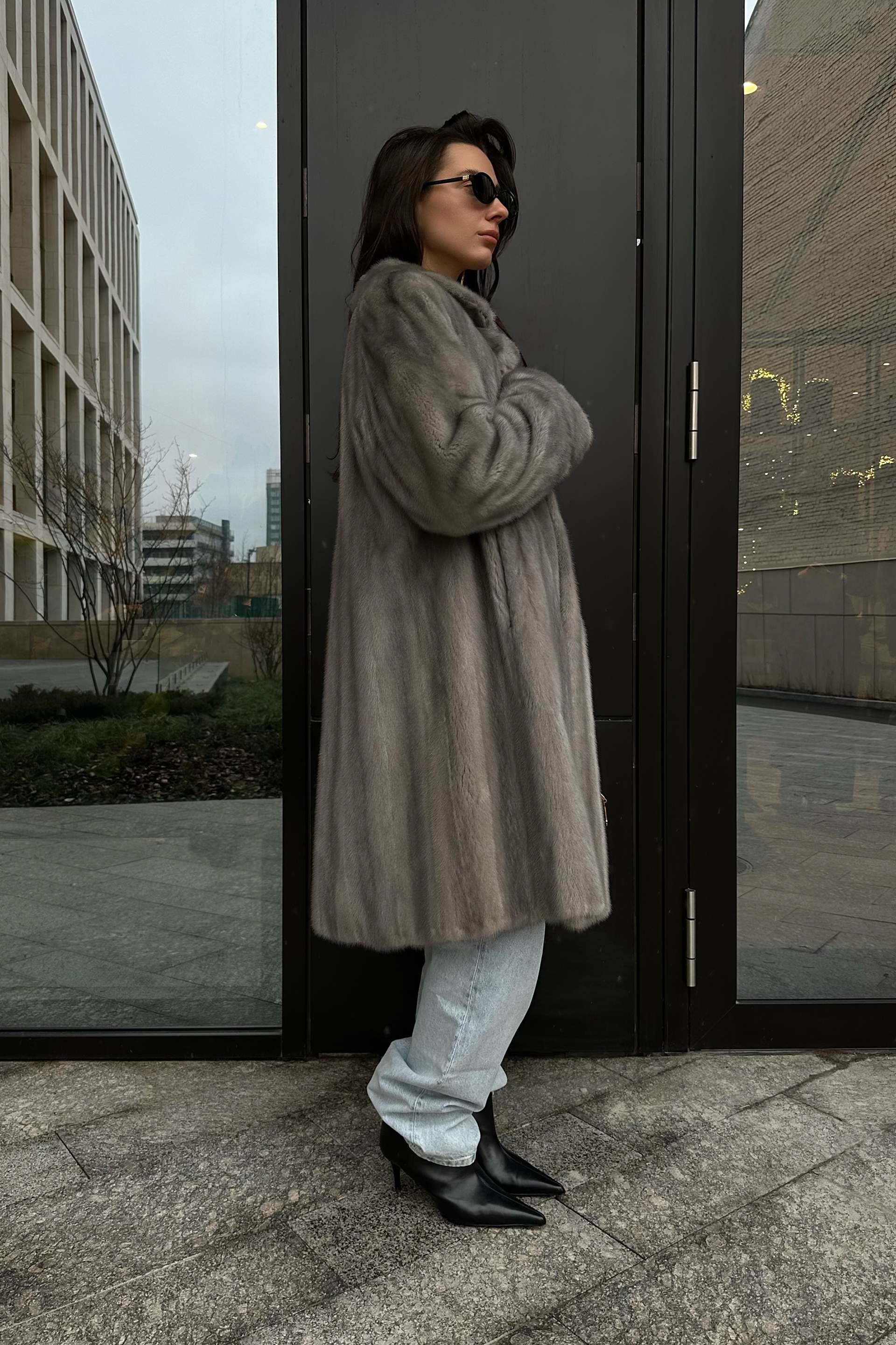 Вінтажна шуба з натурального хутра — класична розкіш у сучасному прочитанні. Поєднання витонченої довжини з англійським коміром підкреслює елегантність силуету, а натуральне хутро норки дарує тепло й неперевершену м’якість. Ця шуба — вибір для тих, хто цінує відчуття статусу та бездоганний стиль навіть у найхолодніші дні.
