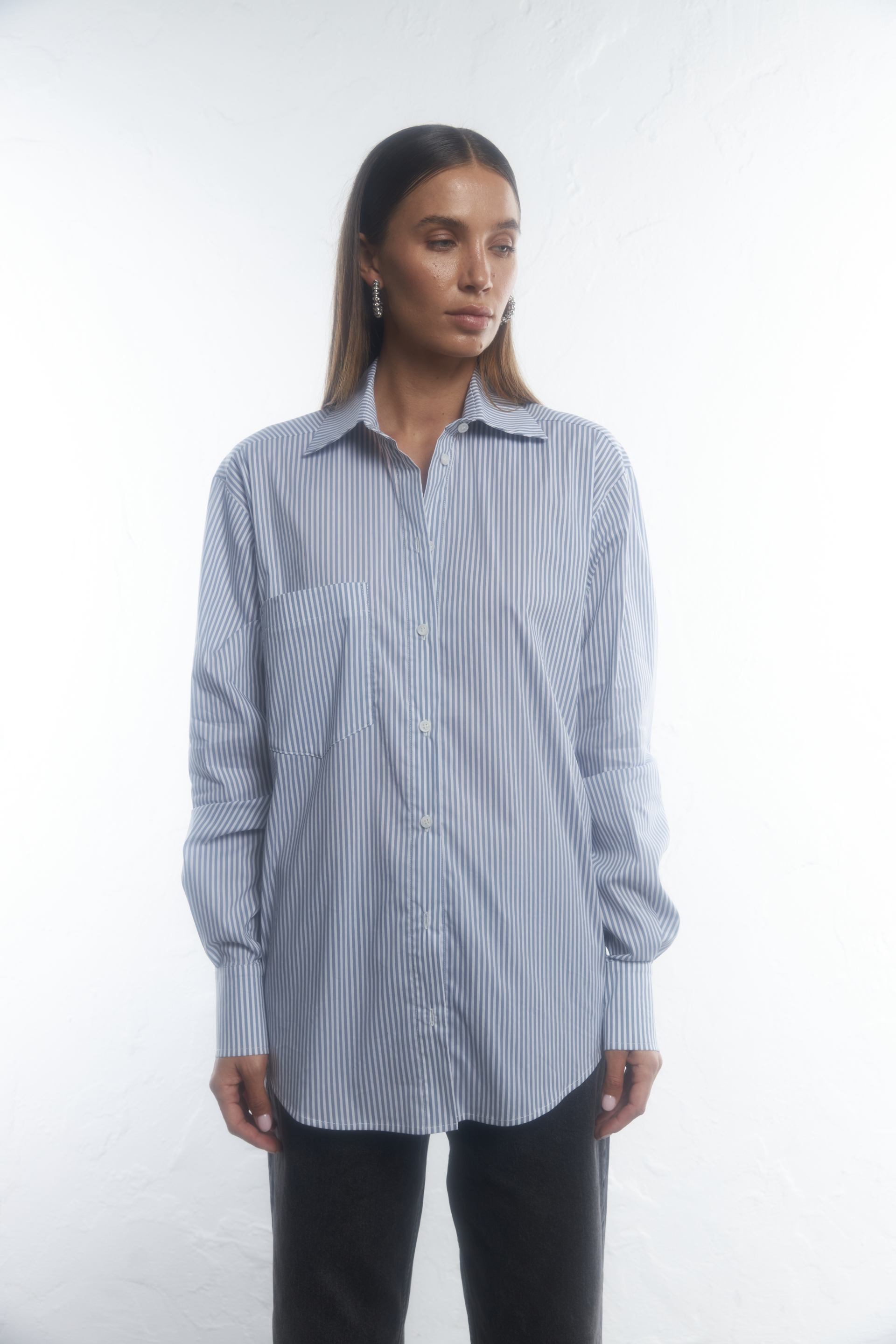 Сорочка оверсайз подовжена з кишенею. Виготовлена з котону, що забезпечує комфорт та дихаючі властивості. Ідеальний вибір для повсякденного носіння або стильних casual образів. Гармонійно поєднується з джинсами, брюками або спідницею, додаючи легкості та елегантності.