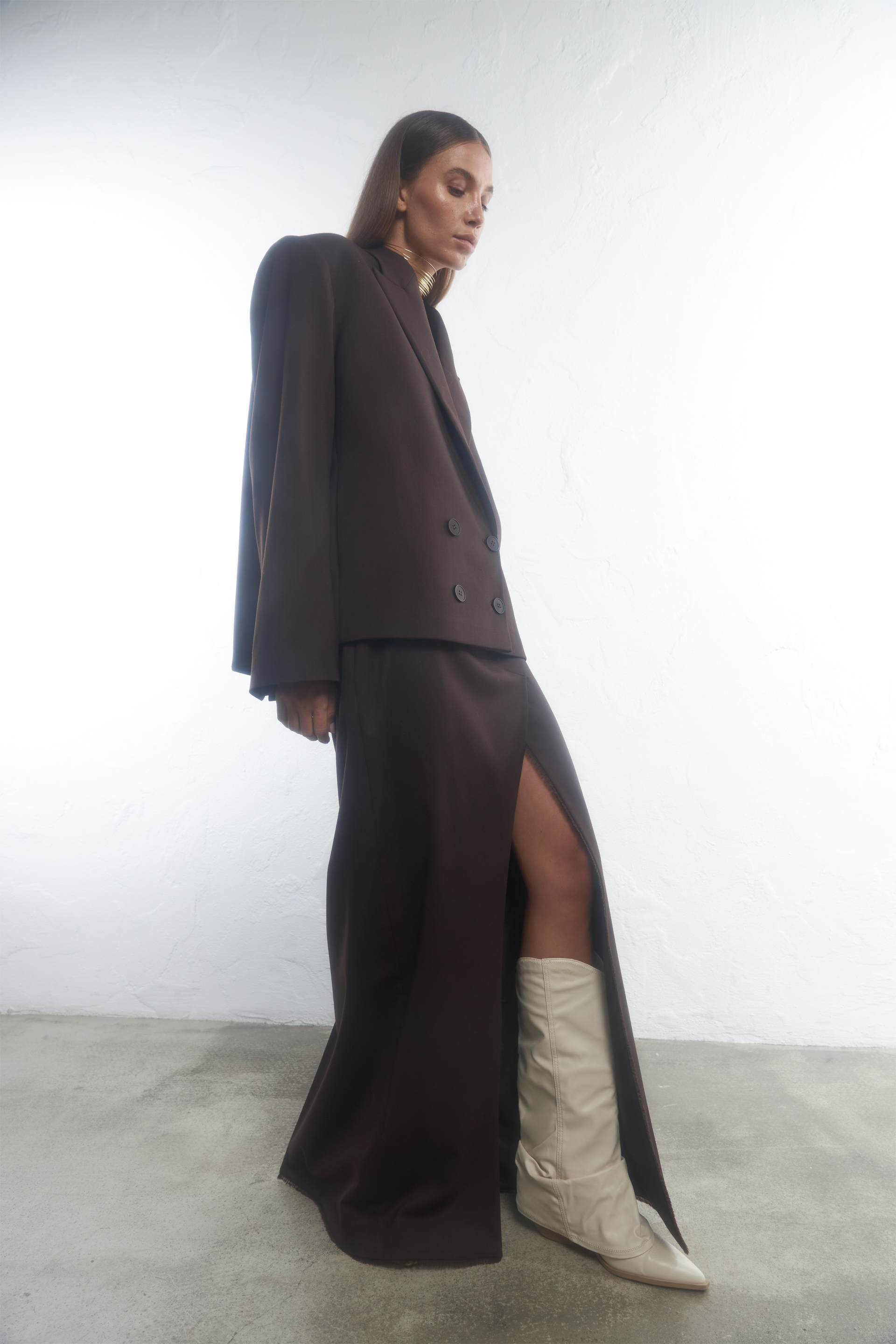 Модель на фото , одягнена у розмір: M/L, її параметри: Зріст 177 см, груди 86 см, талія 65 см, стегна 91 см.