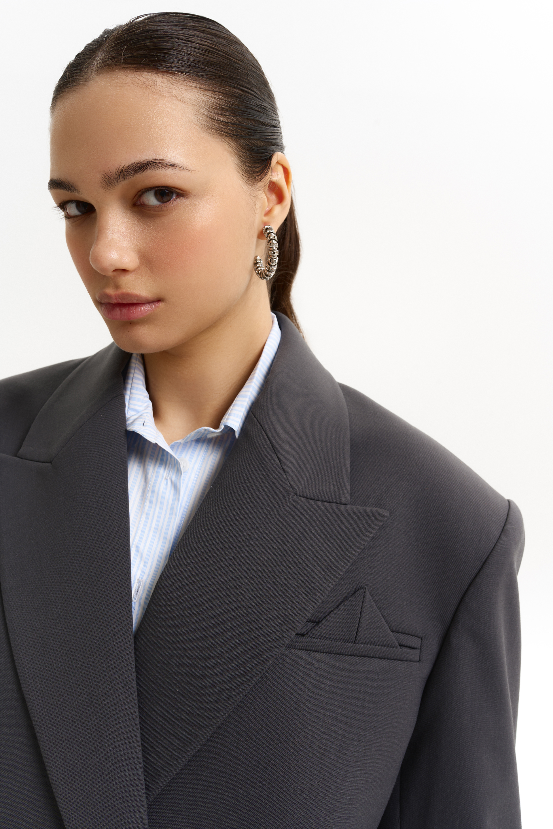 Жакет оверсайз з трикутним елементом. Виготовлений із virginwool, що забезпечує тепло і комфорт. Ідеальний вибір для створення стильних образів у холодну пору року. Гармонійно виглядає з брюками, спідницями або лонгслівами.