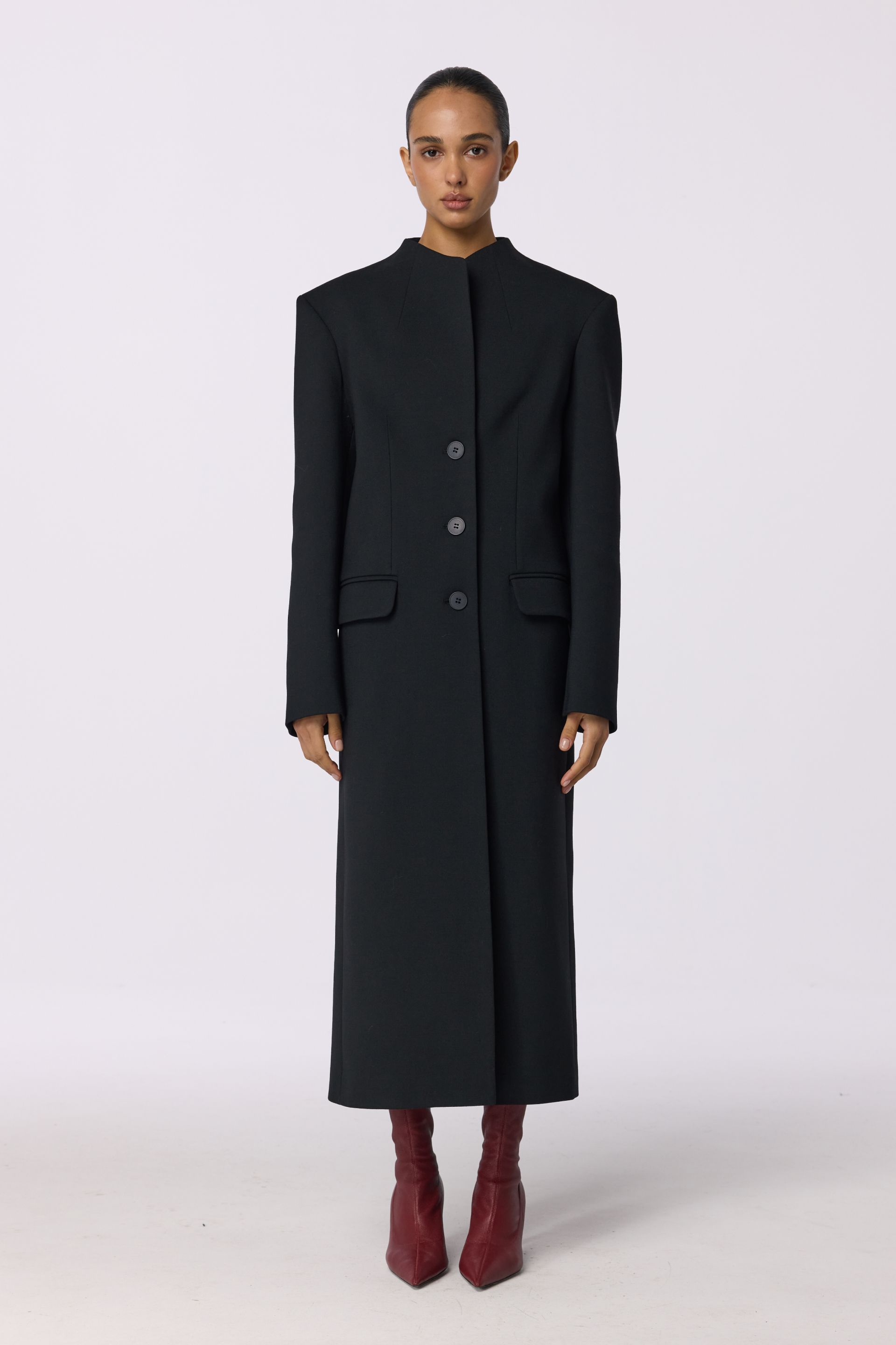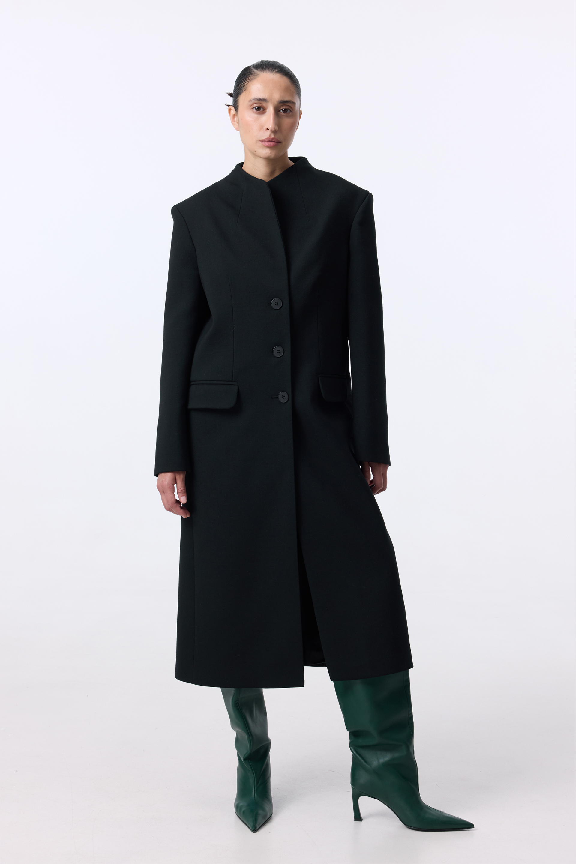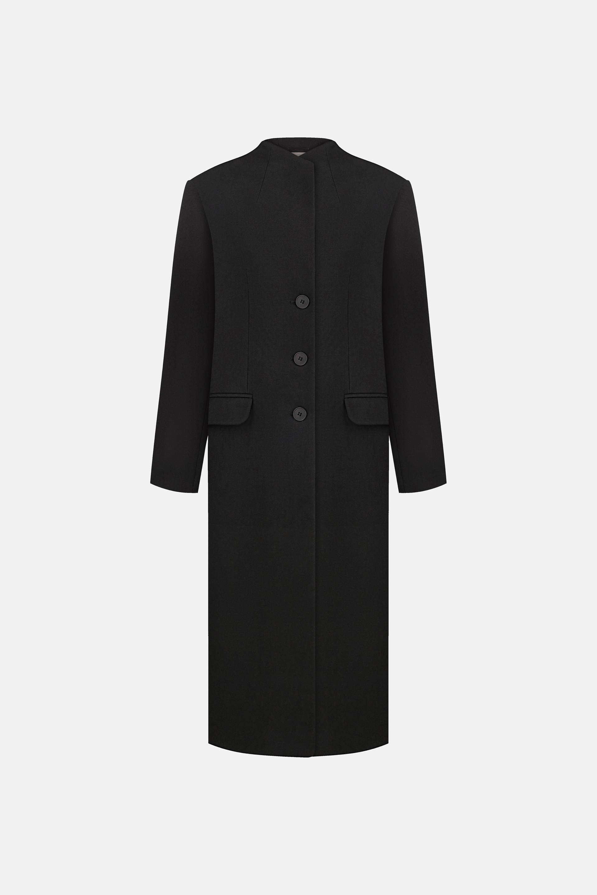 Пальто Structured — лаконічна модель із чіткою геометрією та мінімалістичним кроєм. Прямий силует без коміра підкреслює сучасний характер виробу, а класична довжина додає стриманої елегантності. Три гудзики та накладні клапани на кишенях акцентують увагу на деталях. Виготовлене з virginwool, воно поєднує тепло, комфорт і бездоганну посадку. Пальто розраховане на комфортне носіння в температурному діапазоні від 0 до +5°C.