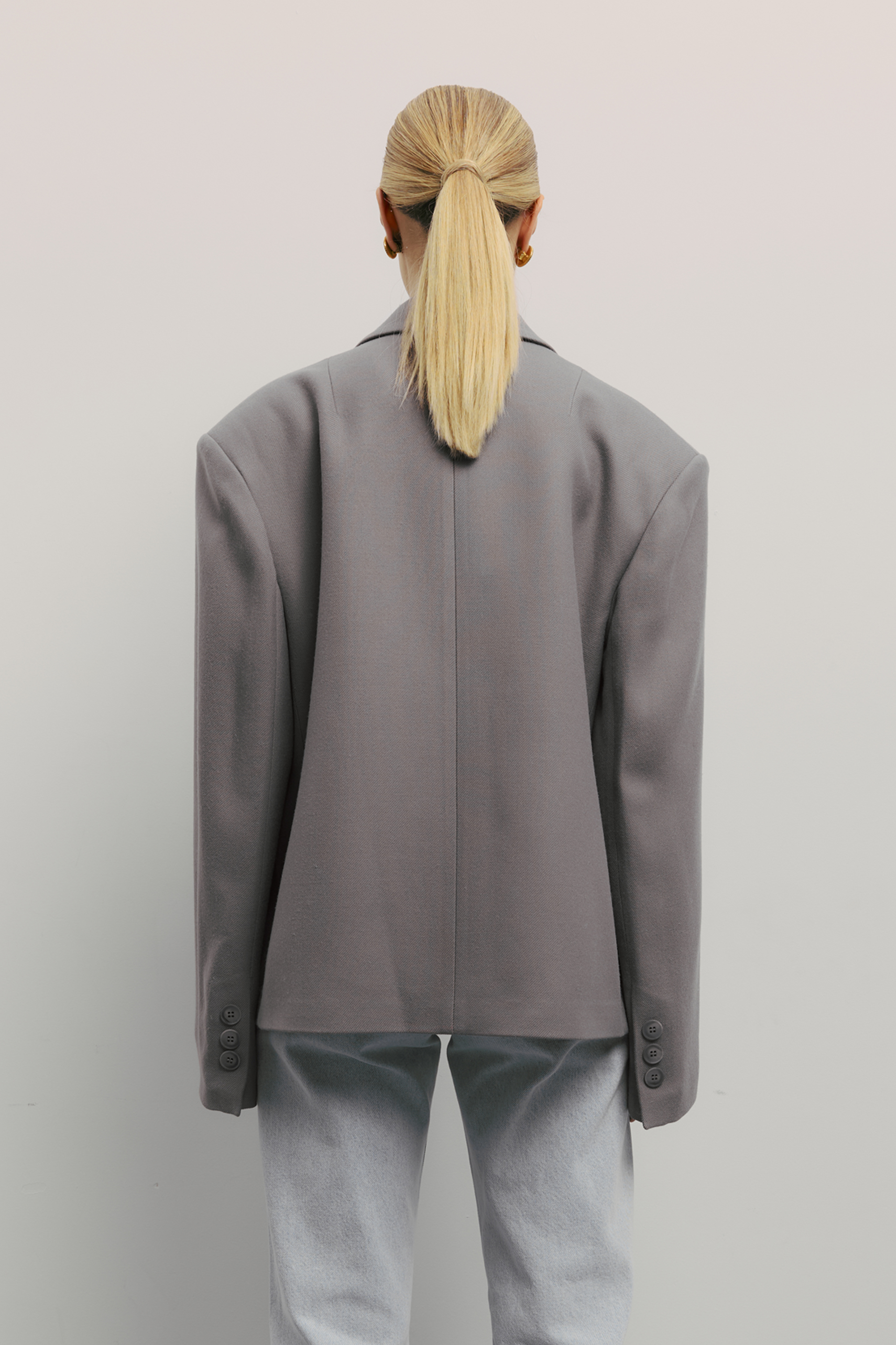 Пальто-жакет оверсайз з акцентом на плечах — сучасна інтерпретація класичної форми. Виготовлене з virginwool, воно дарує тепло, м’якість і стриману елегантність. Просторий силует із характерним трикутним вирізом створює архітектурну лінію плеча, додаючи образу виразності. Гармонійно поєднується з брюками, лонгслівом або спідницею — для лаконічного та стильного луку на холодну пору року.