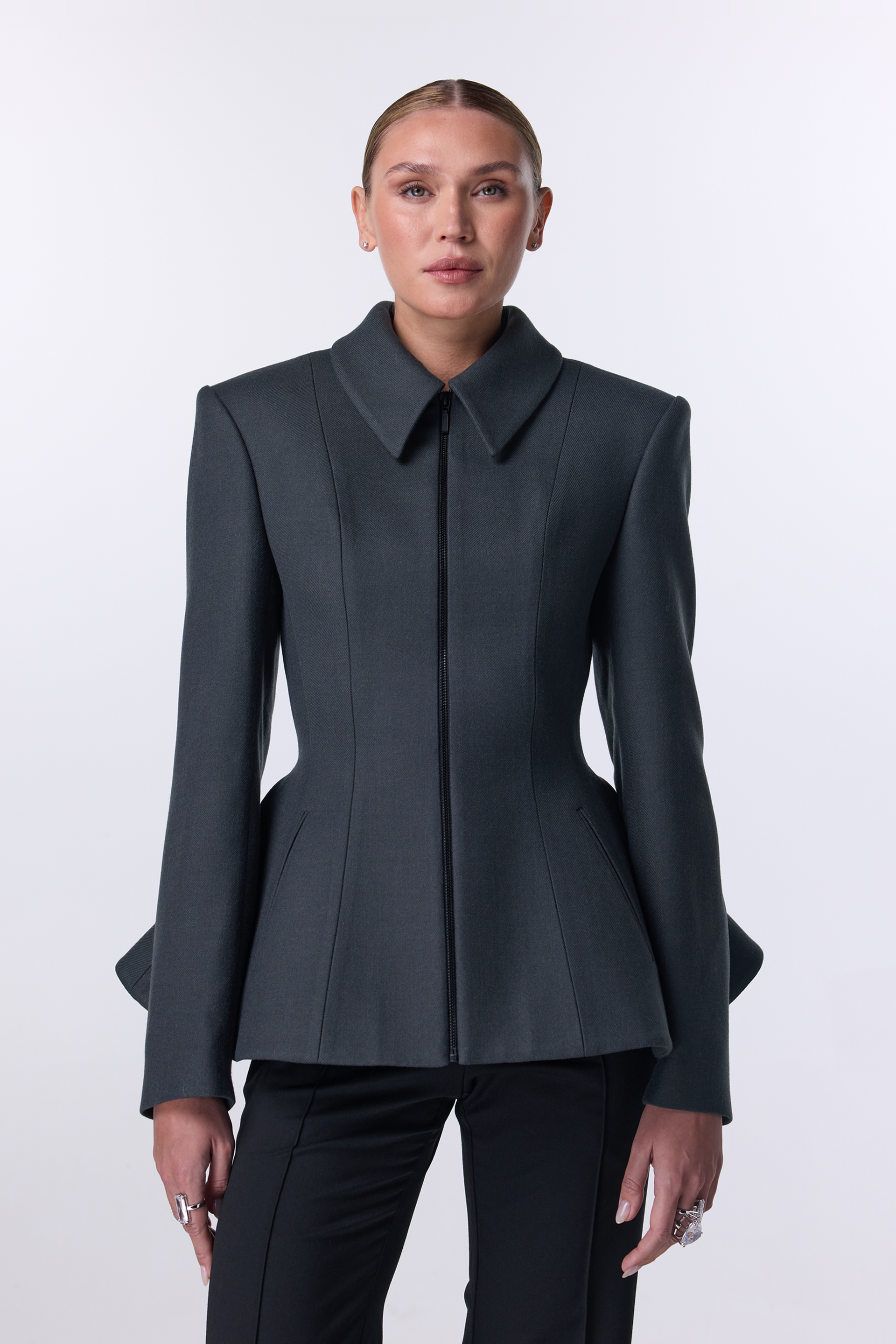 | Розмір | Об'єм грудей в застібнутому вигляді (см) | Об'єм талії в застібнутому вигляді (см) | Довжина рукава (см) | Довжина виробу по середньому шву спинки (см) |