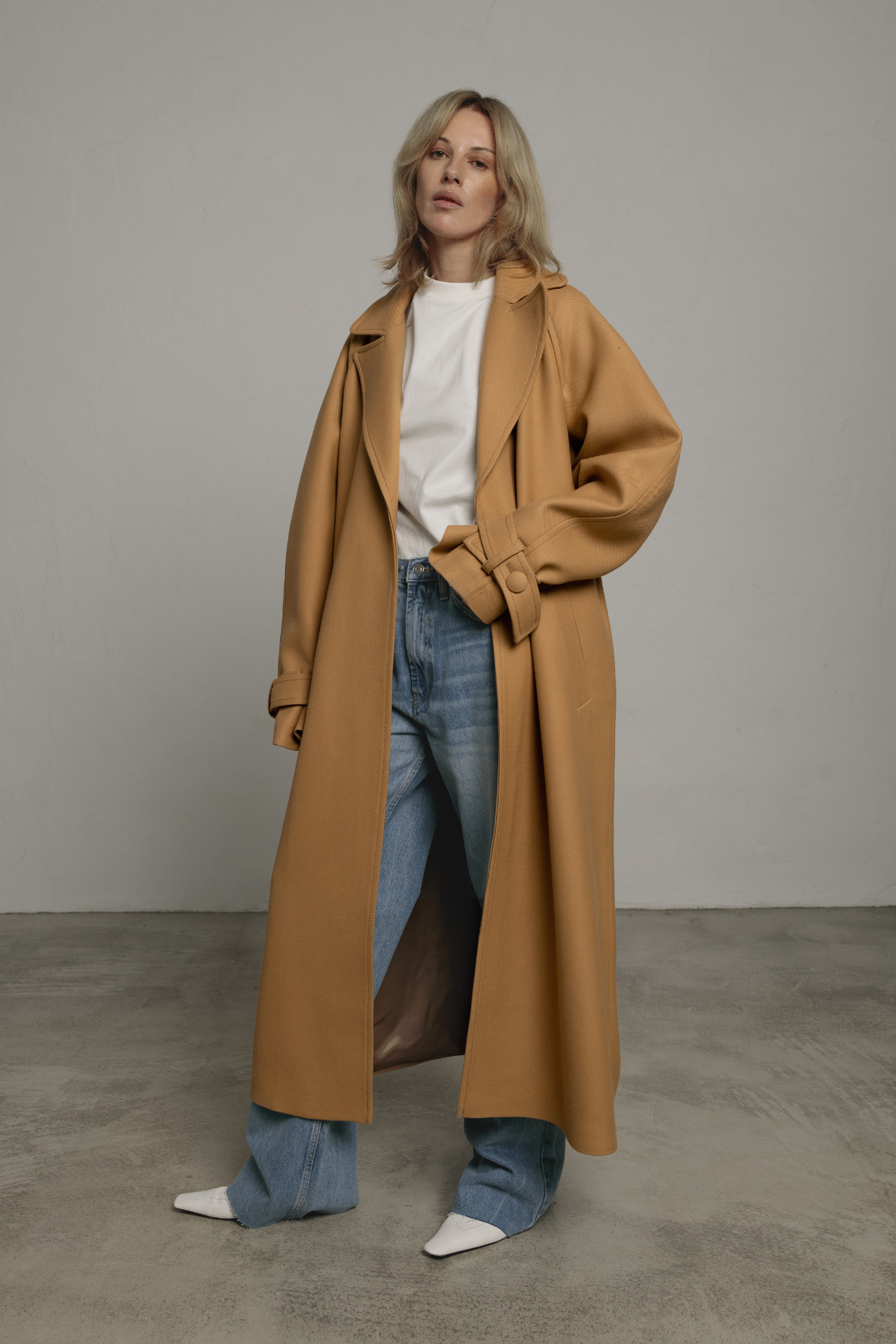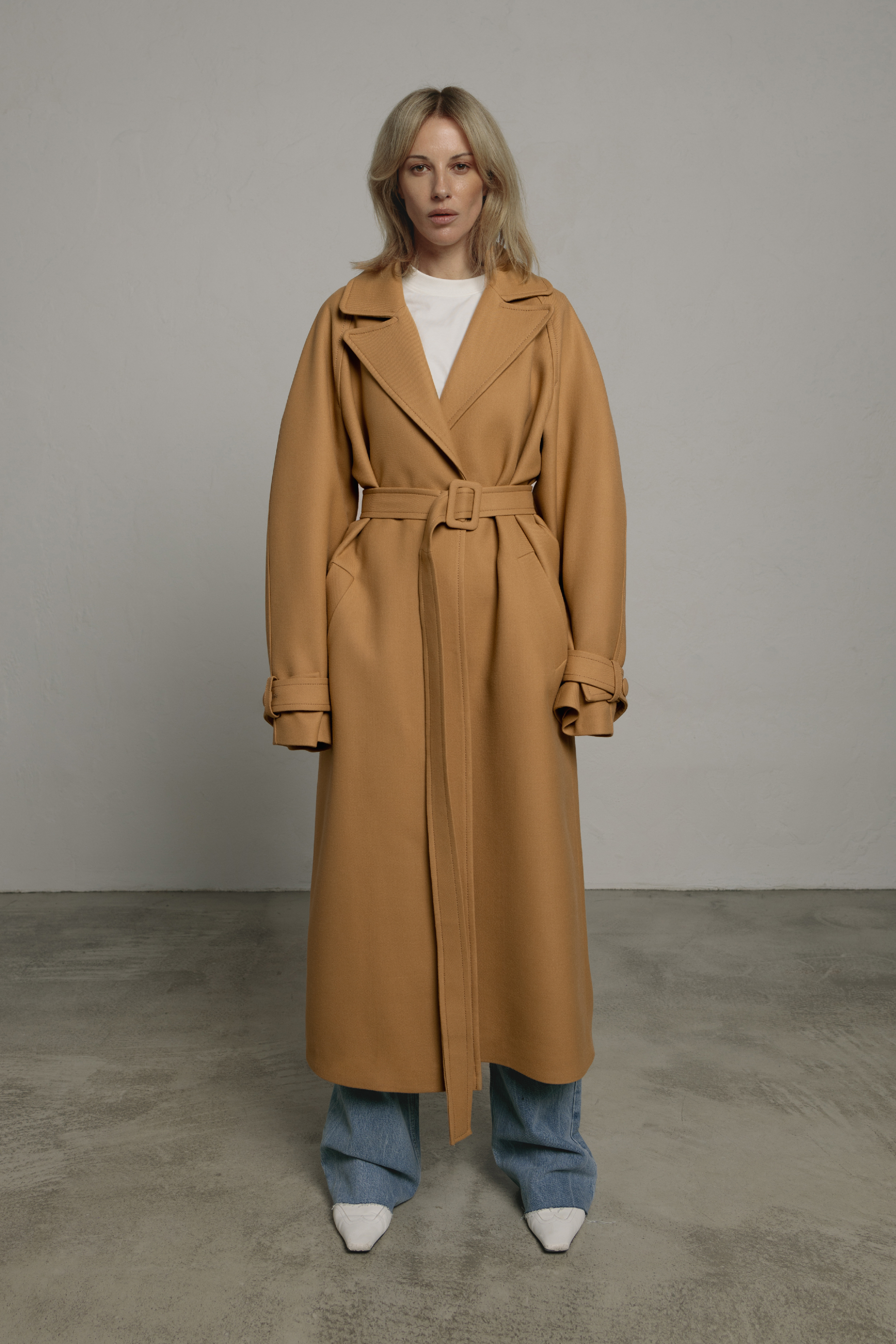Пальто максі зі спущеним рукавом і поясом з пряжкою. Виготовлене з вовни, що забезпечує тепло та комфорт у прохолодну пору року. Лаконічний фасон із поясом акцентує талію, додаючи витонченості силуету. Ідеальний вибір для класичних і стильних образів. Гармонійно доповнюється шарфами, рукавицями чи витонченими аксесуарами.
