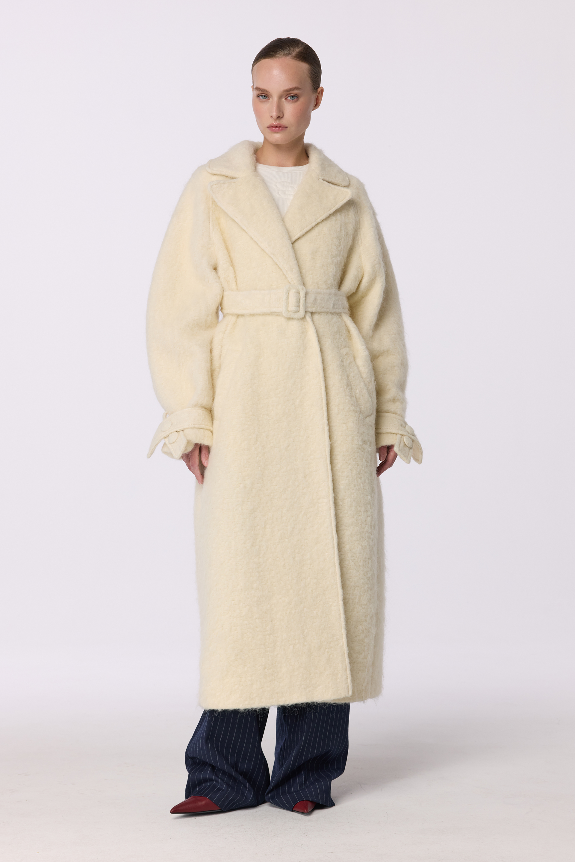 Пальто максі зі спущеним рукавом і поясом з пряжкою — вишуканий образ, що поєднує елегантність і функціональність. Виготовлене з міксу virginwool, мохеру та альпаки, воно дарує тепло, комфорт і приємну текстуру. Витончений крій підкреслює силует і додає виразності кожному образу, створюючи витончений акцент навіть у буденному образі. Ідеальний вибір для прохолодних днів чи особливих подій — чудово доповнюється шарфами, рукавицями або класичними аксесуарами. Пальто розраховане на комфортне носіння до -10°C.