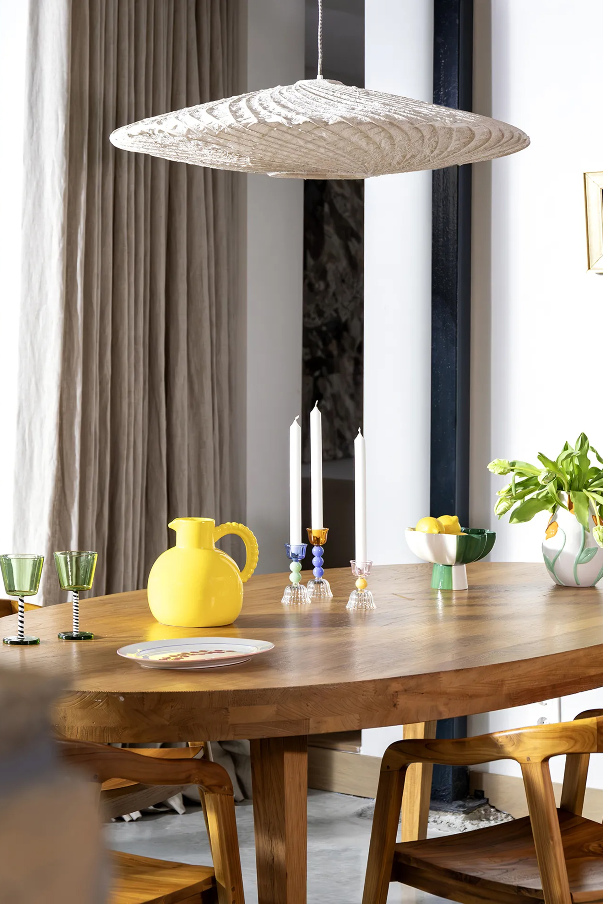 Підсвічник Candle holder perle від &Klevering Amsterdam — це елегантний і стильний аксесуар, виготовлений з високоякісного скла. Його перлинна текстура додає розкішний вигляд будь-якому інтер'єру, а м'яке світло свічки, що відбивається в склі, створює атмосферу затишку та тепла. Ідеальний для тих, хто цінує сучасний дизайн з акцентом на елегантність і функціональність.