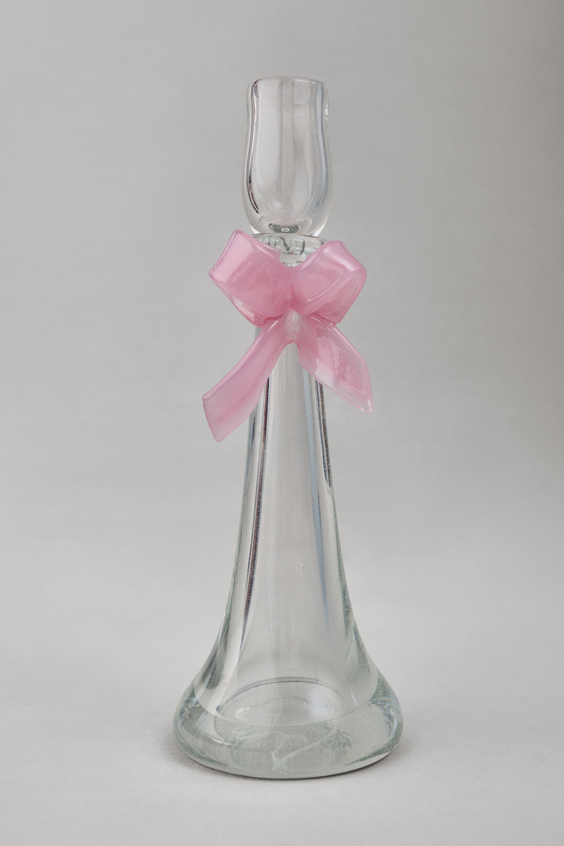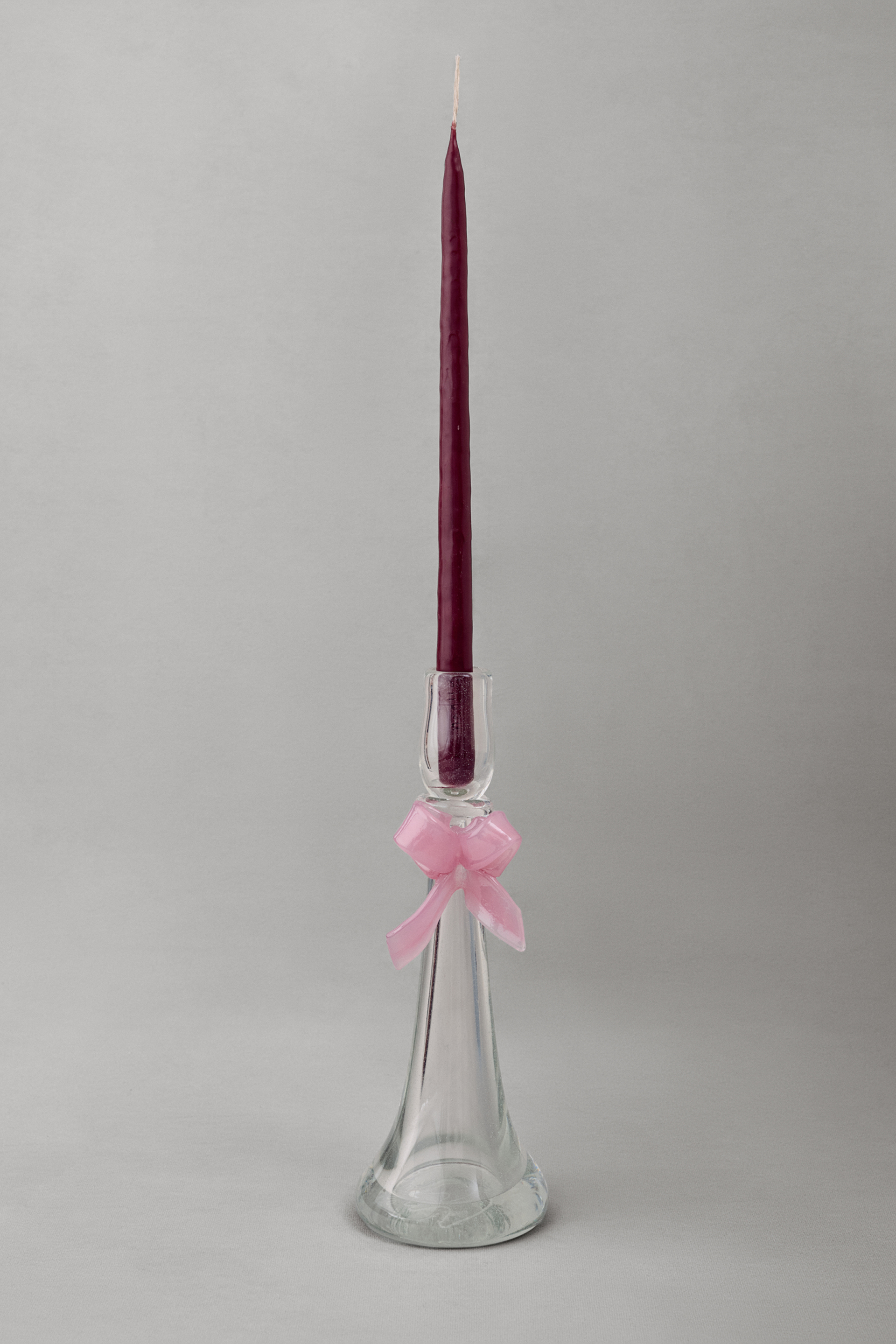 Підсвічник Nadiia у прозорому склі з ніжним рожевим бантом створює вишукану й святкову атмосферу, нагадуючи розкішні вечори епохи Марії-Антуанетти. Виготовлений вручну львівськими майстрами, він є унікальним елементом декору для вашого дому чи святкового столу. Рекомендується ручне миття та уникнення різких перепадів температур для збереження довговічності виробу.