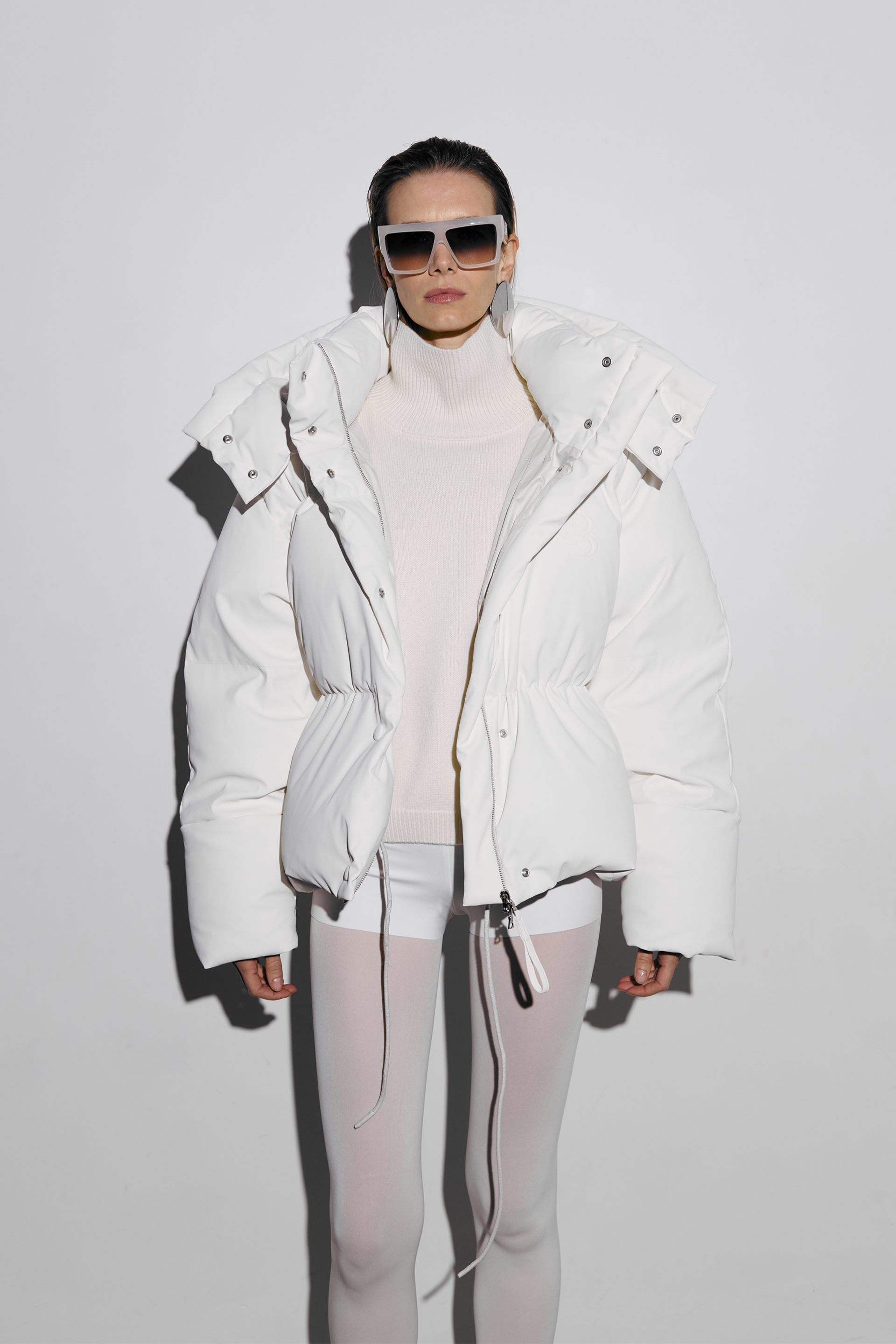 Модель на фото , одягнена у розмір: M/L, її параметри: Зріст 181 см, груди 83 см, талія 62 см, стегна 93 см.