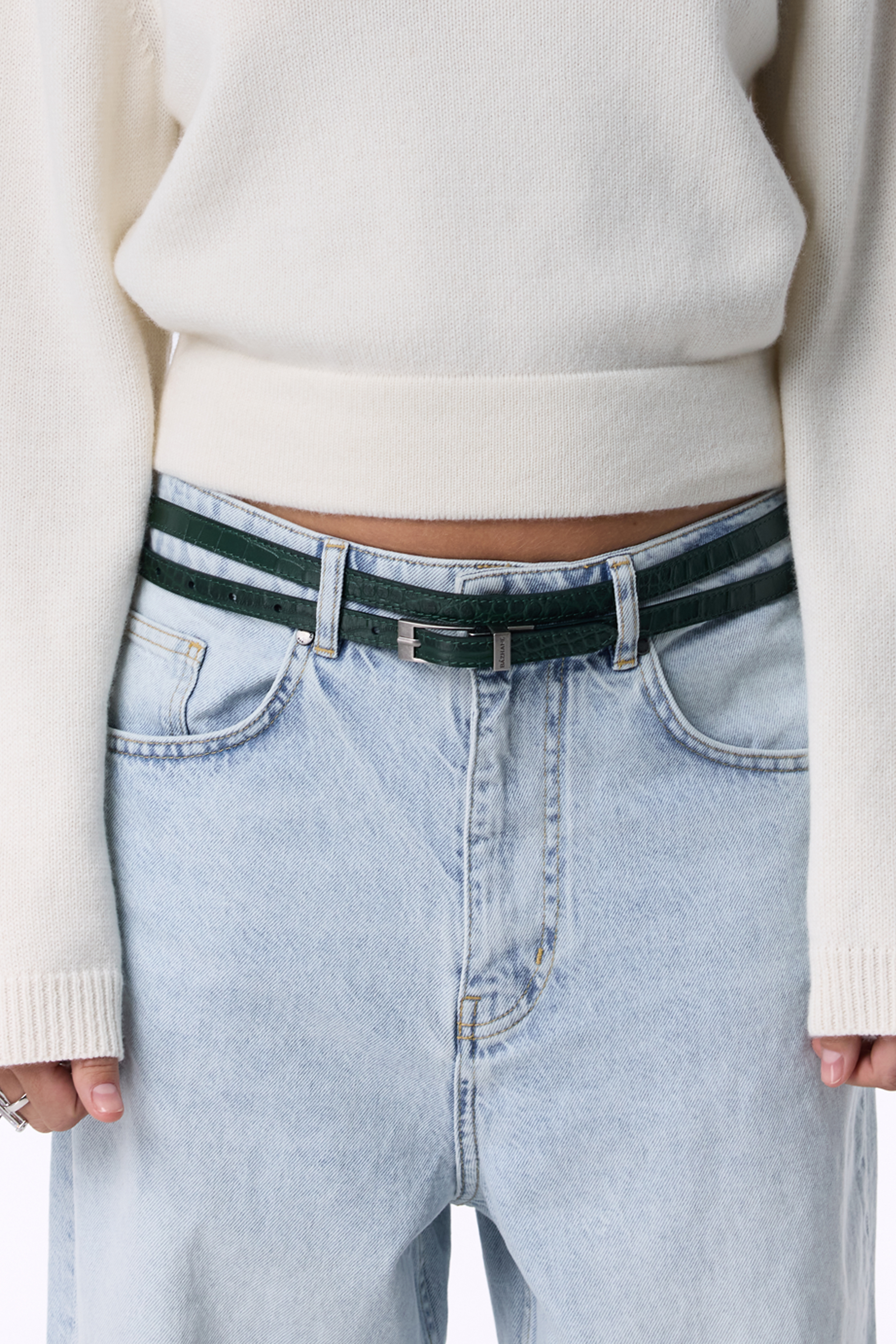 Подвійний ремінь із натуральної шкіри з тисненням під крокодила — вишуканий акцент, який додає образу завершеності та характеру. Глибока фактура шкіри поєднується з холодним блиском нікелевої пряжки, створюючи сучасне прочитання класики. Завдяки подвійній конструкції ремінь виглядає стильно та нетривіально, підкреслюючи індивідуальність свого власника. Це аксесуар, який легко інтегрується як у повсякденні, так і в преміальні образи.