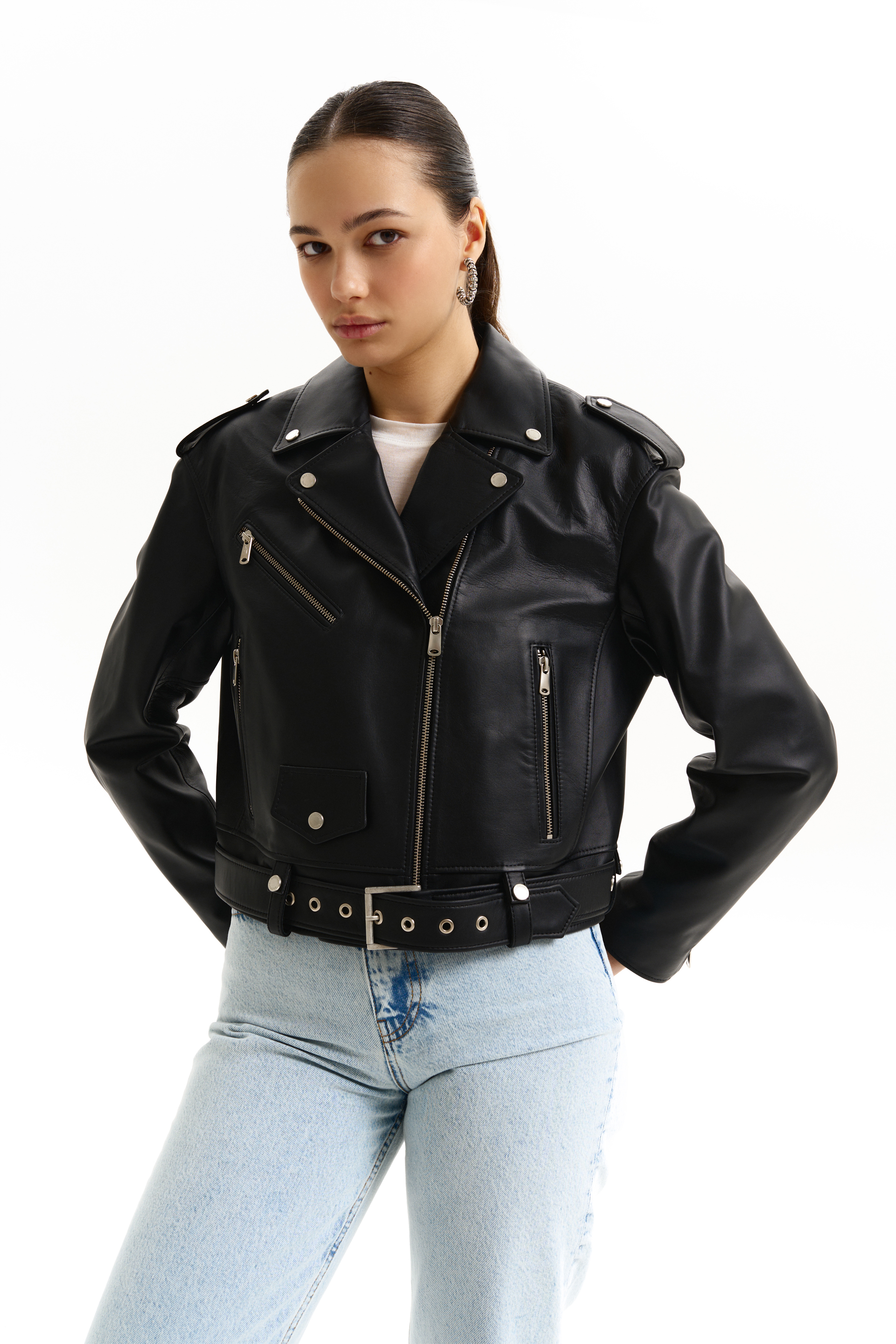 Модель на фото , одягнена у розмір: M, її параметри: Зріст 175 см, груди 88 см, талія 63 см, стегна 93 см.