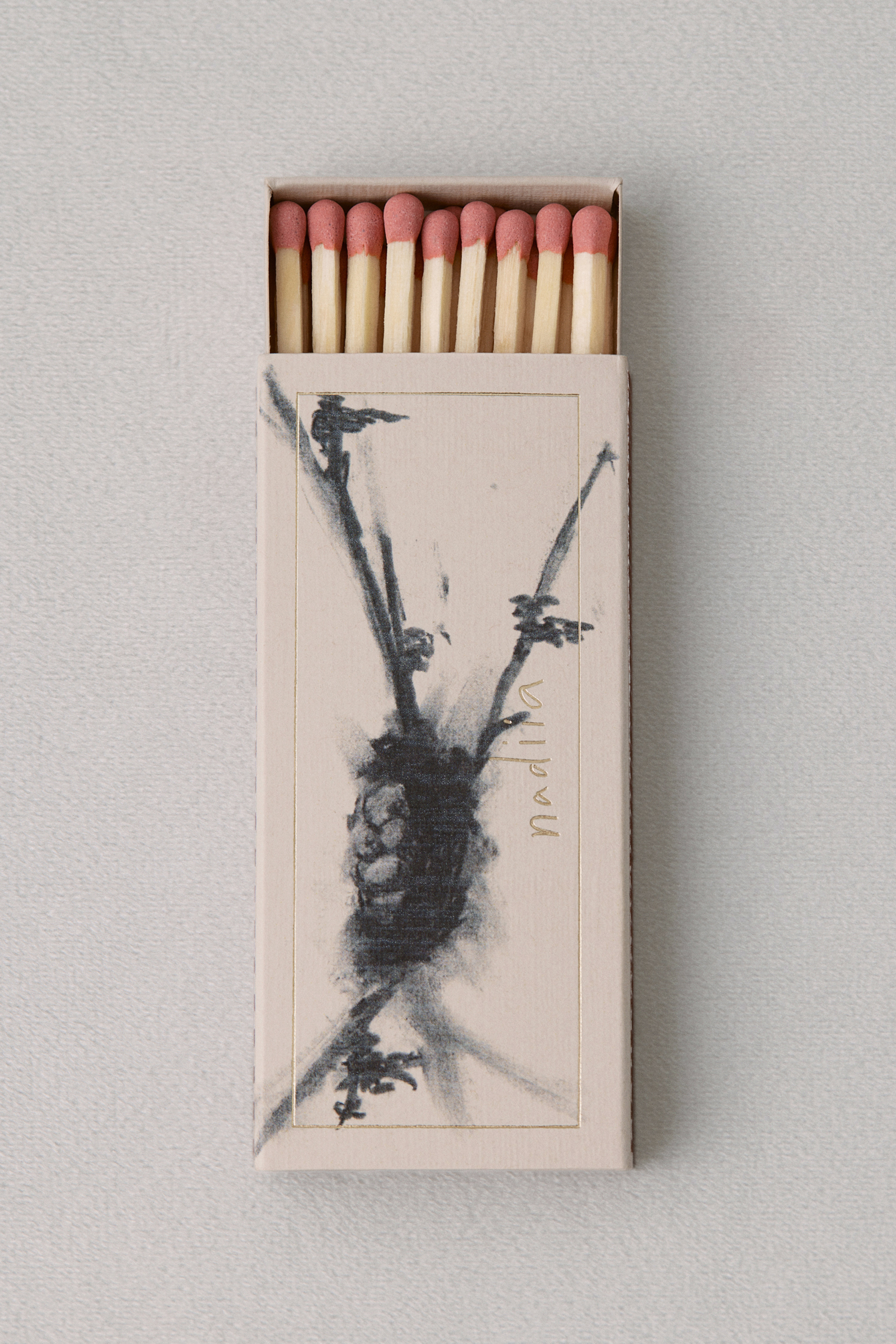 Сірники №1 від Nadiia — це поєднання функціональності та мистецького підходу. На коробці зображено монохромний малюнок художника Максима Сона, що надає виробу особливого характеру та робить його більше, ніж просто побутовою річчю. Усередині 20 сірників із натурального дерева, які стануть практичним і водночас естетичним аксесуаром у домі. Кожен набір виготовляється індивідуально, тому можливі легкі відмінності, які підкреслюють його унікальність.