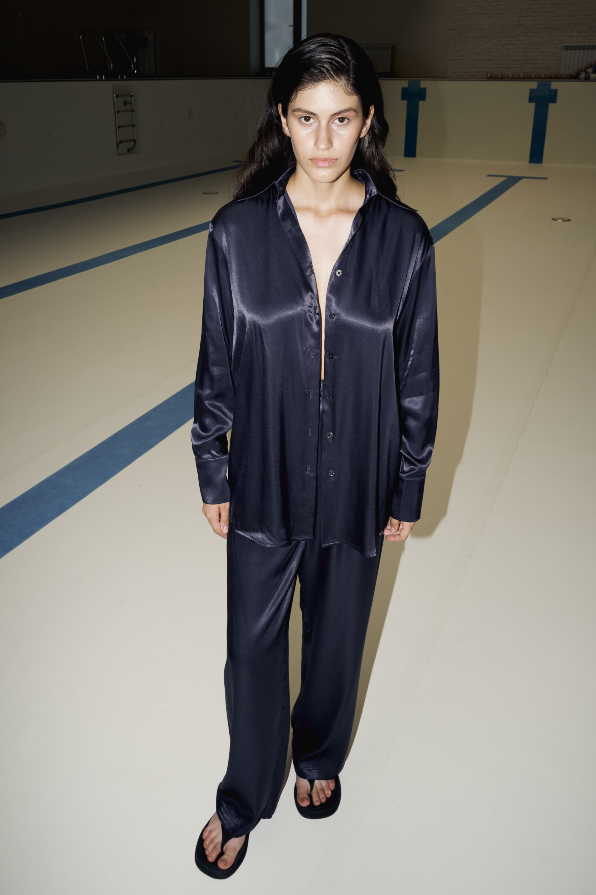 Вишукана сорочка оверсайз із гладкої атласної тканини, що надає легкого блиску. Виготовлена з віскози з додаванням еластану, вона приємна до тіла та забезпечує комфорт у носінні. Чудовий варіант для створення елегантного образу на вечір чи стильного ділового луку. Гармонійно поєднується з класичними брюками чи спідницею.