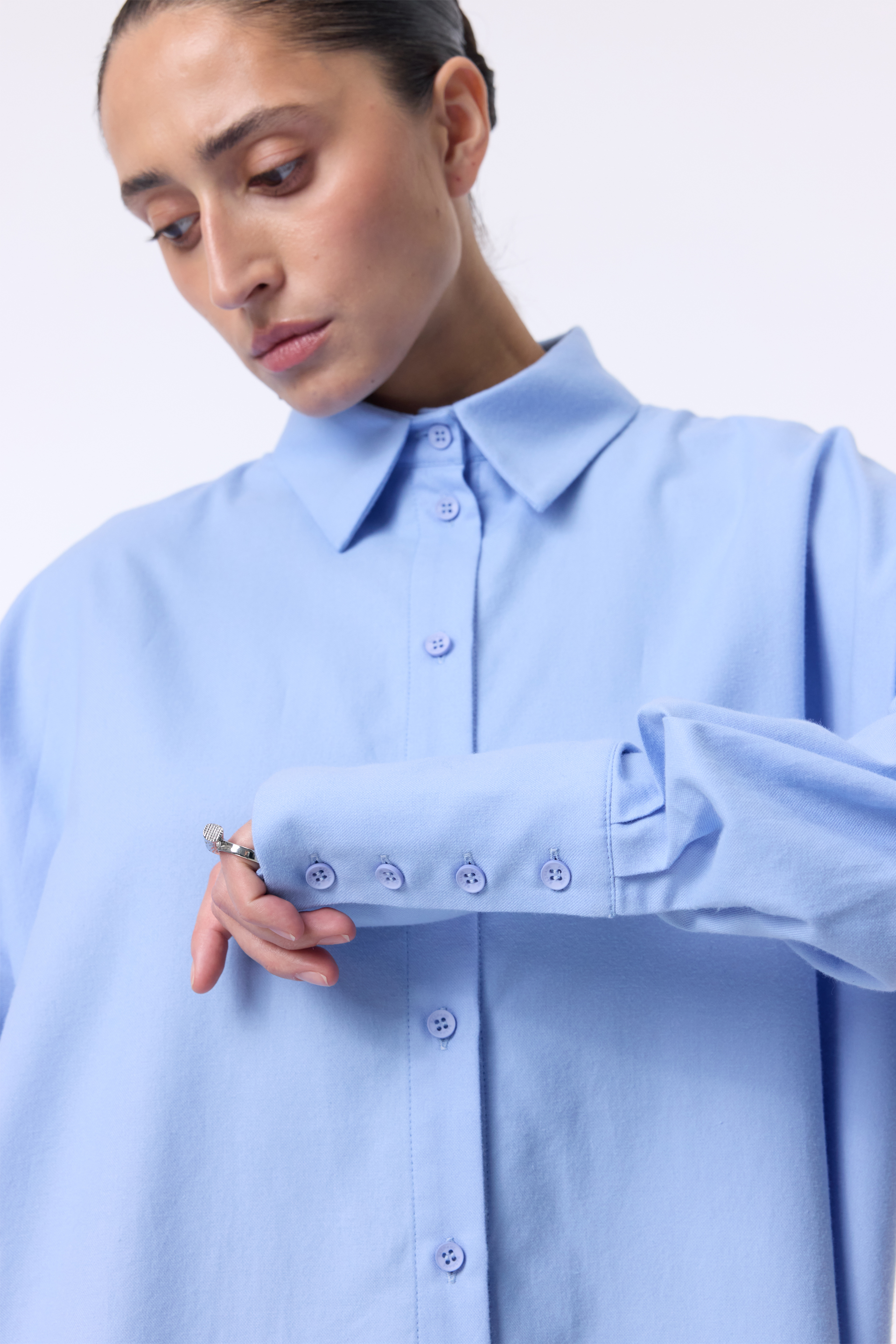 Сорочка Loose - втілення комфорту та стилю. Завдяки вільному крою вона чудово сідає на фігуру, створюючи невимушений силует, що підходить для різних типів фігур. Виготовлена з бавовни, що забезпечує приємні тактильні відчуття, дозволяє шкірі дихати та ідеально підходить для будь-якої пори року. Легко поєднується з брюками, джинсами чи спідницями, додаючи вашому гардеробу елегантності та стриманої розкоші.