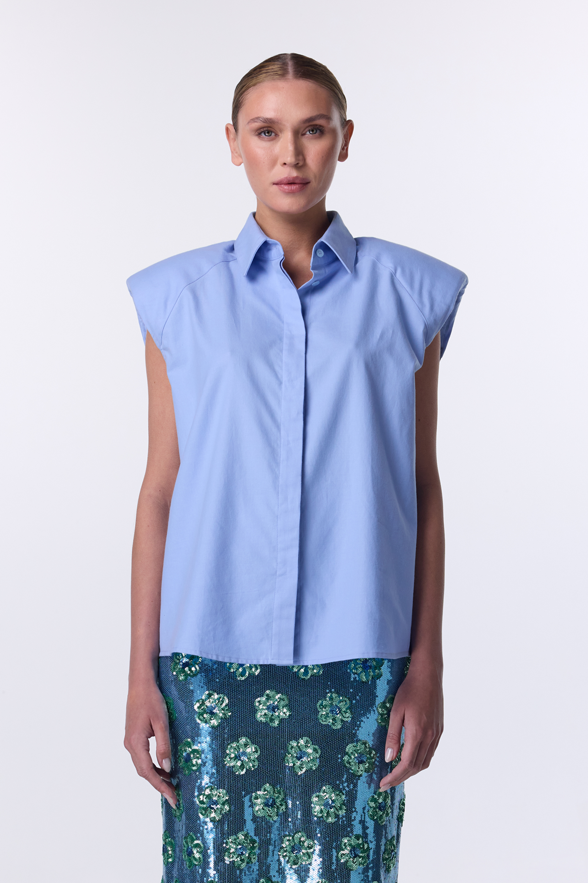 Сорочка Steady — чітка, зібрана форма з акцентом на плечі, що надає силуету впевненості без жорсткості. Виконана зі щільної бавовни, вона добре тримає лінію та водночас залишається комфортною у носінні. Сорочка легко балансує між стриманістю та жіночністю, працюючи як опора для складніших стилізацій.