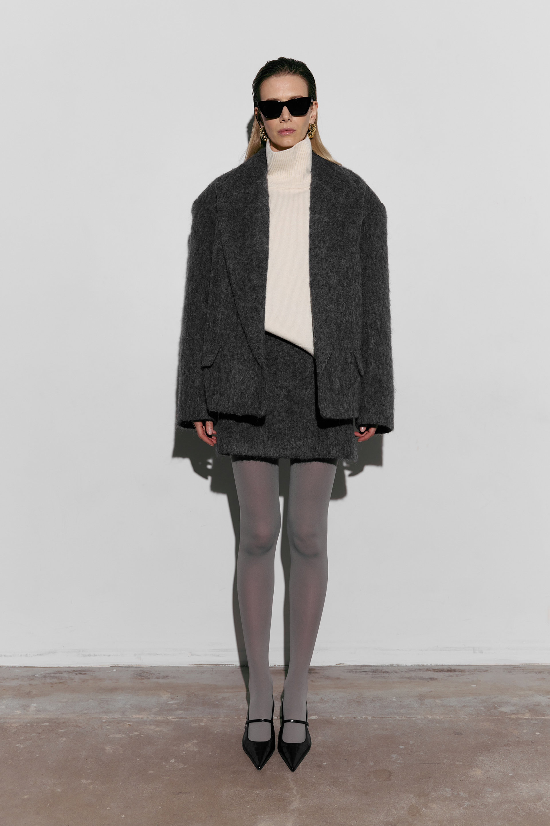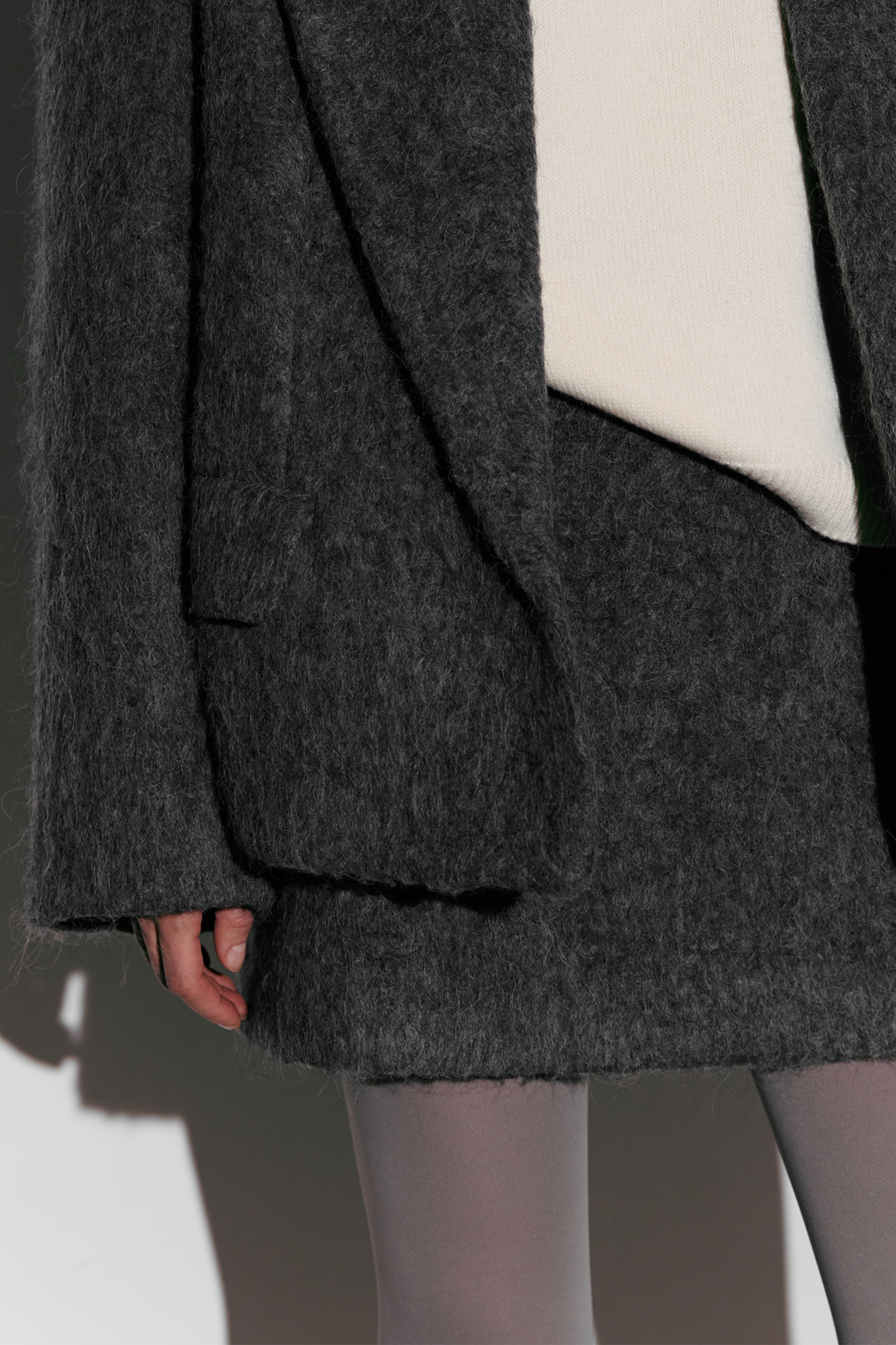 Спідниця Fuzzy Alpaca — модель з м’якою текстурою та лаконічним кроєм, виконана з міксу virginwool, мохеру та альпаки. Матеріал дарує тепло й комфорт у прохолодну пору року. Спідниця додає образу стриманої елегантності та легко поєднується з жакетами, лонгслівами або вишуканими аксесуарами.
