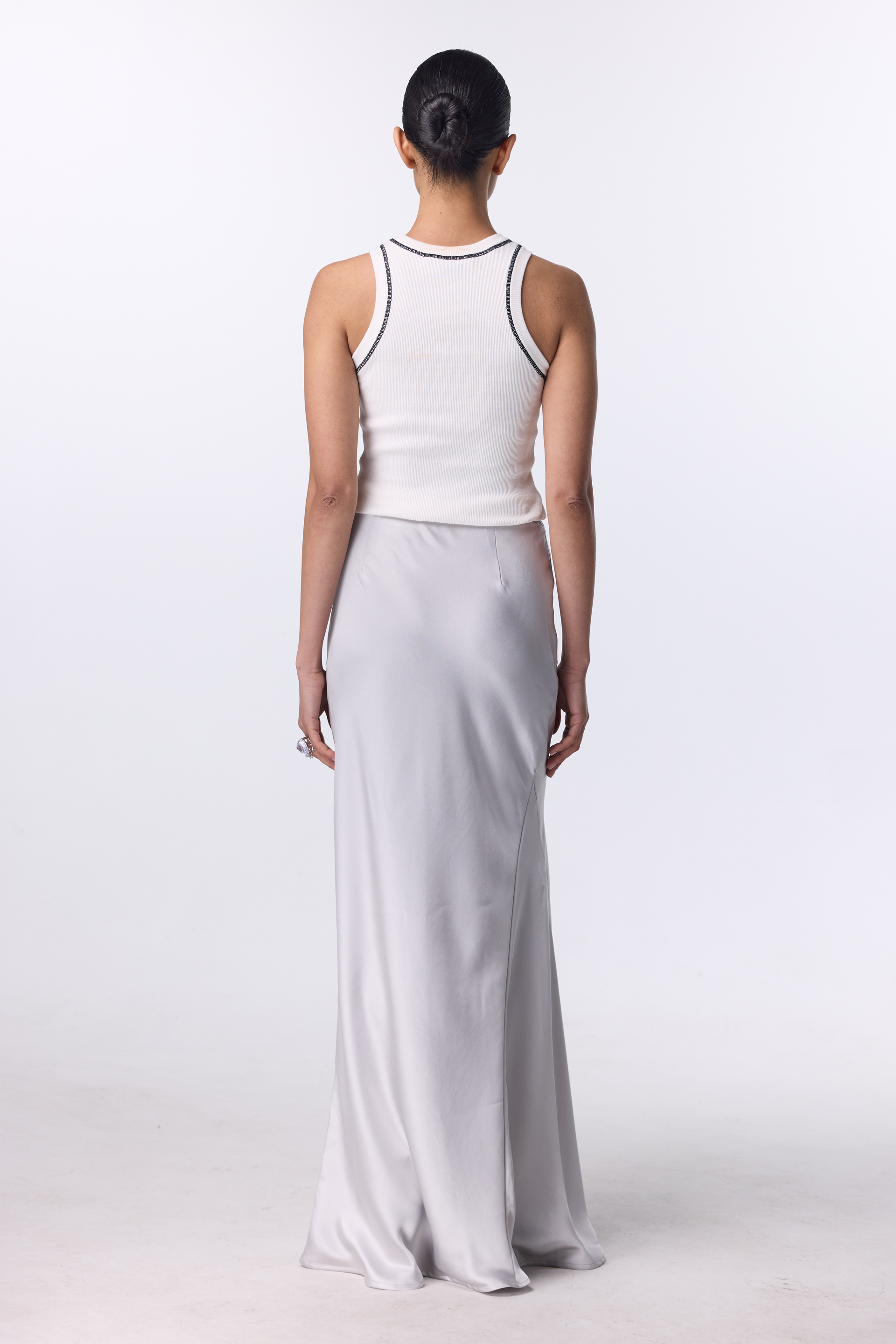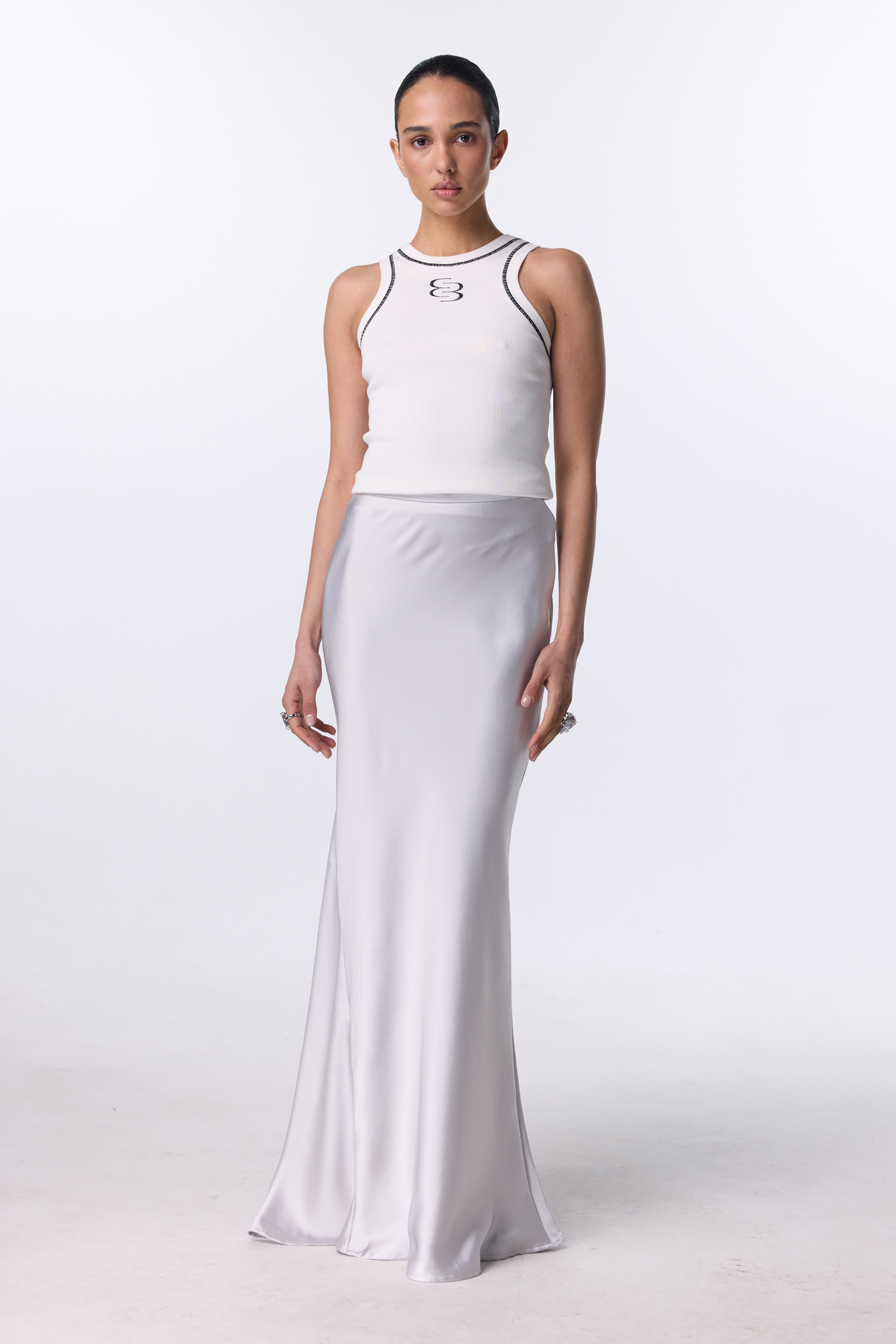 Атласна спідниця максі — про тишу розкоші й м’яку жіночність. Легкий мікс віскози та шовку струменить по тілу, створюючи плавний, спокусливий рух із кожним кроком. Лаконічний крій підкреслює силует і дозволяє тканині бути головним акцентом. Ідеальна для вечорів, коли хочеться сяяти — у парі з топом, жакетом чи мінімалістичними прикрасами.