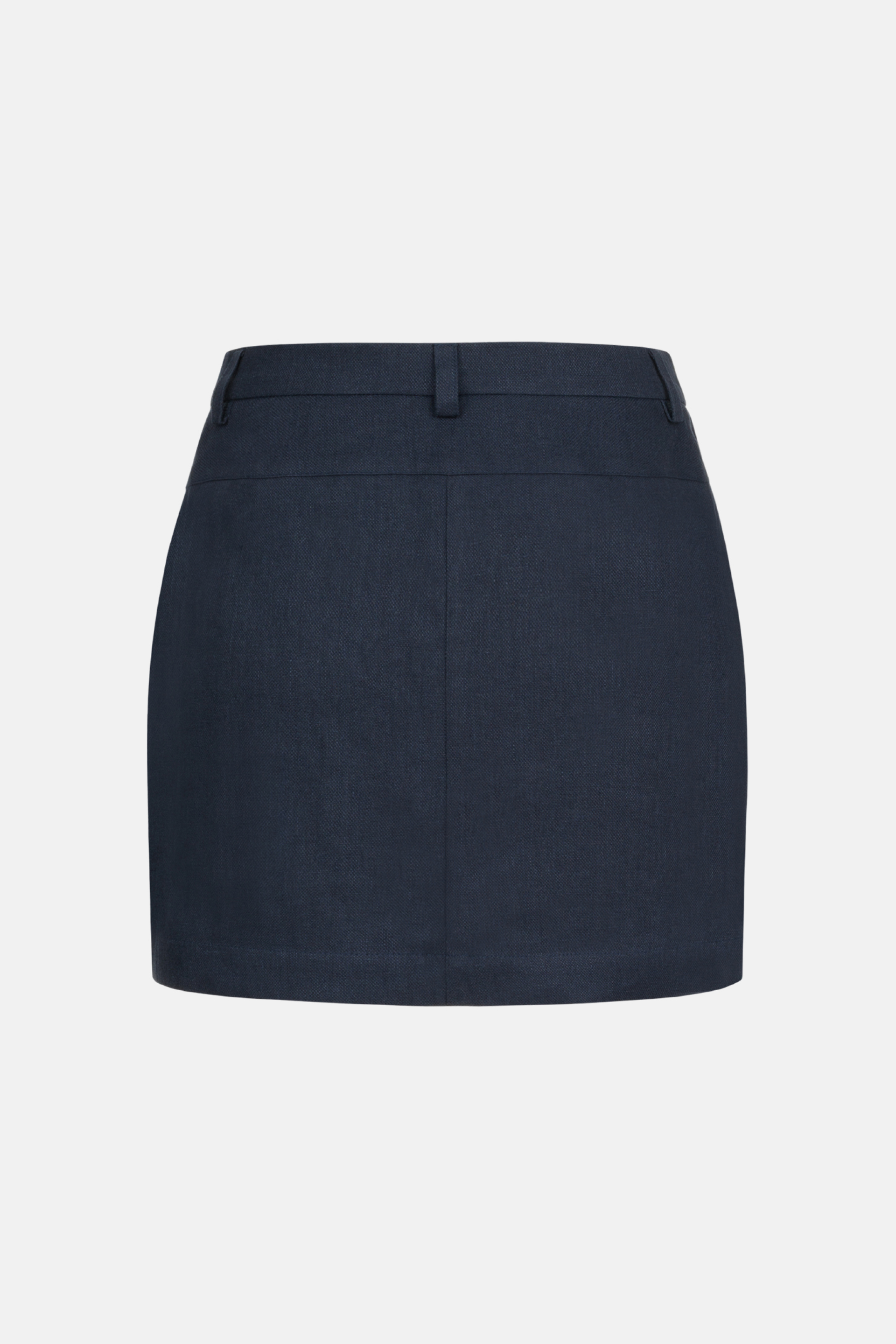 Спідниця міні з середньою посадкою, що м’яко окреслює лінію талії та підкреслює витонченість силуету. Натуральний льон дарує відчуття легкості на шкірі та створює живу, дихаючу текстуру. Ця модель звучить як тиха спокуса — стримана, але чуттєва, ідеальна для теплих днів та вечорів, коли хочеться відчувати себе впевнено й жіночно.