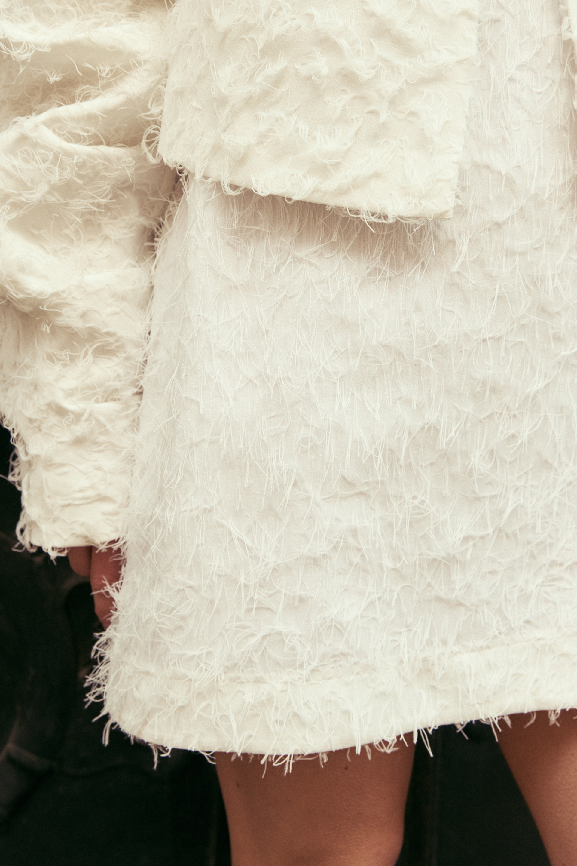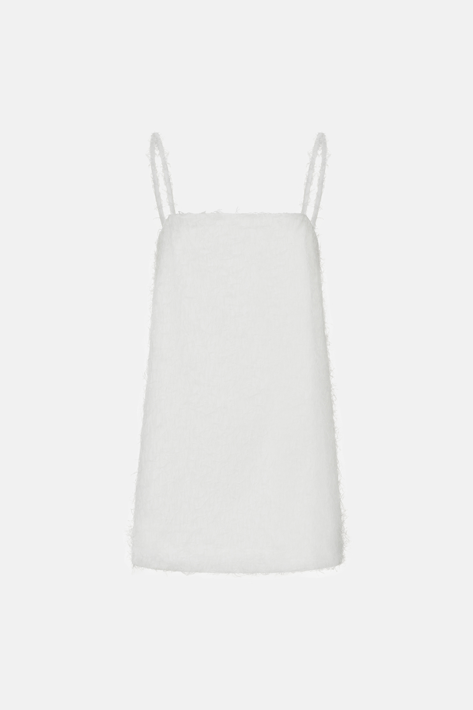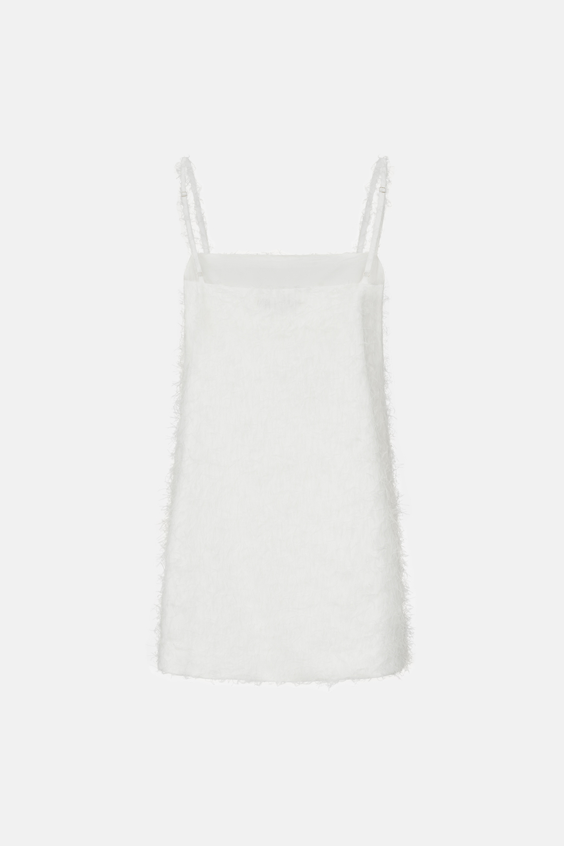 Сукня-міні з пухнастою фактурою на тонких бретелях — ефектна модель, що притягує погляди. Виготовлена з міксу віскози, бавовни та поліестеру, вона поєднує м’якість, легкість і комфорт у носінні. Текстурна поверхня додає образу святкового настрою, а лаконічний крій підкреслює силует. Ідеальний вибір для вечірніх виходів і літніх подій, що гармонійно поєднується з витонченими аксесуарами або легким жакетом для завершеного образу.