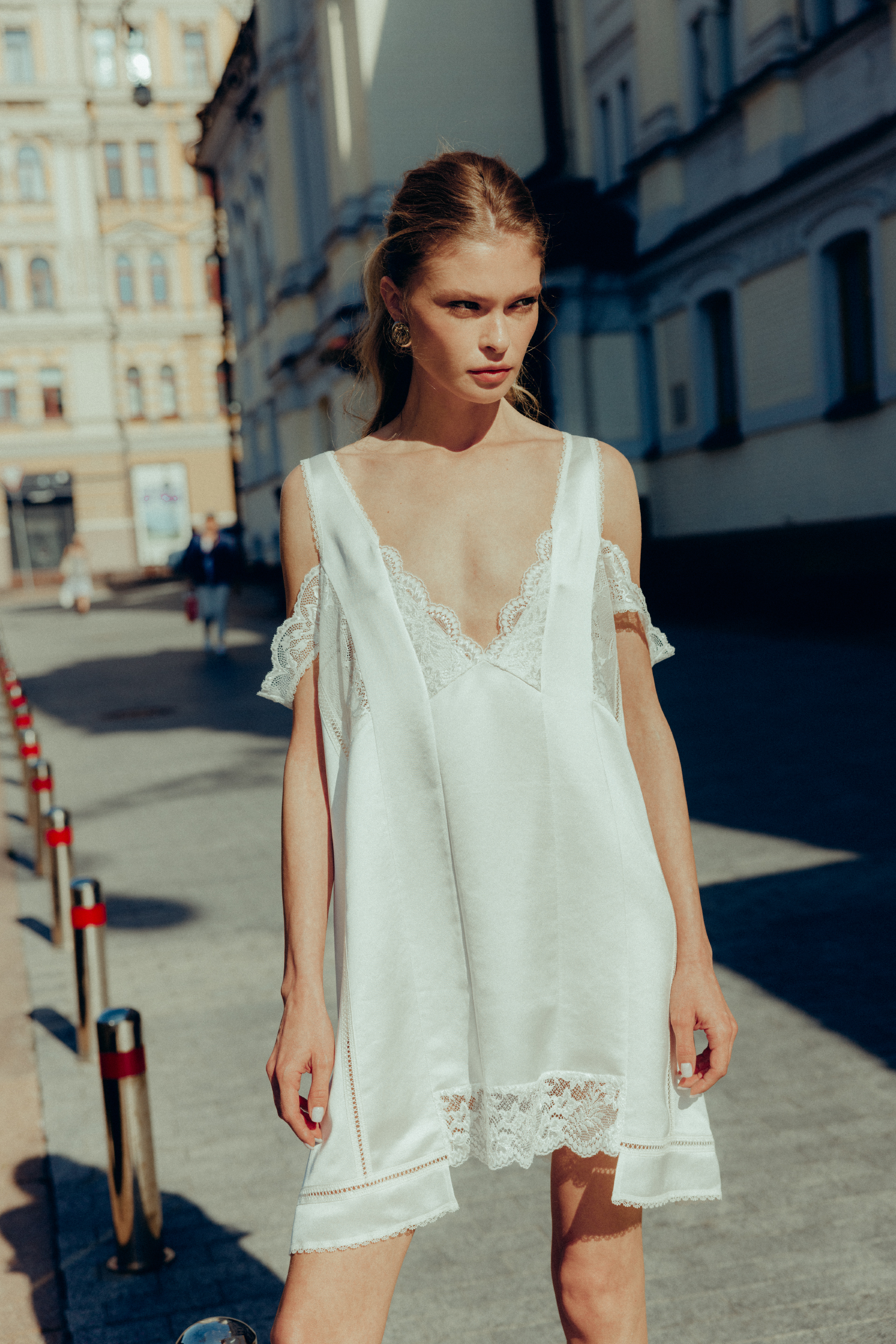 Модель на фото , одягнена у розмір: S, її параметри: Зріст 174 см, груди 80 см, талія 62 см, стегна 87 см.