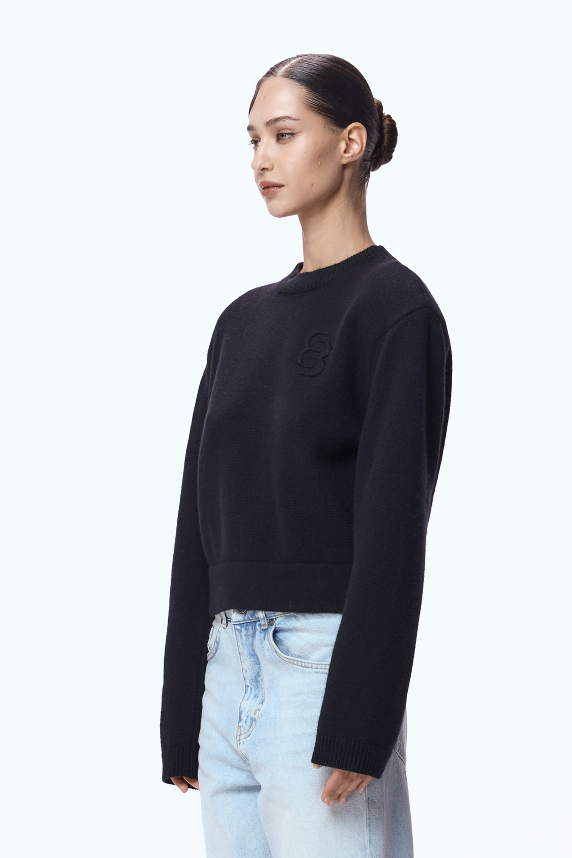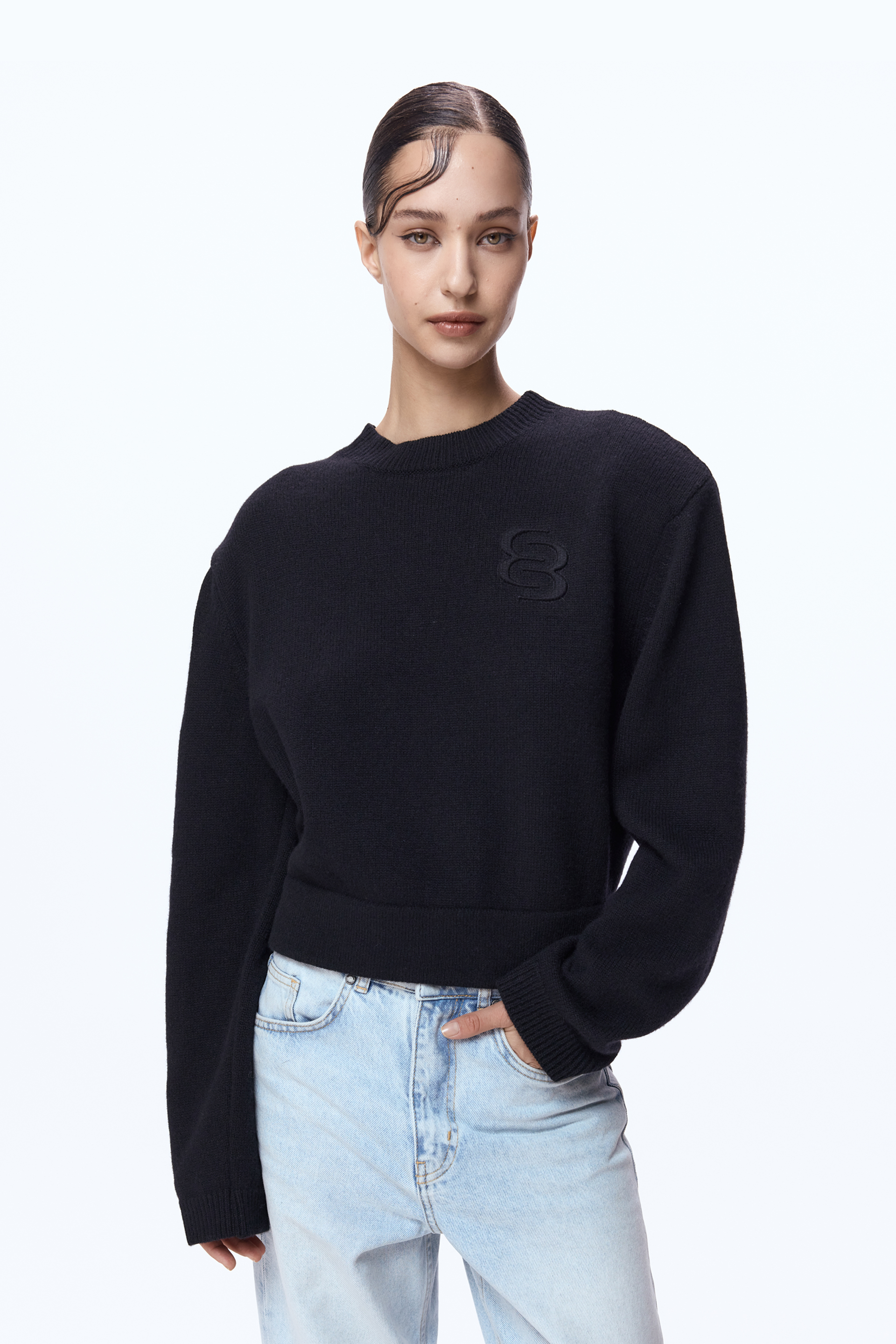 Pumped sweater — светр із вовни та кашеміру, що поєднує тепло, м’якість і вишуканий комфорт. Завдяки знімним підплічникам силует легко трансформується, зберігаючи практичність і зручність у догляді. Приталений вкорочений крій із виразними плечима створює динамічний акцентний образ, який підкреслює сучасний характер моделі.